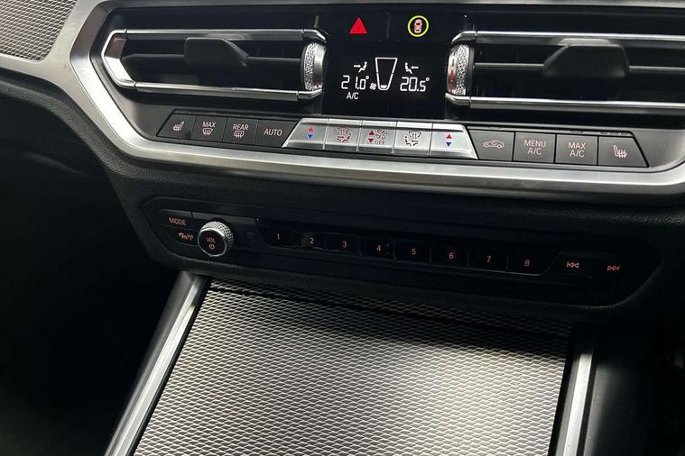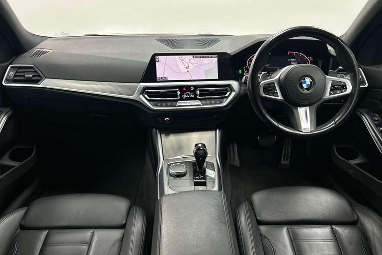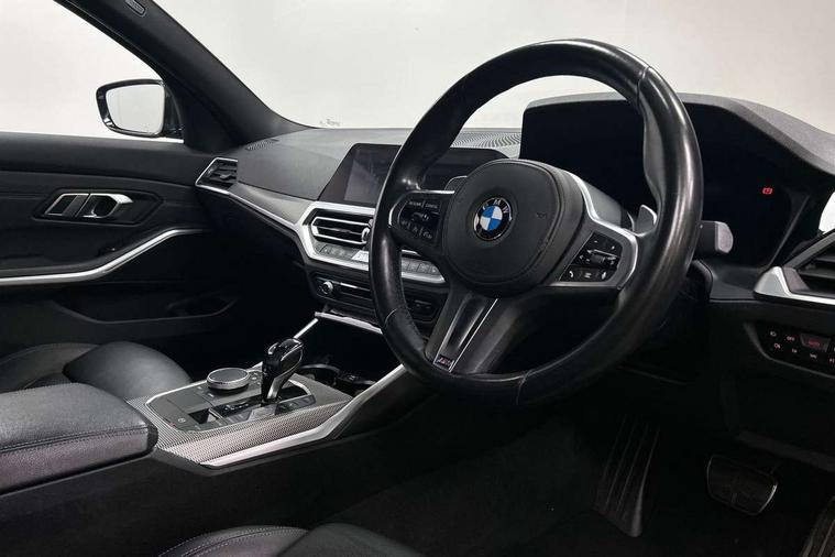 Active guard plus, Attentiveness assist, Auto start-stop, BMW iDrive controller on centre console, BMW Live Cockpit Professional sat nav system including 10.25" high resolution display and Intelligent Voice Assistant, BMW Online services, BMW Teleservices, Brake pad wear indicator in front and rear, Check Control warning system for monitoring of lights and door/luggage compartment open warning, Condition based service, Front/rear park distance control, Instrument cluster with speedometer with mph readout, tachometer, fuel gauge and oil temperature gauge, Oil sensor for level and grade, On board computer - average speed+fuel consumption, service interval, clock/date, odometer/trip meter, outside temperature display and ice warning, Optimum shift indicator, Pesonal profile, Variable sport steering, Battery cut-out switch, Diesel particulate filter, Drive performance control with ECO PRO comfort + sport mode, Electronic differential lock, Incorrect fuelling protection, Larger capacity fuel tank, Sport automatic transmission with steering-wheel mounted gearshift paddles and launch control, DAB tuner, Acoustic glazing, Active airstream chrome frame kidney grille with 8 high gloss black vertical slats, Automatic headlight beam throw control with load dependent regulating reaction, dynamic compensation of braking dive and acceleration squat, Black roof mouldings, Body colour - fuel filler flap, front and rear bumpers, door handles and mirror caps with integrated turn indicator + bottom segment in matt black, Dynamic brake lights, Extended LED headlights, Exterior mirrors - electrically folding with anti-dazzle, Front and rear bumper system with replaceable deformation elements, Front and rear electric windows with open and close fingertip control, anti trap facility and comfort closing, Front black door sill finishers with BMW designation, Green tinted heat protection glazing, Interior rear view electrochromatic mirror with automatic anti dazzle function, LED front fog lights, Left and right split exhaust tailpipes, Lightweight engineering, M aerodynamic body styling, M designation on left and right front side panels, M designation side badges, Matt black exterior B pillar, Model designation on right side of tailgate, Rain sensor with automatic headlight activation, Shark fin antenna, Two part LED tailights in L-shape with components in smoked glass, brake light, LED turn indicator and rear fog light, Visible VIN plate, Welcome lights in interior and door handle area, Windscreen wipers with integrated washing jets, 12V power socket in front storage compartment, 2 front cupholder in centre console with clamping elements and matt black inlay, 3 rear seats with non folding headrests with 3 point seat belts, 3 spoke M leather steering wheel, 4 pieces lashing eyelets in luggage compartment, 40:20:40 split folding rear bench seat, Ambient lighting, Anthracite headlining, Armrest integrated in front and rear door trim + front centre console armrest, Centred top Luggage compartment lights, Four grab handles integrated in roof lining, Front and rear door pockets, Front and rear velour floor mats, Front sport seats, Heated driver and front passenger seats, Height adjustable mechanically and infinitely variable steering column, Illuminated glove compartment with separate small compartment, Interior lighting - front centre over interior mirror with soft light, rear centre and front and rear footwell lighting, Rear centre armrest with 2 cupholders, Rear centre console with storage compartment and ventilation grille, Steering column length adjustment lever, Sunvisors with vanity mirrors and ticket pocket, Three zone automatic air conditioning, Through loading system with 40/20/40 split folding rear seat, Toolkit located in luggage compartment, Vernasca leather upholstery, Connected pack professional - 3 Series Saloon/Touring, M Aerodynamics pack - 3 Series Saloon/Touring, 2 tone horn, ABS, Automatic Stability Control (ASC), BMW emergency call, Brake assist function, Brake drying, Brake energy regeneration, Braking pre-tensioning, Child proof locking system in rear door, Child seat ISOFIX attachment rear outer seats, Cornering brake control (CBC), Crash sensor activating central locking release, hazard warning lights, fuel cut off, interior lighting + activation of safety battery terminal clamp, Driver and front passenger front and side airbags with passenger deactivation and ITS front and rear head airbags, Dynamic brake control, Dynamic Traction Control - DTC, Electromechanical parking brake with automatic drive away release and auto hold function, Hill start assist, Seat belt security check for driver and front passenger, Side impact protection, Three 3 point seat belts on all seats including front belt stopper, pyrotechnic belt tensioners and belt force limiters, Tyre pressure monitoring with three level warning strategy, Variable torque distribution, Ventilated front and rear disc brakes, Warning triangle and first aid kit, Alarm system (Thatcham 1) with remote control and electronic engine immobiliser, Central locking switch for all doors, fuel filler cap and luggage compartment, Remote control with integrated key one button open/close vehicle and windows, sole opening of the luggage compartment lid and panic mode, Selectable automatic lock when driving away, Start/stop button with Comfort Go keyless engine start and auto Start/stop deactivation button, Vehicle key with M specific designation, Reduced rolling resistance tyres,