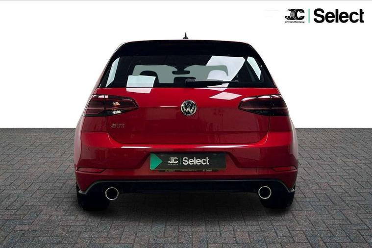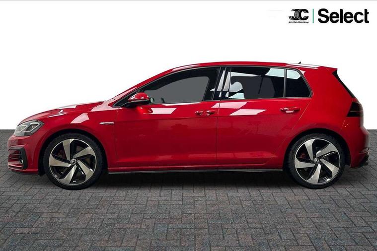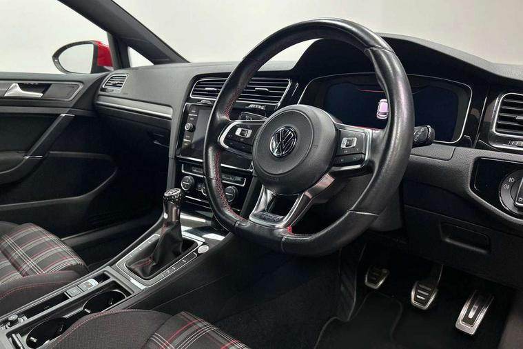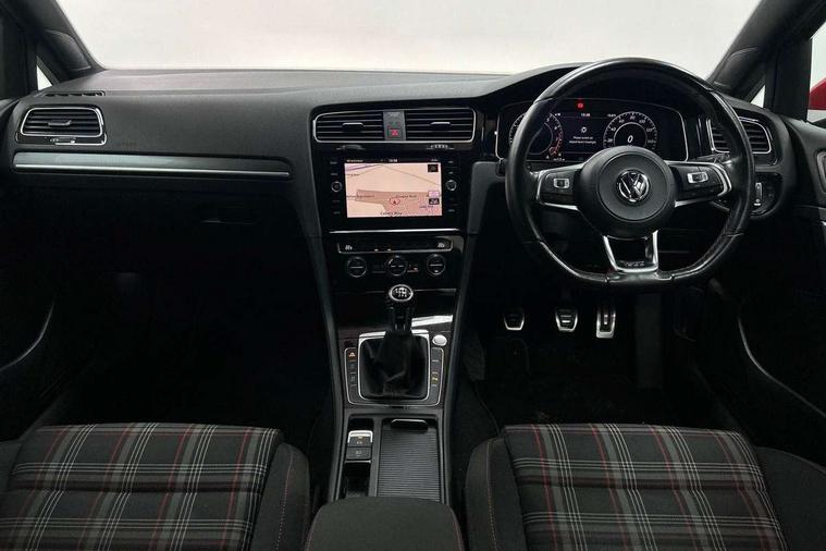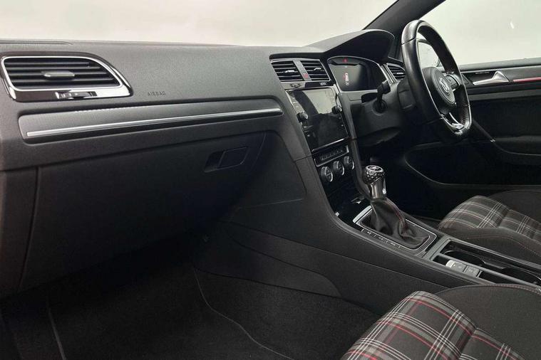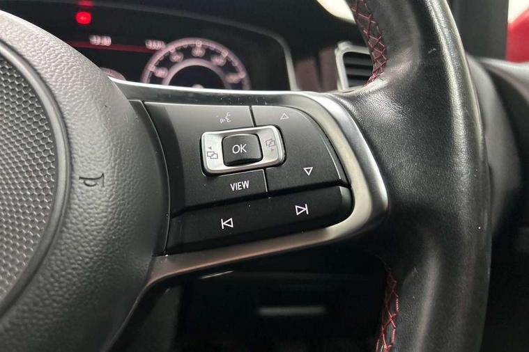'Lights On' Reminder warning buzzer, ACC - Adaptive cruise control with front assist, forward collision warning, distance monitoring, city emergency brake and speed limiter, Bluetooth telephone and audio connection for compatible devices, Brake pad wear indicator warning light, Driver alert system, Driver profile selection, Driving Mode Selection with four preset modes - Eco, normal, sport or individual modes, Instrument cluster in white, Lane assist with dynamic light assist and traffic sign recognition, Multifunction computer with visual gear change recommendation for fuel consumption, Power assisted speed sensitive electro-mechanical steering, Push tank flap, Rear view camera, Speedo, rev counter, electronic odometer, trip, service interval display, exterior temperature and fuel gauge, Stop/start system, Warning buzzer and light for front seatbelts unfastened, Battery regeneration during braking, Limited slip differential, Lowered sports suspension, XDS electronic differential lock, Composition media system, DAB Digital radio receiver, MP3/WMA compatability, Multi device interface (MDI) with USB connection, Premium USB cable in choice of either Apple or Android smartphone compatibility, SD card slot, SMS Functionality, USB and SD card connectivity, Volkswagen media control, 3D-LED tinted rear light clusters with indicator sweep function, Black rear diffuser, Body colour door handles, Body colour door mirrors with integrated indicators, Body colour rear roof spoiler, Body colour sports bumpers, Dusk sensor + automatic driving lights, Electric front windows, Electric rear windows, Electrically adjustable and heated door mirrors, Fully galvanised body, GTI logo in red on front and back, GTI logo lettering on front wings on right and left, Heated rear windscreen, High level 3rd brake light incorporating LED Technology, Honeycomb radiator grille - black, LED daytime running lights, LED front fog lights with static cornering light function, Rear fog lamp, Rear window aerial, Rear window wash/wipe with intermittent wipe, Reflectors in all doors, Shiny black aerofoil downside, Sill extensions, Twin exhaust tailpipe, Windscreen wipers/ intermittent wipe + 4 position delay, 12V socket in luggage compartment, 3 rear headrests, 4 load lashing points in luggage compartment, 60/40 split folding rear seat backrest, Bag hook in luggage compartment x 2, Black headlining, Climate control - 2 zone electronic air conditioning with automatic air recirculation and allergy filter, Cooled glovebox, Dust/pollen filter, Front + rear carpet mats, Front centre armrest with storage compartment and two rear air vents, Front seat back storage pockets, Grab handles front x 2, rear x 2 with integrated coat hooks, Height and reach adjustable steering wheel, Illuminated door sills, Illuminated vanity mirrors, Instrument lighting white adjustable panel illumination, Interior light delay, Isofix preparation for 2 rear child seats, Leather gear knob and handbrake grip, Load through provision with rear centre armrest and cupholders x2, Luggage compartment lighting, Multifunction leather steering wheel with GTI logo and selector lever boot grip with red stitching, Overhead storage box, Stainless steel pedals, Storage box in luggage compartment, Storage compartment in roof console with cover, Storage compartments in front doors, Storage compartments in rear doors, Stowable luggage compartment cover, Sun visors, Variable boot floor, height adjustable and removable, Ambient lighting pack - Golf, Convenience Pack - Golf, Light and Sight pack - Golf, Mirror pack - Golf, 3 rear three point seatbelts, Airbags - Driver's and front passenger's, curtain airbag, Driver's knee, front side impact and passenger's airbag deactivation switch, Anti-lock Braking System (ABS) with Hydraulic Brake Assist (HBA), Automatic post collision braking system, Child locks on rear doors, Driver/Passenger optimised head restraints, Electronic parking brake with auto hold, Electronic stability control (ESC) including Electronic differential lock (EDL) and ASR (Traction control) with deactivation via infotainment system, Front ventilated disc brakes and rear disc brakes, Pre crash preventive occupant protection, Red brake calipers, Three point height adjustable front seatbelts with tensioners, Tyre pressure loss indicator, Alarm with interior protection and deactivation via infotainment system, Electronic engine immobiliser, Keyless entry with start/stop button on centre console, Remote central locking with 2 remote folding keys, Chrome plated air vent surround, Chrome plated electric mirror adjustment light switch surround, Honeycomb black decorative inserts, Piano black centre console, Steel space saver spare wheel,