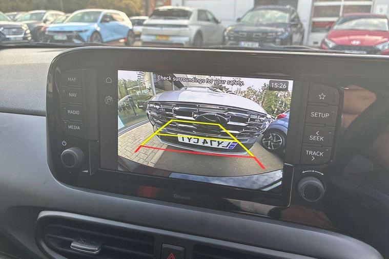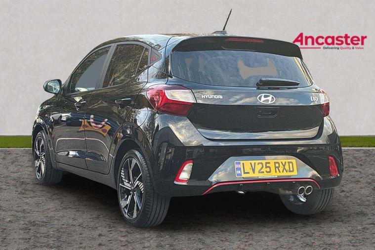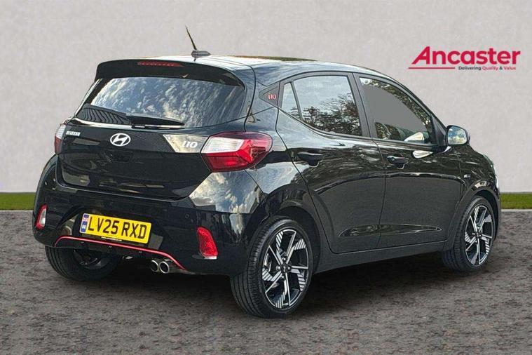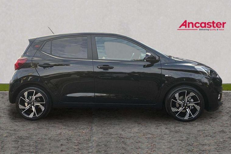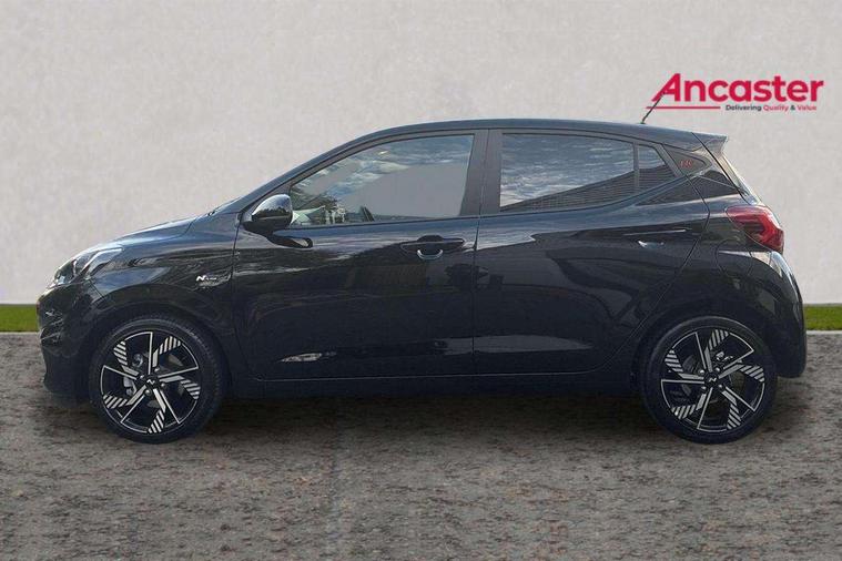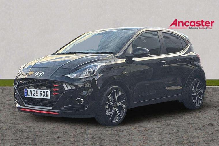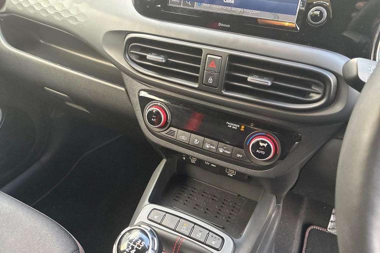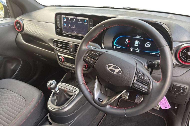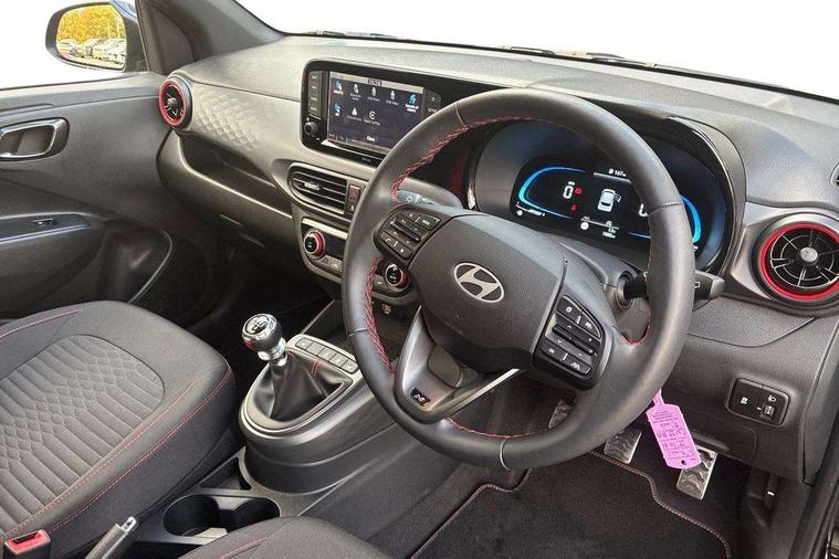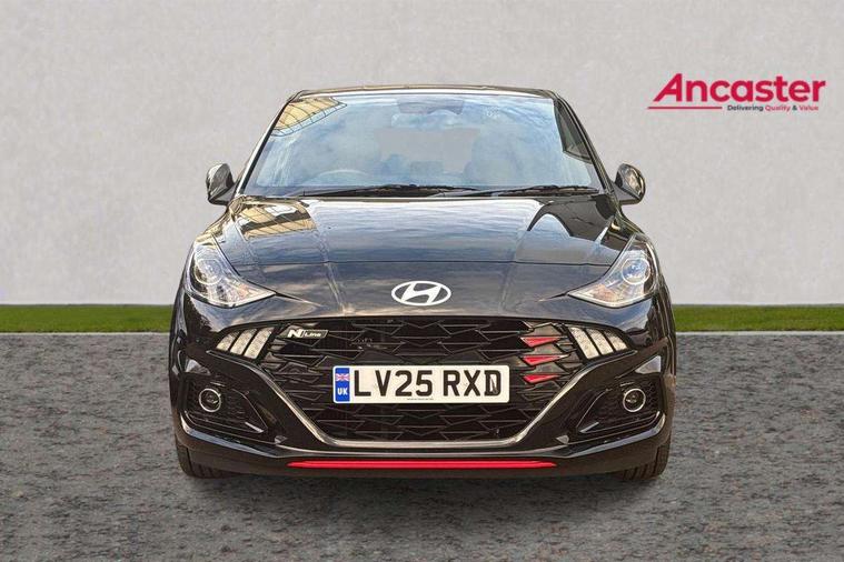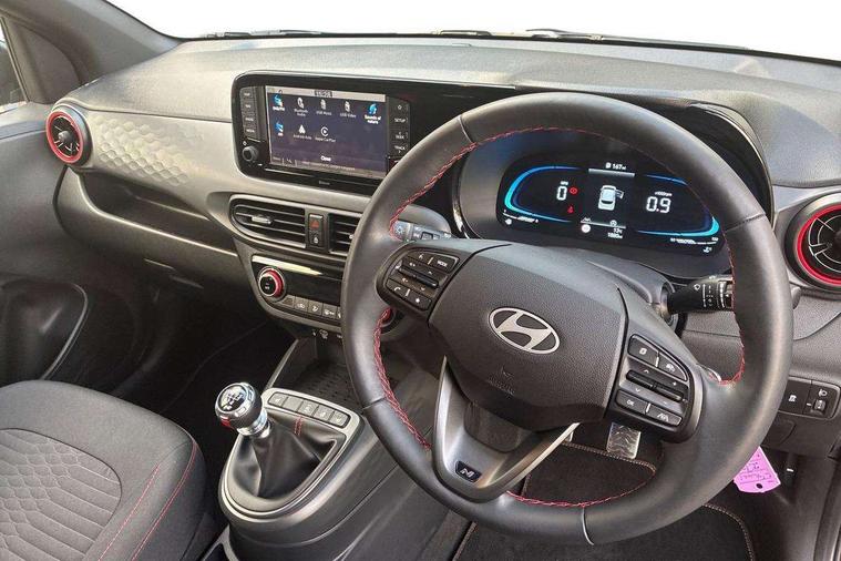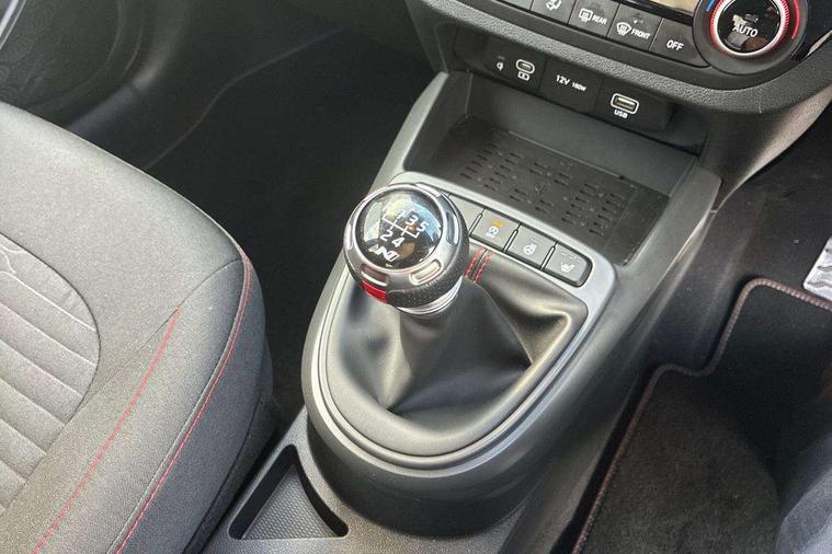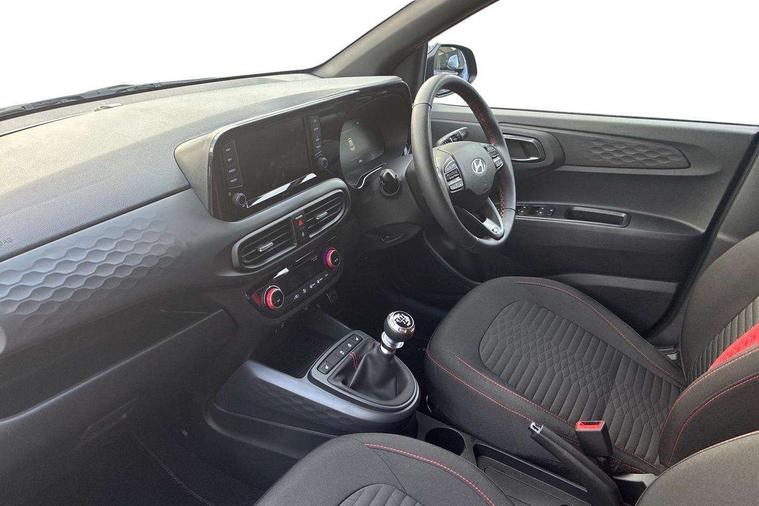 8" Touchscreen satellite navigation including mapcare and LIVE services, Apple car play/Android Auto, Bluelink mobile remote connectivity, Bluetooth connectivity with voice recognition, Cruise control, Driver attention alert system, eCall emergency call system, Forward Collision-Avoidance Assist (FCA) - Pedestrian/Cyclist, Full-width 4.2" LCD instrument cluster, Intelligent speed limit assist, Lane departure warning system with lane keep assist - LKAS, Lane follow assist, PAS, Rear parking sensors, Rear view camera with guidelines, Roadside assistance, Tailgate, Trip computer, Wireless charging pad, 2 front/2 rear speakers, Front and rear USB-C ports, Front USB connection, Leading vehicle alert (LVA), Steering wheel audio, phone and cruise controls, 1 speed non intermittent rear windscreen wiper, Black finish on B pillars, Body colour door handles, Body coloured bumpers, Electric folding door mirrors, Electric front windows, Electric rear windows, Electrically adjustable and heated door mirrors, Flat metal emblem, Front fog lights, Front intermittent wipers, Glossy black door mirrors, Halogen bi-function headlights, Headlights inner with Blade design, Heated rear window, High beam assist, Indicator light on door mirrors, LED daytime running lights, N Line Badging, N Line design front grille, Privacy glass for rear window, Rear LED combination lamps in H pattern, Rear roof spoiler with integrated LED brake light, Rear side wing doors, 12v power outlet - front, 3 seat bench in 2nd row, 60/40 split folding flat to floor rear seats, Air conditioning climate control, Auto light control, Bottle holders in front/rear doors + front centre console, Cabin and luggage compartment interior lighting, Cloth upholstery, Dashboard finisher in Dark Grey Metal with Flame Red air surrounds, Driver + passenger vanity mirrors, Driver's seat height adjustment, Driver/passenger sunvisors with ticket holders, Floor mats, Front door pockets, Front Head Restraints - Vertical and Horizontal Adjustment, Front LED blue mood lighting, Glove compartment, Heated front seats, Heated steering wheel, Height adjustable steering column, Isofix child seat preparation, Leather wrapped steering wheel and gear knob, N Line branded leather gear stick, N Line branded leather steering wheel, Rear door pockets, Single front passenger seat, Vertical adjustment rear head restraints, 13" Rear brake discs, 3x3 point rear seatbelts, Airbags - front, front side and curtain airbags, Anti-lock brake system (ABS), Autonomous emergency braking (AEB) with forward collision warning system, Brake assist function, Childproof rear door locks, Electronic stability control, Front and rear seatbelt reminder, Front seatbelt pretensioners, Hill start assist control (HAC), Passenger airbag deactivate switch, Traction control, Tyre pressure monitoring system, Immobiliser, Perimeter alarm, Rear occupant alert, Remote central locking, Second remote key, Smart key with keyless entry and engine start/stop button, Speed sensitive auto door locking, 16" alloy wheels, N logo centre caps, Temporary mobility kit (TMK),