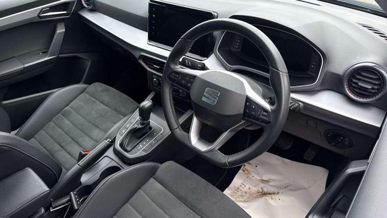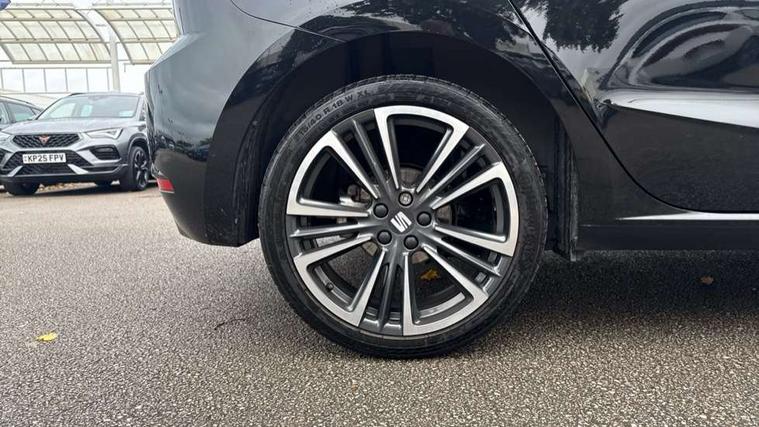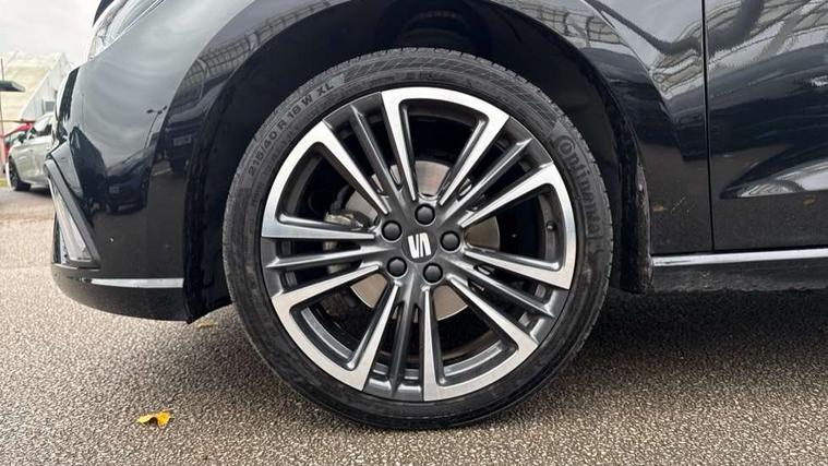 'Lights On' Reminder warning buzzer, 10" Digital cockpit, 9.2" touchscreen navigation system with type C USB socket, Voice control and DAB/AM/FM radio, Auto start and stop system, Bluetooth audio streaming with handsfree system, Digital clock, E-call, Front and rear parking sensors with rear view camera, Full link smartphone integration with mirror link, wireless apple carplay, Google android auto + USB Type C cable for apple and android devices, Lane assist, Low fuel warning light, Outside temperature gauge, Power Steering, Seat connect plus with safety, service, remote and online, SEAT drive profiles and ECO function, SEAT logo boot release, Speed limiter, Traffic sign recognition, Trip computer, Comfort suspension, Auxiliary input socket, Radio/MP3 player, SD card slot, Steering wheel mounted controls, Anti theft roof antenna, Atom grey door mirrors, Auto dimming rear view mirror, Automatic rain sensing wipers, Body colour bumpers, Body colour door handles, Chrome window surround and upper grille surround, Dark tinted rear windows, Electric adjustable/heated/folding door mirrors, Electric front windows, Electric headlight adjustment, Electric rear windows, Front/rear fog lights, FULL LED automatic headlights with dynamic headlight range control, coming and leaving home, LED daytime running lights, LED tail lights, Rear side wing doors, Rear wiper, Third brake light, 3 seat bench in 2nd row, 60/40 split folding rear seat, Ambient interior lighting, Chrome detailing and black headlining, Comfort seats, Dual zone climate control with combination filter, Front centre armrest, Front courtesy lights, Front cupholders x 2, Front reading lights, Gear shift indicator, Glovebox, Height adjustable front and rear headrests (five), Height adjustable front seats, Height/reach adjust steering wheel, Illuminated air vent surrounds, Illuminated boot, Instrument lighting with brightness control, Isofix, Leather multifunction flat bottomed sports steering wheel, Microsuede cloth upholstery, Passenger sunvisor, Single front passenger seat, Storage pockets on back of front seats, Sunvisors with mirror and driver side card holder, Safety and driving pack (M) - Ibiza, Safety and driving pack (S) - Ibiza, 3 point seatbelts on all 3 rear seats, ABS, Active front headrests, Child locks on rear doors, Electronic stability control, Energy recovery system, Front driver and passenger side airbags with curtain airbag and front passenger airbag deactivation, Hill hold control, Multi-Collision braking, Seat belt reminder for front and rear seats, Tiredness recognition system, Tyre pressure monitoring system, Electronic engine immobiliser, KESSY Keyless entry and go, Locking wheel bolts, Perimeter alarm and interior monitoring inc.backup horn, tow away protection and electronic engine immobiliser, Remote central locking + deadlocks, 18" Dynamic machined alloy wheels in Nuclear grey,