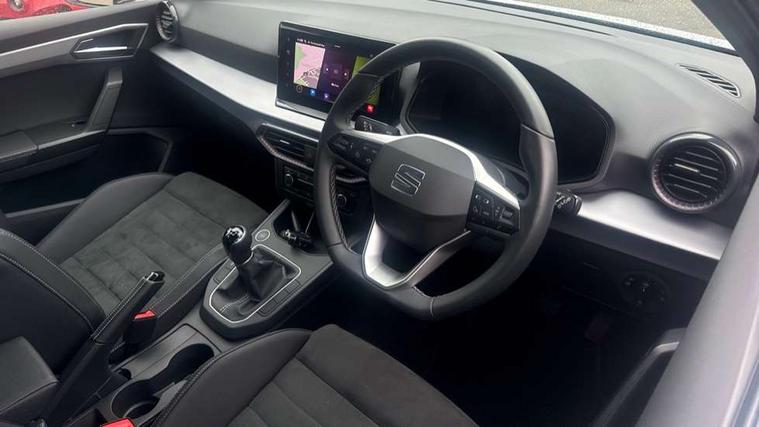 'Lights On' Reminder warning buzzer, 8" Digital cockpit, 9.2" touchscreen navigation system with type C USB socket, Voice control and DAB/AM/FM radio, Auto start and stop system, Bluetooth audio streaming with handsfree system, Digital clock, E-call, Full link smartphone integration with mirror link, wireless apple carplay, Google android auto + USB Type C cable for apple and android devices, Lane assist, Low fuel warning light, Outside temperature gauge, Power Steering, Rear parking sensor, Seat connect plus with safety, service, remote and online, SEAT logo boot release, Speed limiter, Traffic sign recognition, Trip computer, Comfort suspension, Auxiliary input socket, Radio/MP3 player, SD card slot, Steering wheel mounted controls, Anti theft roof antenna, Atom grey door mirrors, Auto dimming rear view mirror, Automatic rain sensing wipers, Body colour bumpers, Body colour door handles, Chrome window surround and upper grille surround, Dark tinted rear windows, Electric adjustable/heated/folding door mirrors, Electric front windows, Electric headlight adjustment, Electric rear windows, Front/rear fog lights, FULL LED automatic headlights with dynamic headlight range control, coming and leaving home, LED daytime running lights, LED tail lights, Rear side wing doors, Rear wiper, Third brake light, 3 seat bench in 2nd row, 60/40 split folding rear seat, Ambient interior lighting, Chrome detailing and black headlining, Comfort seats, Dual zone climate control with combination filter, Front centre armrest, Front courtesy lights, Front cupholders x 2, Front reading lights, Gear shift indicator, Glovebox, Height adjustable front and rear headrests (five), Height adjustable front seats, Height/reach adjust steering wheel, Illuminated air vent surrounds, Illuminated boot, Instrument lighting with brightness control, Isofix, Leather multifunction flat bottomed sports steering wheel, Microsuede cloth upholstery, Passenger sunvisor, Single front passenger seat, Storage pockets on back of front seats, Sunvisors with mirror and driver side card holder, Safety and driving pack (S) - Ibiza, 3 point seatbelts on all 3 rear seats, ABS, Active front headrests, Child locks on rear doors, Electronic stability control, Energy recovery system, Front driver and passenger side airbags with curtain airbag and front passenger airbag deactivation, Hill hold control, Multi-Collision braking, Seat belt reminder for front and rear seats, Tiredness recognition system, Tyre pressure monitoring system, Electronic engine immobiliser, KESSY Keyless entry and go, Locking wheel bolts, Perimeter alarm and interior monitoring inc.backup horn, tow away protection and electronic engine immobiliser, Remote central locking + deadlocks, 17" Dynamic machined alloy wheels in Nuclear grey,