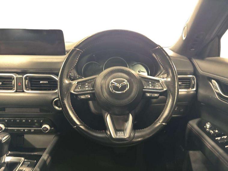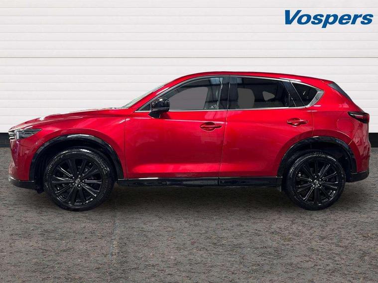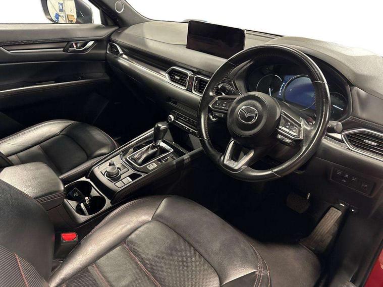 10.25" display with Mazda Connect infotainment, 7" colour TFT display, Apple car play/Android Auto, Blind spot monitoring with rear cross traffic alert, Bluetooth connectivity with voice control, Collision prevention assist, Connected services, Cruising Traffic Support, Drive mode selector, Electric power steering, Emergency stop signalling system, Engine start/stop button, Forward collision warning, Front and rear parking sensors, Integrated navigation system, Intelligent speed assist, Lane departure warning system, Lane keep assist, Qi wireless phone charging, Radar cruise control with Stop and Go, Reversing camera, Service indicator, Traffic sign recognition (TSR), Trip computer, Windscreen projected colour active driving display (HUD) with memory, i-stop, 2 USB sockets in rear, 2x USB sockets in front, AM/FM radio, Bluetooth audio streaming, Bose premium sound system with 10 speakers, DAB Digital radio, Multimedia Commander including separate volume dial, Steering wheel mounted audio controls, Adaptive front lighting system, Auto dimming rear view mirror, Automatic headlights, Black honeycomb door trim decoration panel, Black honeycomb interior decoration panel, Body colour roof spoiler, Coming/leaving home lighting function, Door mirror integrated indicators, Dual large chrome tailpipes, Dusk sensitive headlamps, Electric front/rear windows with one touch auto up/down, Front grille in gloss black finish, Gloss black B and C pillars garnish, Gloss black door mirrors, Gloss black front and rear lower bumper mouldings, Gloss black signature wing, Gloss black tire arch and side mouldings, High beam assist, Intermittent rear wash/wipe, LED auto levelling, LED daytime running lights, LED front fog lights, LED Headlights, LED third brake light, Power folding and heated door mirrors, Power tilt/slide sunroof, Privacy glass (rear side windows only), Rain sensing front wipers, Rear side wing doors, Red front grille accent, Red stitching and accents on door trim, knee pad, console lid, steering wheel, shift boots, Scuff plates, Shark fin antenna, Signature LED rear combination lights, Windscreen wiper de-icer, 12v electrical power outlet, 3 seat bench in 2nd row, 3 stage heated front seats, 40:20:40 Karakuri fold-flat seat system, 6 way electric adjustable passenger seat, 8 way electric driver seat with lumbar support + memory, Black roof lining, Cargo room flat floor board with waterproof undertray, Driver seat power slide, recline and height adjustment, Driver, Front passenger and two rear grab handles with coat hooks, Driver/passenger front seatback pockets, Driver/passenger sunvisors + illuminated vanity mirrors (drivers with ticket holder), Dual zone climate control, Folding centre armrest with 2 cup holders, Front and rear door pockets, Front centre storage with two cupholders, Front passenger seat power slide, recline and height adjustment, Heated steering wheel, Humidity sensor, Illuminated glovebox, Interior dome light with integral spotlight, ISOFIX child seat anchorage points attached on outer rear seats, Karakuri tonneau cover, Leather upholstery, Leather wrapped steering wheel and gear knob, Luggage compartment LED lighting, Luggage compartment power outlet, Paddle shifts, Rear air vents, Rear headrests, Rear seat recline, Roof mounted sunglasses holder, Single front passenger seat, Three height adjustable head restraints, Tilt/height adjustable steering wheel, White interior LED illumination lighting, 3 point front seatbelts with pre-tensioners, 3 rear 3 point seatbelts, ABS, Advanced Smart City Brake Support - SCBS, Child locks on rear doors, Driver and front passenger side airbags, DSTC-Dynamic Stability and Traction Control, Dual front airbags, Electronic brake force distribution, Electronic parking brake with auto hold, ESP, Front and rear curtain airbags, Front passenger airbag deactivation, G-Vectoring control, Hill hold assist, Seatbelt reminder front and rear, Single stage passenger airbags, Smart brake support with forward obstruction warning, Tyre pressure monitoring system, Automatic door locking when moving off, Deadlock, Immobiliser, Power door locks, Remote central locking, Smart keyless entry, Thatcham Cat.1 alarm, 19" Black alloy wheels, Tyre repair kit,