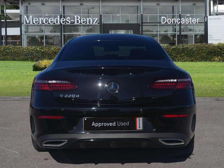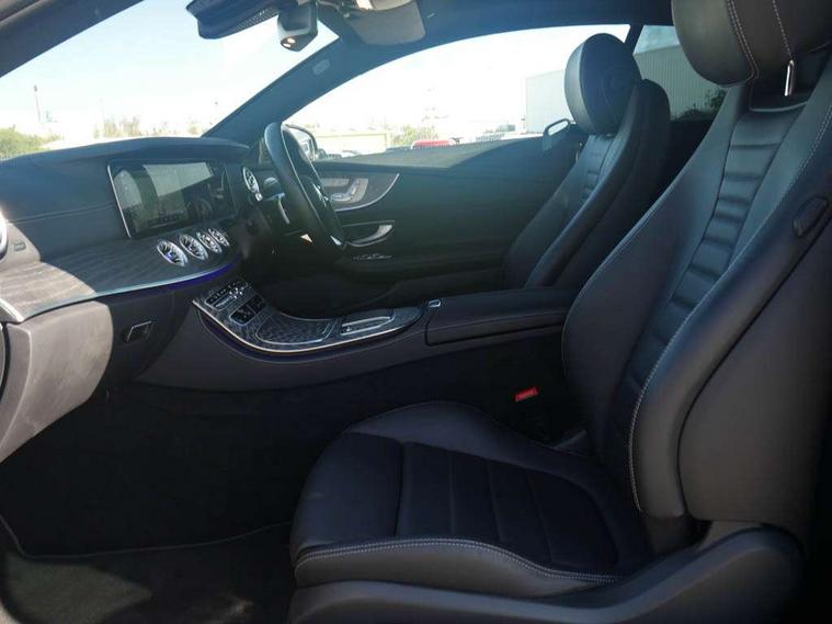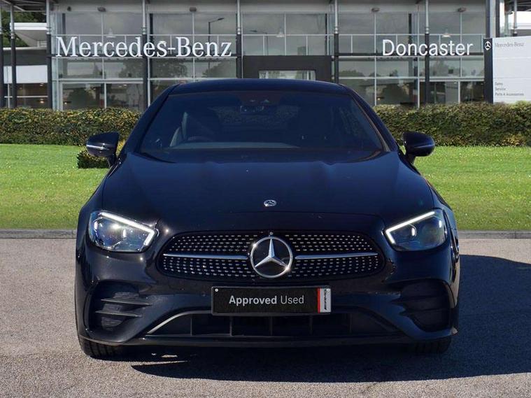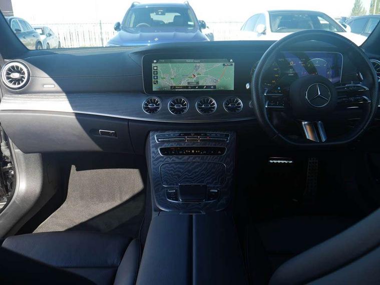 360 degree parking camera, Active parking assist including front and rear parking sensors, Analogue clock, Attention assist, Brake wear warning display, Cockpit display 12.3" widescreen digital instrument cluster, Collision prevention assist plus, Direct steer speed sensitive steering, DYNAMIC SELECT with a choice of driving modes (ECO, Comfort, Sport, Sport+ and Individual), E-call, ECO start/stop function, High resolution 12.3" multimedia colour display, MBUX voice control activated by keywords "Hey Mercedes", Mercedes connect me, Outside temperature display, Pre-installation for Vehicle Monitoring, Pre-installation for Vehicle Setup, Remote boot release, Service indicator (ASSYST), Status display for rear seat belts in instrument cluster, Touchpad without controller, Traffic sign assist, Trip computer in multifunction display showing current fuel consumption, Wireless charging, 25 litre AdBlue tank, 66 litre fuel tank, 9G TRONIC 9 speed automatic transmission, Agility control sports suspension with selective damping system, Diesel particulate filter, Incorrect fuelling protection, 2 USB ports in centre console, 2 USB ports in the rear, Burmester surround sound system with 13 speakers and a 9 channel amplifier with total output of 590 watts, MBUX multimedia system with DAB digital radio and touchpad including satellite navigation, Smartphone integration via Android Auto/Apple CarPlay, Media Interface, USB and Bluetooth interface and touchpad with control wheel, Adaptive brake lights, Adaptive high beam assist, AMG bodystyling front and rear aprons in polished aluminium, Body colour door handles, Body coloured bumpers, Electric windows with one touch opening/closing and obstruction sensors, Exterior mirrors heated and electronically adjustable, High gloss black exterior mirror housing, High gloss black front apron, High gloss black rear bumper with chrome trim, Illuminated front door sill panels with Mercedes-Benz lettering, LED 3rd brake light, LED daytime running lights, LED high performance headlamps, Magic Vision Control heated windscreen wiper system, Panoramic electric glass sunroof, Pre-installation for roof rail systems, Privacy glass Includes rear side windows and rear windscreen, Radiator grille with integral star and 2 louvres in matt iridium silver with chrome trim, Radio aerial integrated into rear window, Rain sensing windscreen wipers, Rear boot, Rear LED lights, Top surround of side windows in polished aluminium, Visible twin pipe exhaust system integrated into bumper, Waistline strips in high gloss black, 2 seat bench in 2nd row, 3-spoke flat bottom multifunction AMG steering wheel with Touch Control buttons, trimmed in black nappa leather, 40:20:40 split folding rear seats, Artico man-made leather upper dashboard and beltlines with contrast stitching, Automatic child seat recognition sensor, Belt feeder driver and front passenger seat belt automatically positioned within easier reach, Black door pins, Black roof lining, Central stowage compartment with 12 V socket in centre console, Central stowage compartment with USB socket for use with Android Auto and Apple CarPlay, Centre armrest and door handle illumination, Centre console in grey open-pore ash wood, Floor mats with AMG lettering, Front and rear door pockets, Front centre armrest with stowage compartment, Front footwell lights, Glasses compartment in overhead control panel, Glove compartment - lockable, air conditioned and illuminated, Head restraints for driver and front passenger (four-way adjustability) and in rear (two-way), Heated front seats with partial electric adjustment and electro-pneumatic four-way lumbar support, Interior lighting - 64 colour Ambient lighting, Interior rear light/integral reading lights, Isofix rear child seat fastenings, Multi contour front sports seats, Seat occupancy sensor for front passenger seat, Single front passenger seat, Sports pedals in brushed stainless steel with black rubber studs, Steering column electrically adjustable for height and reach, Steering wheel gearshift paddles, Sunvisors with illuminated vanity mirrors, THERMOTRONIC automatic climate control system with 3 climate zones, Memory pack - E Class, Mirror pack - E Class, Night package - E Class, Stowage pack - E Class, 2 x 3-point rear seatbelts, Active bonnet pedestrian safety measure which detects an impact and raises bonnet, Adaptive brake system with HOLD function and brake drying in the wet, Adaptive driver and front passenger airbags, Airbags - sidebag for driver and front passenger with combined thorax/pelvis bag, Anti-lock braking system (ABS), Drivers knee airbag, Electric parking brake, Electronic Stability Programme, Front and rear window airbags, Head airbags, Hill hold function, Perforated front brake discs with "Mercedes-Benz" lettering, Seatbelt warning, Tyre pressure monitoring system, Warning triangle and first aid kit, Alarm system/interior protection/immobiliser, Central locking with interior switch, automatic locking and crash sensor with emergency opening function, Chrome surround electric key, Keyless Go entry and starting function, Open-pore grey ash wood trim, 20" AMG multi spoke design alloy wheels painted in high gloss black with high sheen finish, Summer tyres, TIREFIT with tyre inflation compressor,