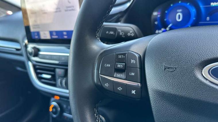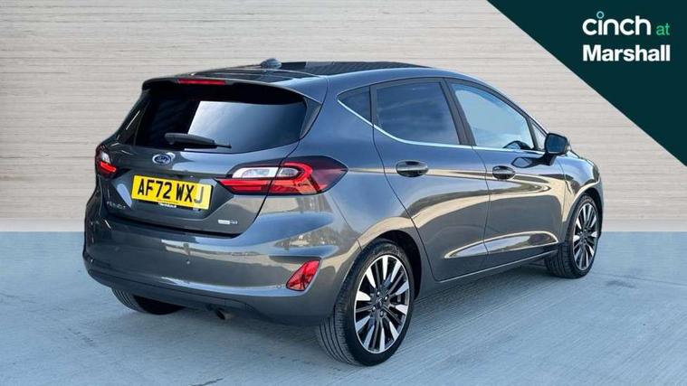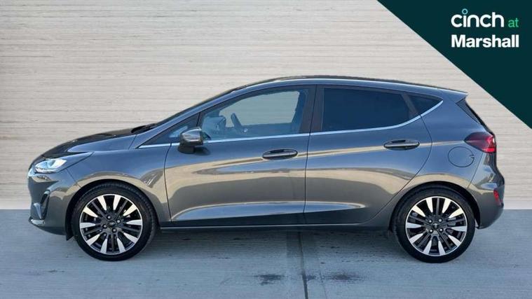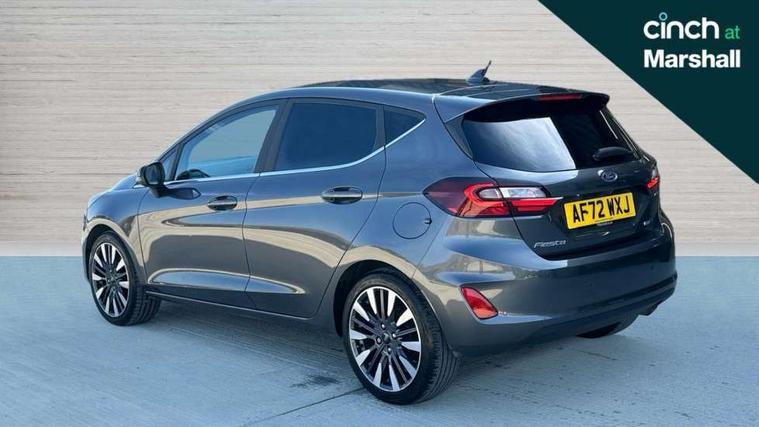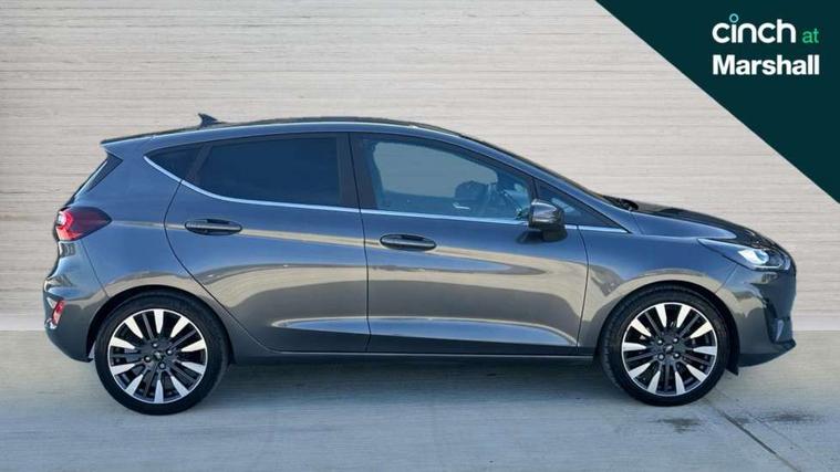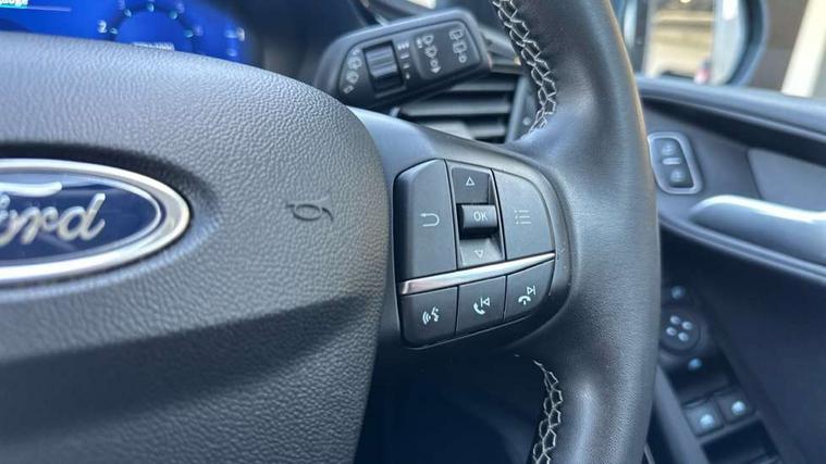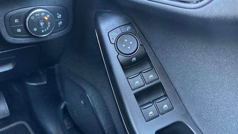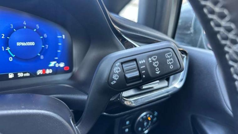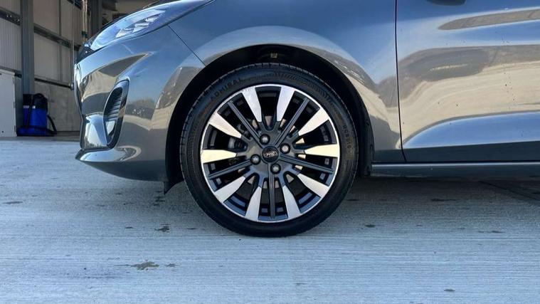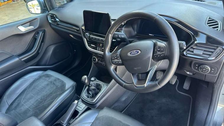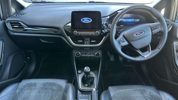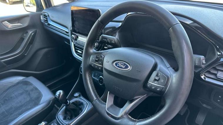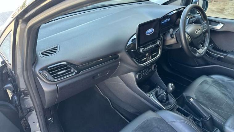 4.2" TFT instrument cluster screen, Bluetooth system, Electric power steering, Ford easy fuel, Rear parking distance sensors, Selectable drive modes (Normal, Sport, Track), Traffic sign recognition, Trip computer, 2 USB ports, Auxiliary input socket, B&O Premium audio system with 8" touchscreen, 10 speakers, 360 degree sound system, Ford SYNC 3 navigation system and Ford pass connect, DAB Digital radio, Steering wheel mounted controls, Auto high beam, Body colour bumpers, Body colour door handles, Body colour rear spoiler, Body coloured electrically operated and heated door mirrors with side indicators, Chrome beltline trim, Chrome front grille, Chrome lower window surround, Cornering front fog lights, Electric front windows/one touch facility, Electric rear windows, LED Night signature to rear lights, Power foldable door mirrors with puddle lights, Quickclear heated windscreen, Rain sensing wipers and auto dimming rear view mirror, Rear privacy glass, Rear wiper, 3 spoke leather trimmed steering wheel with audio control, 60/40 split folding rear seat, Adjustable head restraints, Boot carpet, Centre console with opening armrest, 2x cupholders, 12v and USB, Chrome inner door handles, Drivers and Passenger lumbar support, EATC - Electronic Auto Temperature control, Footwell illumination, Front floor mats in velour, Front map reading lights, Front seat and rear pockets, Height adjustable passenger seat, Illuminated glovebox, Leather gaiter, LED ambient lighting, Load area light, Luxury woven headliner, Manual 4-way driver seat adjust, Overhead console with sunglasses holder, Pollen filter, Rake/reach adjustable steering wheel, Sensico partial premium upholstery, Sensico wrapped steering wheel, NCAP Pack - Fiesta, 3 point seatbelts on all rear seats, ABS+EBA, Curtain airbags, Driver and passenger airbags, Drivers knee airbag, Electronic stability control with hill start assist, Front passenger airbag deactivation, Front side airbags, Seatbelt warning, Two tone horn, Tyre pressure monitoring system, Ford keyfree system with Keyless entry and keyless start, MyKey system, Remote central locking & engine immobiliser, Thatcham Cat.1 alarm, 17" 8 spoke alloy wheels,