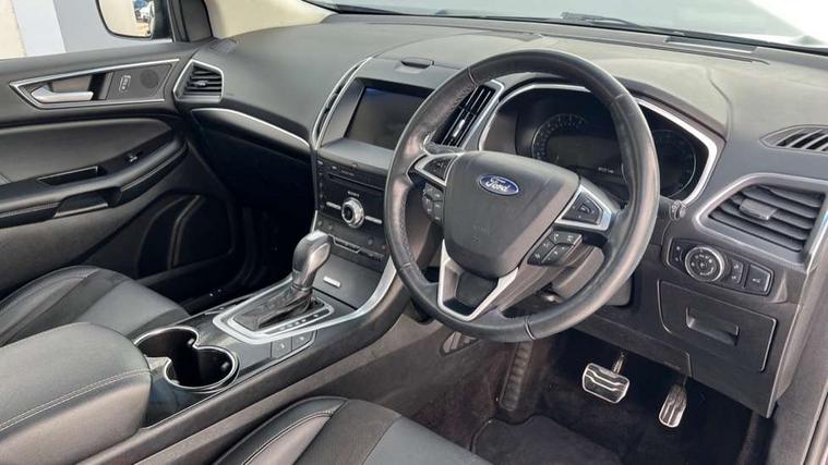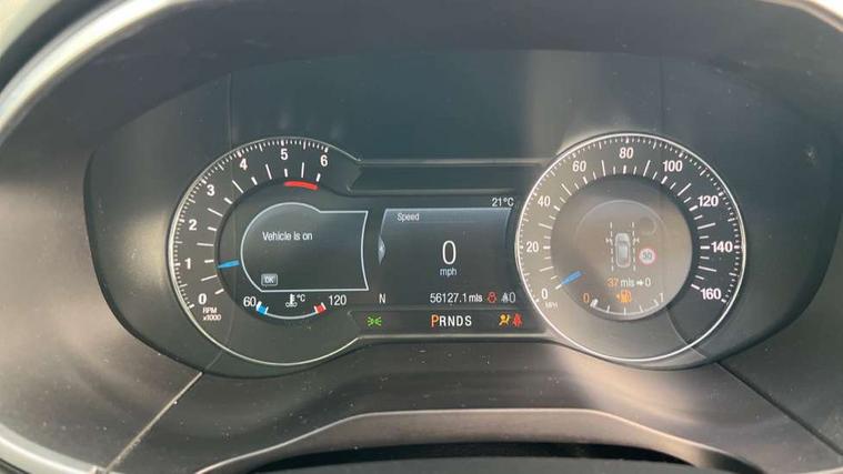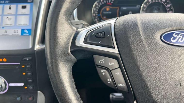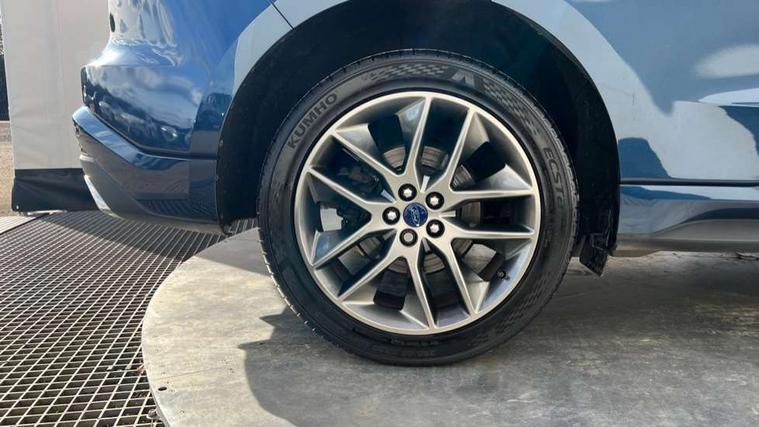 Adaptive steering, Bluetooth connectivity with voice control, Easy fuel capless refuelling system, Ford SYNC 3 with 8" colour touch screen, Front and rear parking sensors, Intelligent speed assist, Lane keep assist, Rear view camera, Service indicator, Sony DAB Audio and navigation system with 12 speakers, SYNC Emergency Assistance, TFT cluster screen, Traffic sign recognition, Trip computer, Sports suspension, Auxiliary input socket, USB/iPod connection, Acoustic laminated side glass, Auto dimming rear view mirror, Auto high beam, Automatic front windscreen wipers, Automatic headlights, Automatic low beam headlights, Body colour lower mouldings, Body styling kit, Chrome grille trim, Dark tinted rear privacy glass, Electric folding door mirrors with puddle lamps, Electric front windows, Front fog lights, LED rear lights, Power windows with global open/close, Quickclear heated windscreen, Rain sensor windscreen wipers, Rear spoiler, 220v power socket, Air conditioning + Dual Electronic Automatic Temperature Control, Alloy pedals, Ambient lighting, Centre console with armrest/storage box + cupholder, Cloth upholstery, Folding rear seats, Front and rear velour floor mats, Heated front sports seats, Height/reach adjust steering wheel, Illuminated scuff plates, Isofix child seat attachment, Leather steering wheel and gear knob, LED reading lights, Lumbar support, Active city stop, Curtain Airbag, Driver airbag, Electronic parking brake, ESP, Front passenger airbag, Rear airbags, Side airbags, Traction control, Tyre pressure monitoring system, Keyless entry system with handsfree boot opening + electric power tailgate, Keyless Start, Thatcham Cat.1 alarm, 20" Platinum Grey Alloy wheels, Mini steel spare wheel,