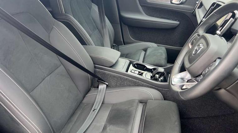 12.3" Progressive Driver Display, 9" centre console portrait touch screen, Adjustable steering wheel force, Apple carplay (wired), Bluetooth handsfree system, Cruise control, Driver alert control, E-call, Front park assist, Google automotive services - Enabled entertainment apps, navigation with google maps, voice recognition with google assistant, Hands free power tailgate, Intelligent speed assistance, Lane keeping aid, Oncoming Lane Mitigation, Rear park assist, Rear park assist camera, Speed sensitive steering, Volvo cars services with app - Driving journal, emergency and breakdown call, engine remote start, remote door locking/unlocking and vehicle dashboard, Wireless/Inductive Mobile Phone Charging, Automatic transmission with start/stop and manual change functions, Dynamic chassis, DAB Digital radio, Steering wheel mounted remote controls, Adaptive brake lights with high level LED brake lights, Auto dimming interior mirror, Automatic headlamp levelling, Automatic LED Headlights + Active high beam incorporating daytime running lights, Front aluminium tread plates, Front and rear electric windows, High gloss black front and rear skid plate, High gloss black front bumper deco, High gloss black mesh front grille with high gloss black surround, High gloss black window trim, Home safe and approach lighting, Integrated roof rails in high gloss black, LED front fog lights, Puddle lights, Rain sensor with automatic windscreen wiper activation, Rear side wing doors, Rear wiper, Roof antenna, Roof spoiler, Visible VIN plate, 12V socket in front tunnel console and luggage compartment, 2-Zone electronic climate control with CleanZone air quality system and pollen filter, 3 seat bench in 2nd row, 3 Spoke tailored steering wheel with chrome trim, 60/40 versatile split folding rear seat, Centre console cupholders and storage, Flexible load floor and grocery bag holder, Floor mats, Front cabin courtesy lights, Front door pocket, front cupholder, ambient front door, rear reading, rear courtesy, instrument panel and tailgate lighting, Front footwell illumination, Front headrests, Front reading lights, Front seat cushion extensions, Front side step illumination (under door), Glovebox bag hook, Heated front seats, Height adjustable passenger seat, Height/reach adjustable steering column, High gloss centre tunnel deco, Illuminated glovebox, Illuminated luggage compartment, Illuminated vanity mirrors + ticket holder, Integrated waste bin, Isofix attachments on outer rear seats, Load cover, Load protection net, Multi directional lumbar support for driver and passenger seat, Power driver seat with memory + exterior mirrors memory, Rear armrest with cupholders, Rear headrests, Single front passenger seat, Underfloor cargo storage, Climate pack without heated front seats - XC40, 3x3 point rear seatbelts, City safety with steering support with Pedestrian + cyclist + front collision warning with full auto brake and rear auto brake, Driver and passenger airbags, Drivers knee airbag, Electronic parking brake with auto hold, First aid kit, Front and outer rear seatbelt reminder and pretensioners, Front seats SIPS airbags, Hill descent control, Hill start assist, Inflatable curtain, Passenger airbag cut-off device, Power child locks on rear doors, Road sign information display, Run off Road Protection, SIPS (Side Impact Protection System), Slippery road and hazard light alert, Stability and Traction Control with Spin control, Engine Drag Control and Corner Traction Control, Tyre pressure monitoring system, Vehicle deceleration control with Anti-lock Brake System, Electronic Brake Distribution and Emergency Brake Assist, Warning triangle, WHIPS whiplash protection system - front, 2 x Key integrated remote control central locking including with deadlocking system and auto open/close windows, Anti-theft alarm including immobiliser/volume sensor + level sensor, Keyless drive includes keyless entry and keyless start, Locking wheel nuts,