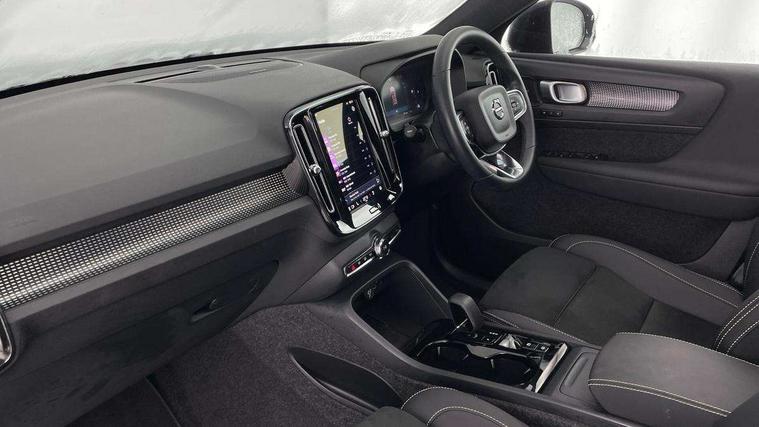 12.3" Progressive Driver Display, 360 degree surround view parking camera with side proximity sensors, 9" centre console portrait touch screen, Adjustable steering wheel force, Android auto (Wired), Apple carplay (wired), Bluetooth handsfree system, Driver alert control, Driver assistance (pilot assist and adaptive cruise control), Driver awareness - Blind spot information system with steer assist, cross traffic alert with autobrake and rear collision warning and mitigation, E-call, Front park assist, Google automotive services - Enabled entertainment apps, navigation with google maps, voice recognition with google assistant, Hands free power tailgate, Intelligent speed assistance, Lane keeping aid, Oncoming Lane Mitigation, Rear park assist, Speed sensitive steering, Volvo cars services with app - Driving journal, emergency and breakdown call, engine remote start, remote door locking/unlocking and vehicle dashboard, Wireless/Inductive Mobile Phone Charging, Automatic transmission with start/stop and manual change functions, Dynamic chassis, DAB Digital radio, Premium Sound by Harman Kardon, Dolby Pro Logic II Surround Sound, Dirac Unison, 12 speakers/600W and subwoofer, Steering wheel mounted remote controls, Active bending pixel LED headlights with adaptive shadow technology, Active high beam incorporating daytime running lights, Adaptive brake lights with high level LED brake lights, Auto dimming feature for exterior door mirrors, Auto dimming interior mirror, Automatic headlamp levelling, Colour coordinated auto folding and heated power door mirrors, Dark tinted windows - rear side windows and rear screen, Front aluminium tread plates, Front and rear electric windows, Headlight cleaning system, High gloss black front and rear skid plate, High gloss black front bumper deco, High gloss black front grille strikethrough and ironmark, High gloss black rear model, engine and volvo logo badges, High gloss black window trim, Home safe and approach lighting, Integrated roof rails in high gloss black, LED front fog lights with cornering function, Power glass tilt and slide panoramic sunroof with sun curtain, Puddle lights, Rain sensor with automatic windscreen wiper activation, Rear side wing doors, Rear wiper, Roof antenna, Roof spoiler, Visible VIN plate, 12V socket in front tunnel console and luggage compartment, 2-Zone electronic climate control with CleanZone air quality system and pollen filter, 3 seat bench in 2nd row, 3 Spoke tailored steering wheel with chrome trim, 60/40 versatile split folding rear seat, Centre console cupholders and storage, Charcoal headlining, Connect textile/microtech upholstery, Flexible load floor and grocery bag holder, Floor mats, Front cabin courtesy lights, Front door pocket, front cupholder, ambient front door, rear reading, rear courtesy, instrument panel and tailgate lighting, Front footwell illumination, Front headrests, Front reading lights, Front seat cushion extensions, Front side step illumination (under door), Glovebox bag hook, Heated front seats, Height/reach adjustable steering column, High gloss centre tunnel deco, Illuminated glovebox, Illuminated luggage compartment, Illuminated vanity mirrors + ticket holder, Integrated waste bin, Isofix attachments on outer rear seats, Load cover, Load protection net, Multi directional lumbar support for driver and passenger seat, Power driver seat with memory + exterior mirrors memory, Power folding rear headrests, Power passenger seat, Rear armrest with cupholders, Single front passenger seat, Underfloor cargo storage, Climate pack without heated front seats - XC40, 3x3 point rear seatbelts, City safety with steering support with Pedestrian + cyclist + front collision warning with full auto brake and rear auto brake, Driver and passenger airbags, Drivers knee airbag, Electronic parking brake with auto hold, First aid kit, Front and outer rear seatbelt reminder and pretensioners, Front seats SIPS airbags, Hill descent control, Hill start assist, Inflatable curtain, Passenger airbag cut-off device, Power child locks on rear doors, Road sign information display, Run off Road Protection, SIPS (Side Impact Protection System), Slippery road and hazard light alert, Stability and Traction Control with Spin control, Engine Drag Control and Corner Traction Control, Tyre pressure monitoring system, Vehicle deceleration control with Anti-lock Brake System, Electronic Brake Distribution and Emergency Brake Assist, Warning triangle, WHIPS whiplash protection system - front, 2 x Key integrated remote control central locking including with deadlocking system and auto open/close windows and sunroof, Anti-theft alarm including immobiliser/volume sensor + level sensor, Keyless drive includes keyless entry and keyless start, Locking wheel nuts,