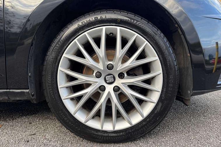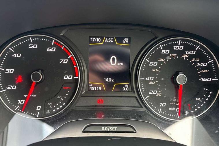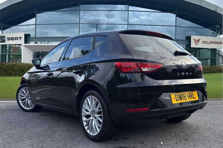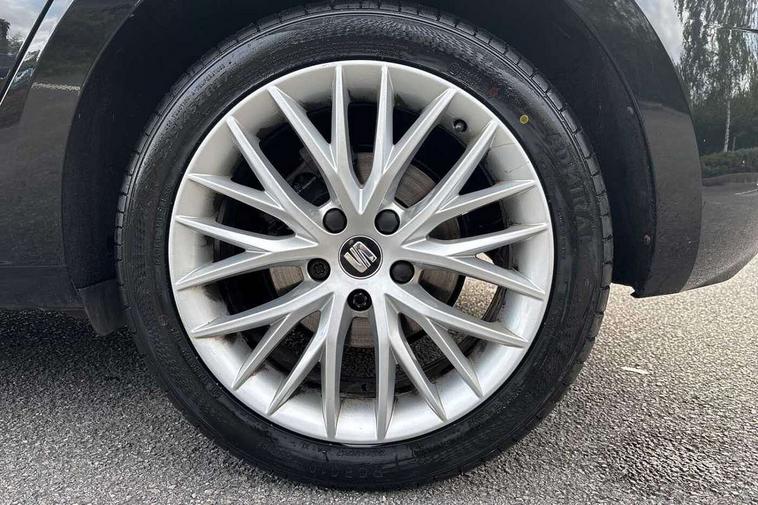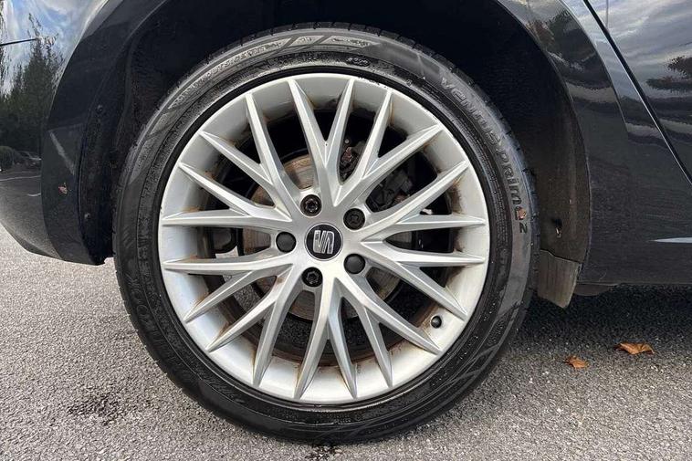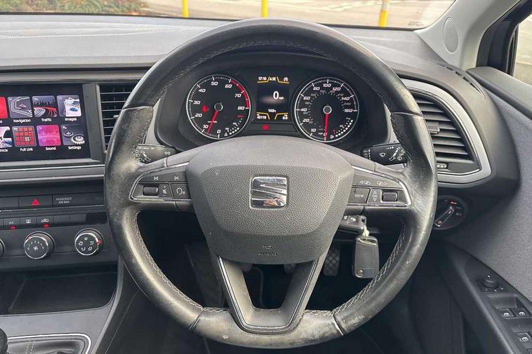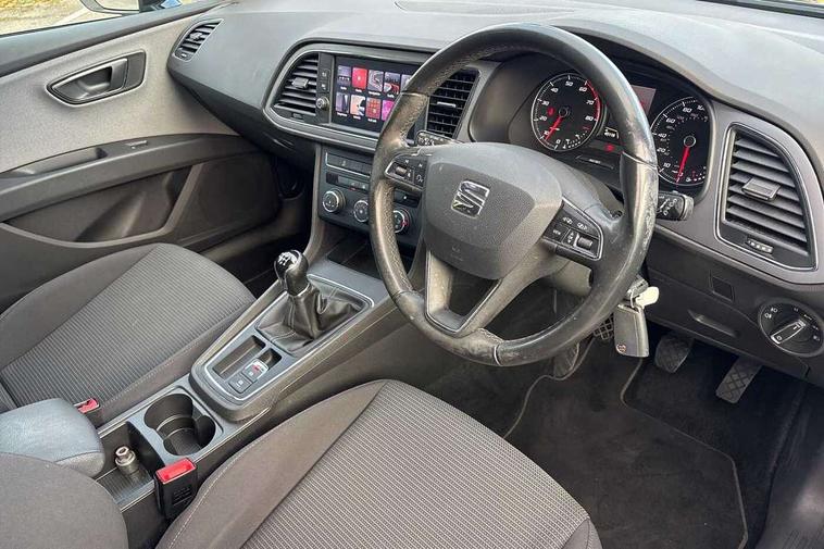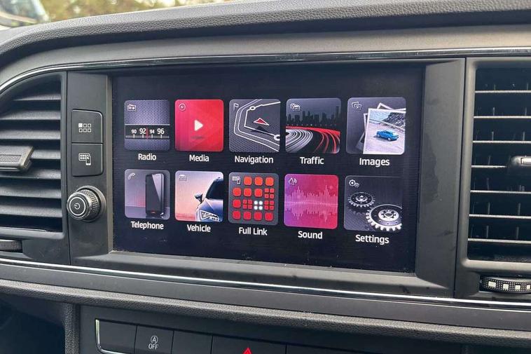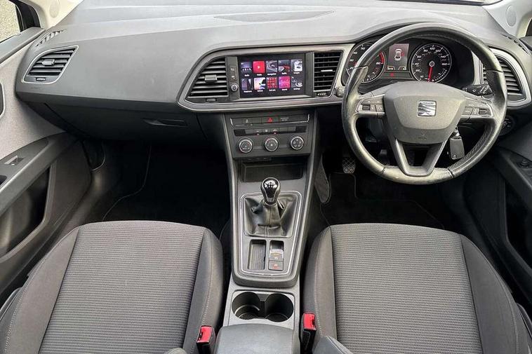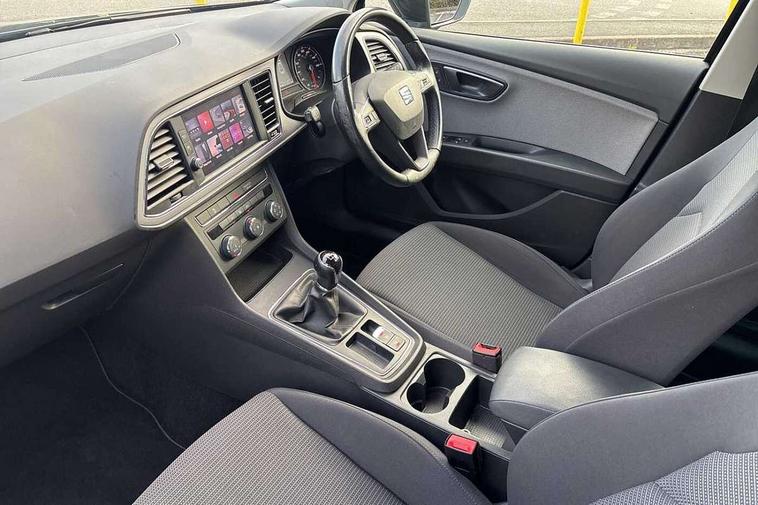 'Lights On' Reminder warning buzzer, 8" touch screen, Bluetooth Handsfree Phone Connection, Electro-mechanical PAS, Low fuel warning light, Outside temperature gauge, Rear parking sensors, Remote fuel flap release, SEAT logo boot release, Service interval indicator, Trip computer, Voice control system, Comfort suspension, XDS electronic differential lock, 2 USB ports, 2 USB sockets in rear, 2x SD card slot, Auxiliary input socket, Bluetooth audio streaming, DAB Digital radio, Radio/CD + MP3, Steering wheel mounted audio/phone controls, Black grille with chrome surround, Body colour door handles, Body coloured bumpers, Body coloured door mirrors, Dark tinted rear windows, Electric front/rear windows with one touch/auto up/down, Electric headlamp adjustment, Electrically adjustable door mirrors, Heated door mirrors, High gloss black finish B and C pillars, LED daytime running lights, LED indicators in door mirrors, Rear wash/wipe, 12v power point in centre console, 3 height adjustable rear headrests, 60/40 split folding rear seat, Active head restraints, Additional heating and ventilation outlet in rear of centre console, Boot net, Cloth upholstery, Driver seat height adjust, Driver seat lumbar adjustment, Dust/pollen filter, Front armrest with storage box, Front comfort seats, Front cupholders x 2, Front seat and rear pockets, Front/rear floor mats, Height/reach adjust steering wheel, Instrument lighting with brightness control, Leather handbrake, Leather steering wheel and gear knob, Luggage tie-down hooks, Passenger seat height adjuster, Rear top tether child seat ISOFIX attachment, Storage box under drivers seat, Seat navigation pack - Leon, 3 point seatbelts on all rear seats, ABS + traction control, Active pedestrian safety system, Child proof door locks, Collision mitigation braking system, Curtain airbags, Driver/Front Passenger airbags, Drivers knee airbag, Electronic parking brake with auto hold, ESP+EBA, Front assist including city emergency braking, Front seatbelt pretensioners, Front Seatbelt warning, Front side airbags, Hill hold control, Passenger airbag deactivation system, Tyre pressure monitoring system, 2 folding remote keys with window open/close function, Engine immobiliser, Locking wheel bolts, Remote central locking + deadlocks, Volumetric alarm with back up horn, Chrome interior trim, 17" Dynamic alloy wheels 30/3,
