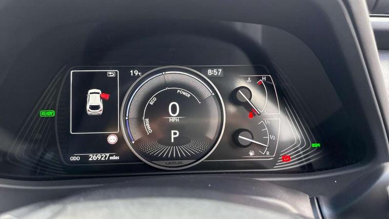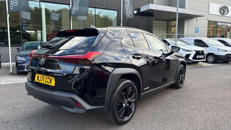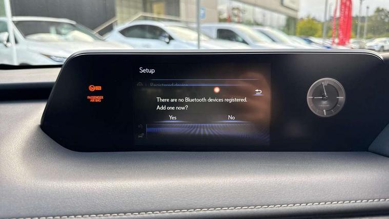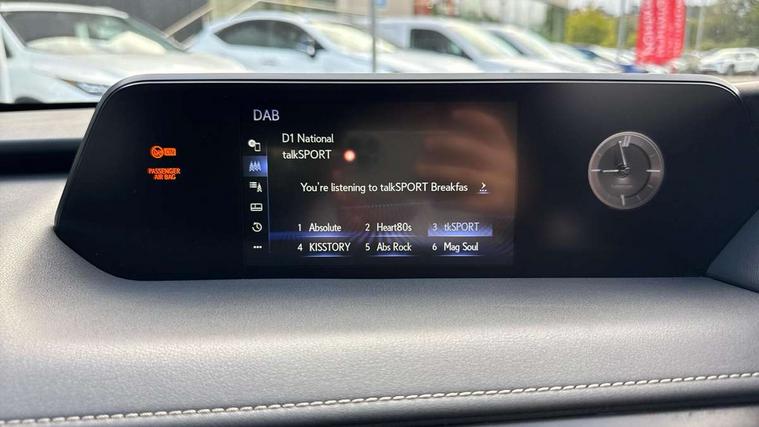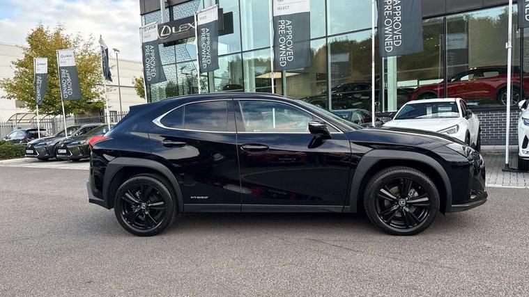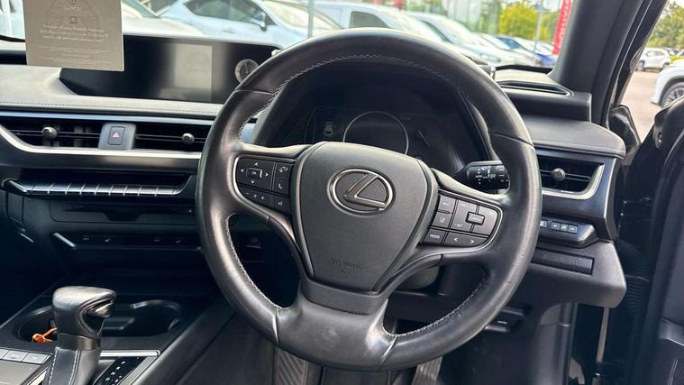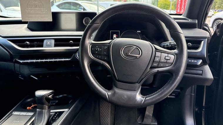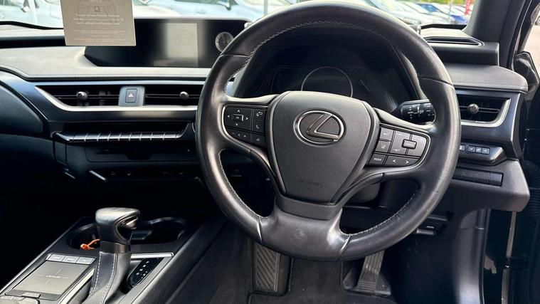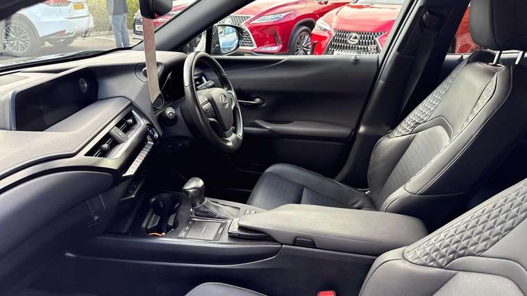4 driving modes EV/Eco/Normal/Sport, 7" Lexus media display, 7" TFT instrument cluster, Analogue clock with GPS function, Apple car play/Android Auto, Compatible mobile phone bluetooth with audio streaming, E-call, Electric power steering (EPS) with speed sensitive features, Lane change flasher function, Lexus link connected services, Lexus safety systems + includes dynamic radar cruise control, pre collision system day and night, lane tracing assist, road sign assist, Push button start, Remote touch interface, Trip computer, Vehicle Dynamics Integrated Management (VDIM), Vehicle Stability Control (VSC), 2 front USB and 2 rear USB charging points, 6 speakers, AM/FM and DAB radio, AUX socket with VTR compatibility, CD player, Acoustic windscreen, Aero stabilising arch mouldings, Aero stabilising rear lights, Aero ventilated wheels, Bi-LED (low and high beam) headlights with Auto High Beam (AHB), Black roof drip mouldings, Black wheel arches, Body adhesive, laser screw welding and laser brazed roof structure, Body coloured bumpers, Electric adjustable/heated door mirrors, Front and rear one touch power windows, with anti-jam protection, Headlight cleaners, LED daytime running lights, LED tail lights, LED third brake light, Light green UV glass, Manual control of windscreen wipers, Rear wiper, Shark fin roof aerial, Single hidden exhaust pipe, Towing preparation, Variable front intermittent wipers, 12V accessory port centre console and luggage compartment, 2 cup holders in the front and rear centre console, 2 x folding shopping bag hooks in boot, 2 x sun visors with vanity mirror and lamp, 4 x tie down hooks in the boot, 5 headrests, 6 way driver and passenger manually adjustable front seats, 60/40 split folding rear seat, Card holder installed in driver and passengers sun visors, Centre armrest with storage, Driver and passenger door pocket, Dual zone electronic climate control + Nano-E humidity sensor, Glovebox, Illuminated entry system, Leather gear lever, Leather steering wheel, LED interior illumination, Map pockets in the rear of passenger's front seat, Premium fabric upholstery, Rear air vents with 2 USB chargers, Rear armrest with 2 cupholders, Storage tray under audio panel, Textile carpet mats, Tilt/reach adjustable steering column, Under deck storage, Under desk side storage, 2 x Isofix child rear seat restraints, 3x3 point rear seatbelts, Anti-lock braking system (ABS), BAS (Brake Assist System), Driver and front passenger 2 stage airbag, Driver and front passenger knee airbag, Driver/front passenger side airbags, EBD - Electronic brakeforce distribution, ECB (Electronically Controlled Brake System), Electric parking brake, Front adjustable seatbelt anchor points, Front and rear curtain shield airbags, Front outer seatbelt+pre-tensioners, force limiter+tension reduction: 3-point with active safety link to PCS, Hill start assist control (HAC), Passenger airbag cut-off device, Rear outer seatbelt+pre-tensioners, force limiter+tension reduction: 3-point with active safety link to PCS, Centre belt w/o pre tensioner+force limiter, Secondary Collision Brake (SCB), TRC (Traction Control), Tyre pressure warning, 2 x remote key fobs, Anti theft system : Alarm instruction sensor, glass breakage sensor and engine immobiliser, Locking wheel nuts, Remote central door locking, Speed sensitive auto door locking, Two motion door lock with double lock, VIN Window etching, 17" Alloy wheels, Tyre repair kit,