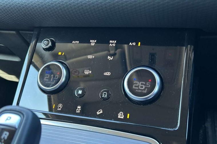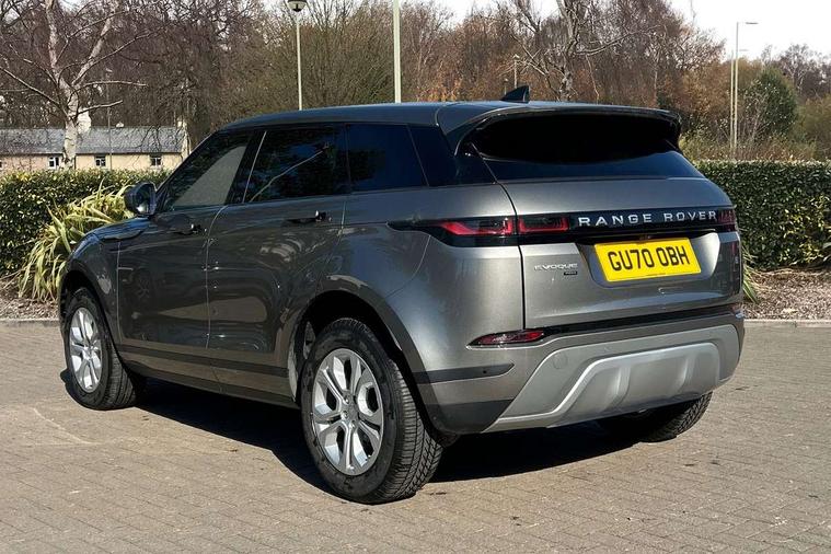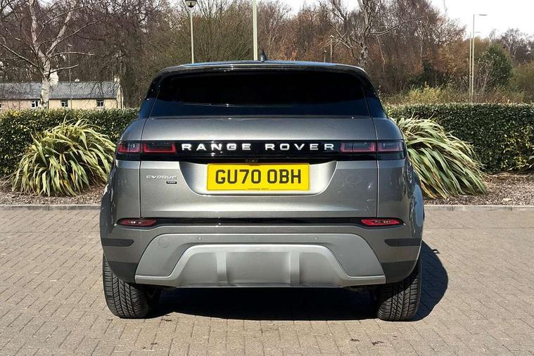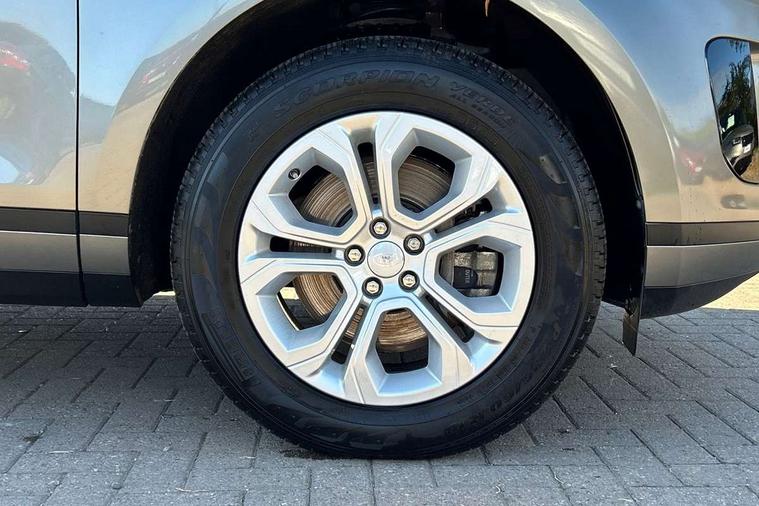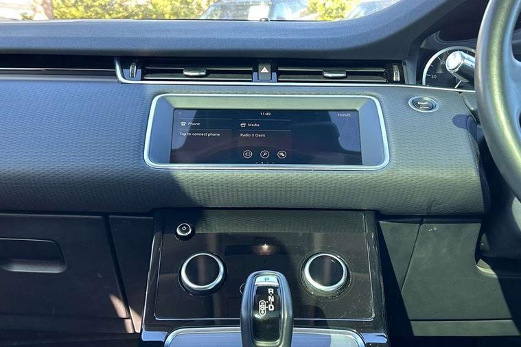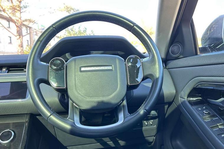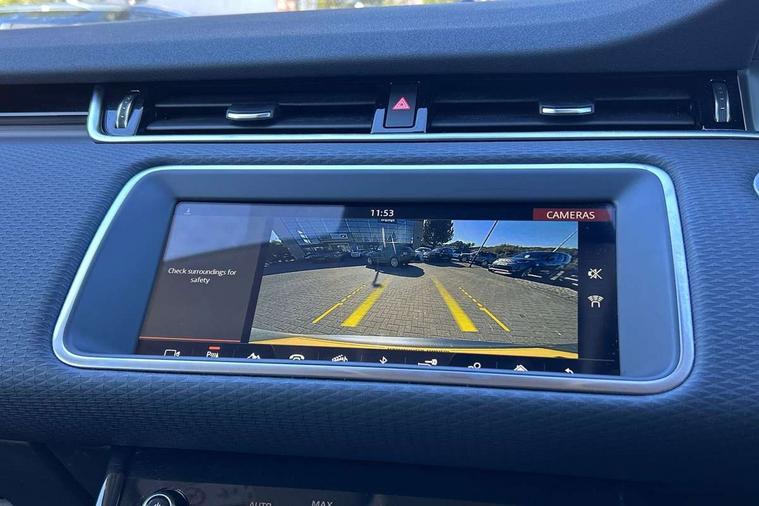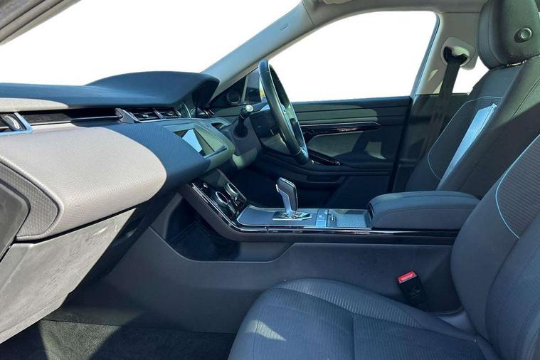 3D 360 degree surround camera, Android Auto, Apple car play, Bluetooth connectivity, Brake pad wear indicator warning light, Driver condition monitor, Electronic power assisted steering (EPAS), InControl remote, Land Rover InControl apps, Lane keep assist, Push button starter, Voice control system, Wade Sensing, All terrain progress control, Efficient Driveline, Large fuel tank, Passive suspension, Terrain Response 2 Auto, Digital Audio Broadcast radio-DAB, Steering wheel mounted controls, Electric windows with one touch open/close and anti trap, Evoque badge, Flush deployable exterior door handles, Heated rear window with timer, Heated washer jets, Heated windscreen, Power fold, auto-dimming, heated door mirrors with approach lights and auto dimming driver side, Rain sensing windscreen wipers, Rear fog lights, Tailgate spoiler, 40:20:40 split folding rear seats with centre headrest and armrest, Ambient interior lighting, Isofix system on outer rear seats, Overhead lighting console, Overhead stowage for sunglasses, Passive front head restraints, Rear air vents, Rear centre headrest, Sunvisors with illuminated vanity mirrors, Twin sliding front centre armrest, 3 rear 3 point seatbelts, Anti-lock braking system (ABS), Customer configurable autolock, DSC - Dynamic Stability Control, Electronic brake force distribution, Electronic parking brake, Electronic traction control, Emergency braking, Front and rear seatbelt reminder, Hill descent control, Hill launch assist, Low traction launch, Power operated child locks, Roll stability control, Six airbags - Driver and passenger airbags/driver knee airbag/front side airbag and curtain airbags, Torque vectoring brake, Tyre pressure monitoring system, Alarm, Immobiliser, Intrusion sensor, Locking wheel nuts,