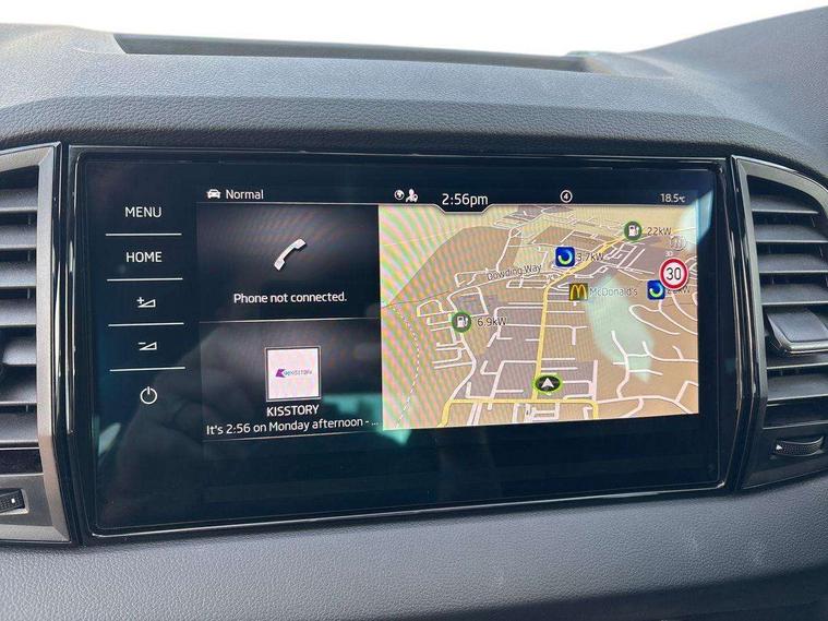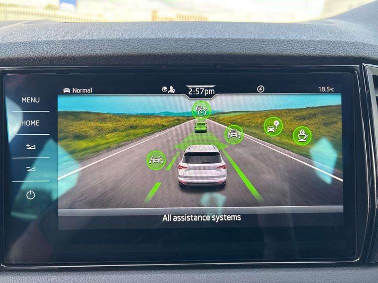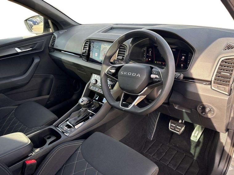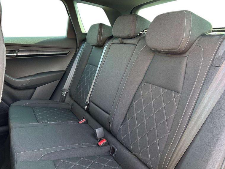Advanced driver attention and drowsiness monitor, Emergency services call system, Outside temperature gauge, Sensor for driver assistance systems, Service interval indicator, SmartLink wireless for Apple and wired for Android, Start/stop system with regenerative braking, Traffic sign recognition, USB C Port x 2 in front centre console, Virtual Cockpit - 10.25" digital display, Virtual pedal with electrically operated boot door, Wireless smartphone charging, DAB radio with Bluetooth, USB connection, Acoustic glass, Aero front windscreen wipers with intermittent function, Auto dimming rear view mirror with light and rain sensors, Black door mirrors, Black electric window control buttons, Black radiator grille, Black roof rails, Body colour door handles, Electric front and rear windows with child proof lock, Extended rear roof spoiler, Front door steps with SportLine logo, Heated rear windscreen, LED daytime running lights, LED rear lights with high functionality welcome effect and dynamic indicators, Light assistant (coming/leaving home/tunnel light), Panoramic sliding sunroof, Plastic scuff plates in door apertures, Privacy glass, Protective door side sills in body colour, Rear diffuser, Rear side wing doors, Rear window wiper with washer system and intermittent control, Safety reflectors on front doors, Skoda lettering on tailgate in black, Sportline badge on front fender, Sports front and rear bumpers, Third brake light, Unique dark chrome design logo on alloy wheels, 1.5 litre bottle holders in driver and front passenger door panels, 12V socket in boot, 12v socket in front centre armrest with storage compartment and rear air vents, 2 x Tablet holder, 3 rear height adjustable headrests, 3 seat bench in 2nd row, 3 spoke sports leather heated multifunction steering wheel with DSG paddles, 4 foldable roof handles with rear coat hooks, Black floor carpet, Cargo elements in boot, Chrome inner door handles, Foldable hooks in the boot, Front head restraints, Height adjustable front three point seats belts with tensioners, Height/reach adjust steering wheel, Ice scraper, Illuminated glovebox, Illuminated luggage compartment, Isofix child seat preparation for front passenger seat, Isofix child seat preparation outer rear, Manual lumbar support for front seats, Pen holder, Pollen filter, Rear backrest release from boot, Rear boot cover, Rear package tray, Rear reading lights, Rear seats fixed folding and divided 60:40, Rubbish bin door, Safety vest holder, Single front passenger seat, Skoda lettering on steering wheel, Sportline decorative inserts, Storage box in upper central dashboard closed, Sunvisors with illuminated vanity mirrors, Textile floor mats, Ticket holder, Titan black interior ceiling, Umbrella under passenger seat, Under passenger seat storage compartment, Columbus pack - Karoq, LED Interior lighting pack with Skoda welcome logo - Karoq, Light Pack - Karoq, Non Smokers pack, Performance pack - Karoq, Winter plus pack with heated front and rear seats - Karoq, Automatic door unlocking in case of crash, Automatic fuel cut off in case of crash, Driver airbag, Electronic parking brake with auto hold function, Emergency rear braking signal, ESC (incl. ABS+MSR+ASR+EDS+HBA+DSR+RBS+MKB), Front side airbags, Head airbags, Hill hold control, Knee airbags, Passenger airbag with switch-off function, Pedestrian monitor, Seatbelt reminder signalisation and pretensioner for all seats, Three point seatbelts rear, Two tone horn, Tyre pressure monitor, Alarm with interior monitoring, back up horn and tilt sensor with safe function, Electronic engine immobiliser, Keyless entry and start/stop, Remote central locking with 2 remote folding keys, Black air vent surround, Black centre console, carbon door decor, Satin black dashboard, Satin black door trim, 19" Sagittarius anthracite alloy wheels, Anti-theft wheel bolts protection, Breakdown and tool kit,