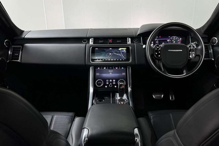 Bluetooth telephone connection, Clear exit monitor, Driver condition monitor, Electric gesture tailgate/boot lid, InControl secure, Mist sensor, Navigation pro system with 10" touch screen, app interface and media storage, Pro services and wifi hotspot, Push button starter, Rear cross traffic alert, Rear park distance control, Speed sensitive power steering, TFT Virtual Instrument Panel, Traffic sign recognition, Trip computer, 7 kW onboard charger, Adaptive dynamics, Electronic air suspension, Electronic differential lock, Terrain Response 2 with dynamic program, Twin speed transfer box, Bluetooth audio streaming, DAB Digital radio, InControl protect, USB/aux input socket, Adaptive brake lights, Auto dimming door mirrors, Auto dimming rear view mirror, Autobiography badge, Automatic headlights, Body coloured side sills and bumpers, Electric heated, adjustable, folding door mirrors with memory + approach lamp, Engine cover, Follow me home headlights, Front fog lights, Heated rear window, LED rear lamps, Rear wash/wipe, Remote window closing, Trailer stability assist, Twin bright tailpipes, 2 way active front head restraints, 2 way rear head restraints, 60/40 Split fold rear seat/load through facility, Auto air recirculation, Bright metal foot pedals, Centre cooler storage box, Climate control memory, Configurable Ambient interior lighting, Driver's footrest, Front and rear cupholders, Front and rear premium carpet mats, Front door storage bin, Front map lights, Front seat back map pockets, Front stowage pocket, Front/rear passenger grab handles, Glovebox, Heated steering wheel, Isofix child seat preparation, Leather steering wheel with Atlas inserts, Luggage compartment lighting, Multifunction steering wheel, Pollen filter, Reach/rake electric adjustable steering column + entry/exit tilt away, Rear centre armrest, Roller blind loadspace cover, Satin chrome gearshift paddles, Sports pedals, Three 12V accessory power outlets, Extended leather pack - Range Rover Sport, InControl connect Pack - Range Rover Sport, 3 point seatbelts on all seats, ABS + EBD + EBA, Auto lock system when vehicle in motion, Auto locking differential, Cornering brake control (CBC), Curtain airbags, DSC - Dynamic Stability Control, Dual stage driver/passenger airbags, Electric child locks, Electronic parking brake, Electronic traction control, Front seatbelt pretensioners, Front side airbags, Height adjustable front seatbelts, Hill descent control, Low traction launch, Roll stability control, Seatbelt warning, Torque vectoring brake, Tyre pressure monitoring system, Immobiliser, Intrusion sensor, Keyless entry, Locking wheel nuts, Perimetric and volumetric anti theft alarm, Remote locking, Tyre repair kit,