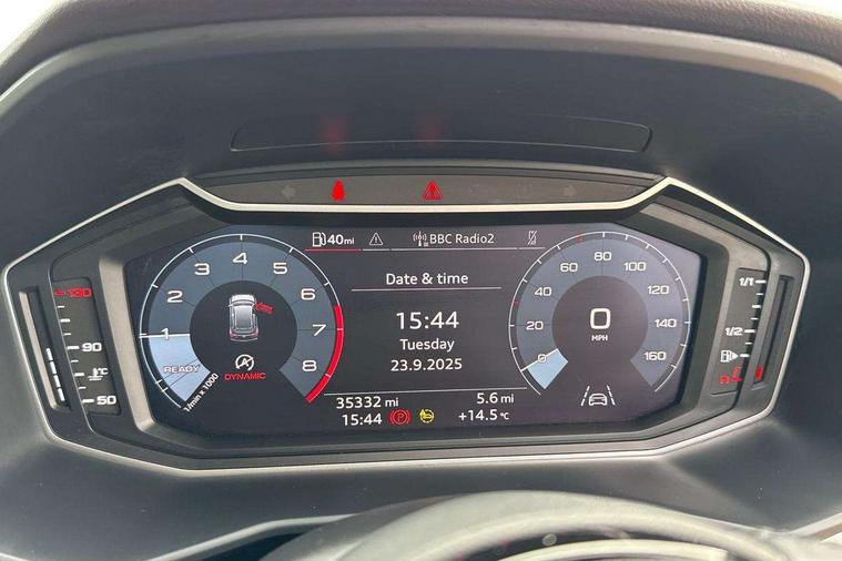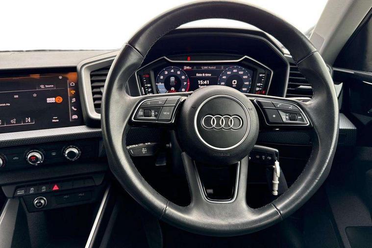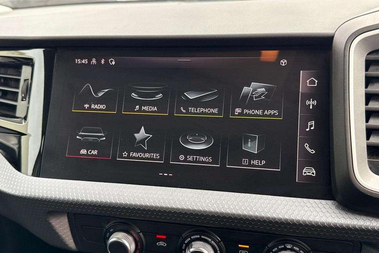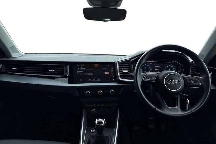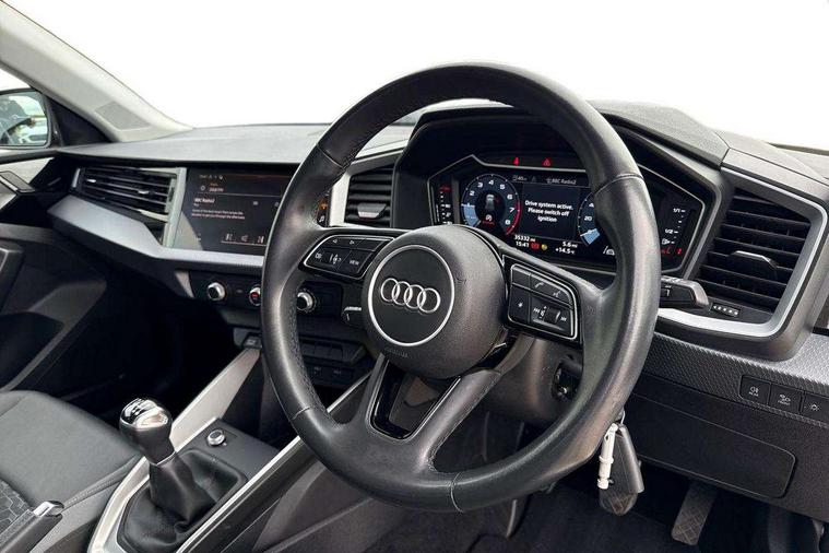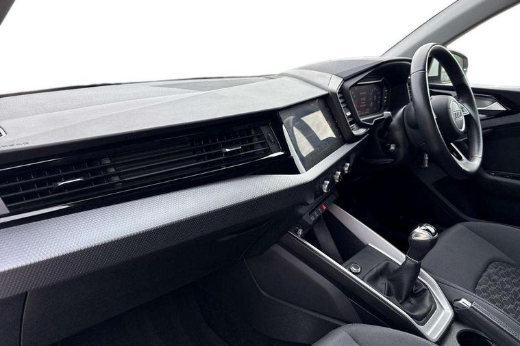 10.25" Digital instrument cluster display classis style instrument dials + speed, odometer, time, outside temperature, telephone menu + fuel level warning, Audi drive select - power steering assistance + engine, Audi smartphone interface with connect compatible smartphone via USB directly MMI display + Nav, music, third party apps controlled via MMI controller, Automatic start/stop system, Bluetooth interface, Cruise control, Driver's information system, Electromechanical power steering, Emergency e-call, Lane departure warning system, Rear parking sensor, Service interval indicator, Speed limiter, Voice control system, Washer fluid level indicator, Dynamic suspension, 2 x USB type C connection points, 6 passive loudspeakers, DAB Digital radio, MMI radio plus with 10.1" colour MMI display screen and MMI touch, Auto dimming rear view mirror, Body coloured bumpers, Body coloured door mirrors, Electric front and rear windows, Electrically adjustable, heated, folding door mirrors with integrated LED side indicator, Front side air inlets in grained matt black and C frame in anthracite black, Heat insulating glass windscreen and side windows, Heated rear windscreen, High level LED brake light, LED headlights with LED rear lights + dynamic rear indicators + headlight adjustment and high beam, turning light + LED daytime running lights, Radiator grille and rear diffuser in matt anthracite black, Radiator protective grille frame in matt aluminium silver, Rain and light sensors, Rear fog lights, Rear side wing doors, Rear wiper, Side front spoiler lips in grained matt black, 12V socket in centre console with two cup holders, 3 rear seats with headrests, 3 seat bench in 2nd row, 3 spoke leather multifunction plus steering wheel, 40:60 Split folding rear seat or folded fully, Black front and rear floor mats, Door sill trims with aluminium inlay, Driver and passenger seat with manual height adjust with forward and backwards adjustment, Front head restraints, Front passenger seat, Grey cloth headlining, Height and reach adjustable steering wheel, ISOFIX child seat mounting for front passenger and outer rear seats including top tether attachment point of outer rear seats, Leather gear knob with aluminium trim, Leatherette handbrake grip, Luggage compartment light with front and rear reading lights, Manual air conditioning, Manually adjustable lumbar support in front seats, Novum cloth upholstery with front sport seats, Luggage compartment pack - A1, 3x3 point rear seatbelts, Audi pre-sense front with pedestrain and cyclist recognition, Brake assist function, Driver and front passenger airbag with front side and head airbags, Electronic Stability Control including ABS, EBD, ASR and EDL, Front passenger airbag deactivation switch, Hill hold assist, Manual rear child locks, Seatbelt height adjustment for front seats, Seatbelt monitoring, Tyre pressure warning light, Warning triangle and first aid kit, Anti theft alarm, Anti theft wheel bolts and loose wheel warning, Immobiliser, Remote central locking with 2 foldaway keys, Aluminium trim for control switches, air vents and digital instrument cluster, Black dashboard, Silver grey accent areas including air vents, door handle recesses and centre console in diamond paint finish, Slate grey inlays polygon structure in fine paint finish,
