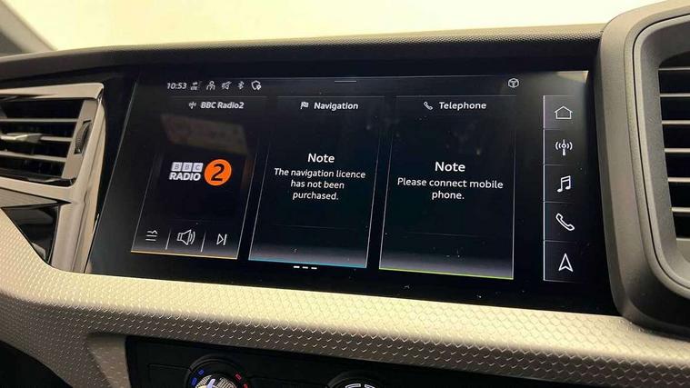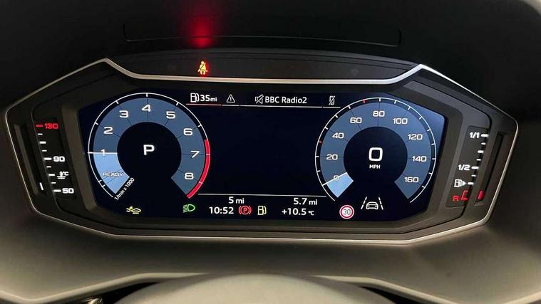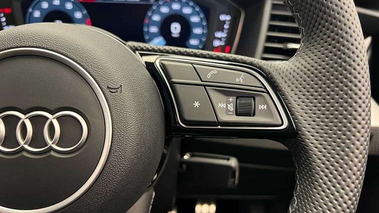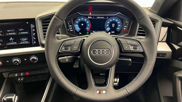 10.25" Digital instrument cluster display classis style instrument dials + speed, odometer, time, outside temperature, telephone menu + fuel level warning, Advanced driver attention and drowsiness monitor, Audi connect emergency call and service, Audi remote connect and control, Audi smartphone interface, Bluetooth interface, Camera based traffic sign recognition, Cruise control, Driver's information system, Electromechanical power steering, Lane departure warning system, Rear parking sensor, Service interval indicator, Speed limiter, Start stop system with recuperation, Voice control system, Washer fluid level indicator, Sports suspension, 2 x USB type C connection points, 6 loudspeakers, DAB Digital radio, MMI radio plus with 10.1" colour MMI display screen and MMI touch, Auto dimming rear view mirror, Body coloured door mirrors, Door sill trims with aluminium inlays and S line logo in front, Electric front and rear windows, Electrically adjustable, heated, folding door mirrors with integrated LED side indicator, Front side air inlets in grained matt black and C frame in anthracite black, Headlight cleaning system, Heat insulating glass windscreen and side windows, Heated rear windscreen, High level LED brake light, LED daytime running lights, LED headlights with range control LED rear lights + dynamic rear indicators, Privacy glass, Radiator grille and rear diffuser in matt anthracite black, Radiator protective grille frame in matt aluminium silver, Rain and light sensors, Rear fog lights, Rear side wing doors, Rear wiper, S line badges on front wings, Side front spoiler lips in grained matt black, 12V socket in centre console with two cup holders, 3 rear seats with headrests, 3 seat bench in 2nd row, 3 spoke leather multi-function plus steering wheel features S badging and grips in perforated leather with contrast stitching, 40:60 Split folding rear seat or fully collapsed, Black cloth headlining, Front and rear velour black floor mats with contrast stitching in fine silver, Front head restraints, Front passenger seat, Height and reach adjustable steering wheel, Interior lighting includes roof module, front and rear reading lights and right luggage compartment lighting, ISOFIX child seat mounting for front passenger and outer rear seats including top tether attachment point of outer rear seats, Leather gear knob with aluminium trim, Leather handbrake grip, Manual air conditioning, Manual height adjustable for driver and front passenger seat, Manually adjustable lumbar support in front seats, Stainless steel pedals, Ambient lighting package - A1, Luggage compartment pack - A1, S line exterior styling pack - A1 Sportback, 3x3 point rear seatbelts, Audi pre-sense front with pedestrain and cyclist recognition, Brake assist function, Driver and front passenger airbag with front side and head airbags, Electronic Stability Control including ABS, EBD, ASR and EDL, Front passenger airbag deactivation switch, Hill hold assist, Manual rear child locks, Seatbelt height adjustment for front seats, Seatbelt monitoring, Tyre pressure loss indicator, Warning triangle and first aid kit, Anti theft alarm, Anti theft wheel bolts, Immobiliser, Remote control key with safelock, Aluminium trim for control switches, air vents and digital instrument cluster, Black dashboard, Silver grey inlays polygon structure in diamond paint finish, Structured grey accent surfaces insert of air vents, interior door handle recesses and centre console in quartz paint finish,