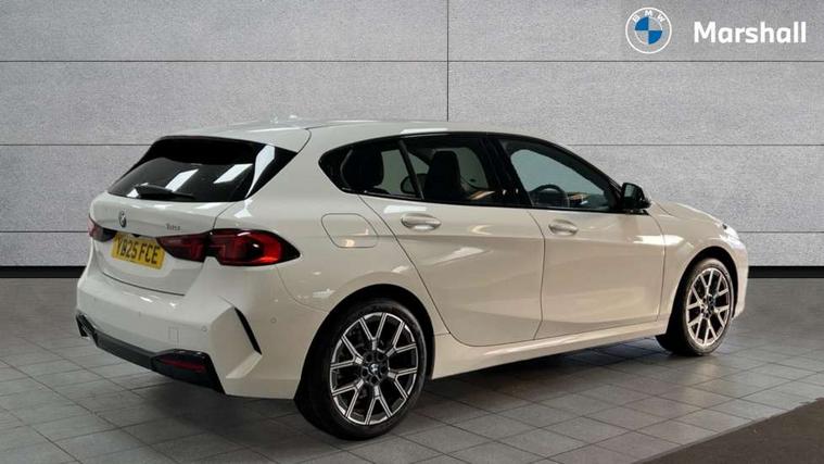 Active guard plus, Attentiveness assist, Bluetooth / WiFi interface for wireless connection of mobile terminal devices and audio streaming, BMW ConnectedDrive online services, BMW Live cockpit plus, BMW Teleservices, Check Control warning system for monitoring of lights and door/luggage compartment open warning, Eco pro mode, Electric power steering with Servotronic steering optimised at all speed ranges, Evasion assistant, Flat airvents in instrument panel with adjustable slats, Front and rear parking sensors, Front axle single joint with specific axle kinematics to minimise drive influences on steering + provide increased rigidity agile driving behaviour, Integrated owners handbook, Left turn warning with brake function, My modes (Personal / Efficient / Sport), Oil sensor for level and grade, On board computer, Optimum shift indicator, Park assist including reversing assistant, lateral parking aid and reversing assist camera, Personal e-SIM, Personal Profile, Pull away assistant, Rigidly mounted rear subframe - Multi link construction with separate spring / damper configuration and excellent driving characteristics, Speed limit Info including no-overtaking indicator, Speed limiter, 49 litre fuel tank, 7 speed automatic transmission with double clutch technology, Aluminium lightweight construction, Anti roll bar front and rear, Balancer shaft, Double VANOS twin scroll turbocharging system, Drive Performance Control, Electronic differential lock, Electronic selector lever, High precision injection, Petrol Particulate Filter, Suspension with twin tube gas filled shock absorbers with degressive characteristic curve, VALVETRONIC engine management, DAB Digital radio, Auto dimming rear view mirror, Automatic windscreen wipers and automatic headlight, Body colour door handles, Body colour mirror caps, Chrome exhaust twin tailpipes round 90mm in left, Direction indicator side lights in exterior mirrors, Electrically adjustable exterior mirror with mirror adjustment switch on drivers armrest and aspheric on driver side, convex on passenger side, Fading support, Follow me home headlights, Front and rear bumper system with replaceable deformation elements, Front and rear electric windows with open and close fingertip control, anti trap facility and comfort closing, Front bumper in Body colour with exclusive Sport air inlets finished in High gloss Black, Front door sill finishers in black plastic with BMW designation in metallic look, Grained matt black roof strip, Green tinted heat protection glazing, Heated rear window, High gloss black exterior mirrors, High gloss shadowline window frame, Recess cover mirror frames and B/C pillar embelisher trim, High level third brake light, Integrated front windscreen with washer jets, Kidney grille in chrome frame with highgloss black struts, LED daytime running lights, LED eyebrow turn indicators, LED front fog lights, LED Headlights, Lightweight engineering, Manual headlight beam throw control, Manual headlight levelling, Matt black air guide grilles, Matt black wheel arch trim, Model badge on tailgate right, Nearside reverse light in rear light cluster, Power folding and heated door mirrors, Preparation for high beam assistant, Rain sensor, Rear bumper in Body colour with exclusive Sport design elements finished in High gloss Black, Rear fog lights, Rear side wing doors, Rear window wiper, Shark fin antenna, Trailer stabilisation logic, Visible VIN plate, Welcome lighting, 12V power socket in front centre console with blanking plug, 3 rear seat head restraints, 3 seat bench in 2nd row, 3 spoke sports leather steering wheel in black leather with black stitching and decorative finisher in pearl chrome, Anthracite front and rear floor mats, Black boot net with lashing eyes, Cargo function on 2nd seat row, Child seat ISOFIX attachment for two outer rear seats and front passenger seat with anchorage points, Conditioned based service, Driver and front passenger backrest net on rear, Driver and front passenger seat heating, Driver side folding compartment in instrument panel, Folding rear clothes hook, Footrest and pedals in black plastic, Four grab handles integrated in roof lining, Front and rear door pockets with bottle holders, Front and rear side armrest integrated into door trim, Front armrest with storage compartment, Glove compartment, Height adjustable front head restraints, Luggage compartment for bag hooks on left and right, foldable luggage compartment liner and four lashing eyelets, Manual adjust steering wheel, Multi-function controls for steering wheel, Rear seat backrest with manual 60:40 split folding with 3 top tether clips integrated on rear of seat panels, Single front passenger seat, Storage compartment in centre console, Storage compartment in luggage compartment, Stowage of the parcel shelf in luggage compartment trim, Sun visors with vanity mirrors and insert tab, Two front centre console cupholders, Type C two USB ports in rear centre console, Upper retaining strap integrated into backrest rear panels, Connected pack professional - 1 Series, Interior lights pack - 1 Series, 2 tone horn, 3 point seatbelts on all seats, front pyrotechnic belt tensioners, stopper and belt force limiters, rear coded belt buckles, Airbags - Front driver/passenger, front and rear curtain head protection, front side, manual deactivation of front passenger airbag, Anti lock braking system (ABS) with brake assist, BMW emergency call, Brake drying, Braking readiness, Child proof locking system in rear door, Comfort modes, Cornering brake control, Crash sensor activating of airbags, Unlocking doors, hazard warning lights, fuel cut off, interior lighting+activation of safety battery terminal clamp, Driver and front passenger seat belt security check, Dynamic stability control + (DSC+), Dynamic Traction Control - DTC, Electrically operated hand brake including automatic hold function, Front and rear disc brakes, Seatbelt warning, Side impact protection, Tyre pressure 