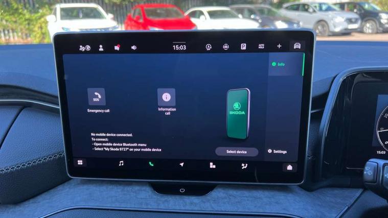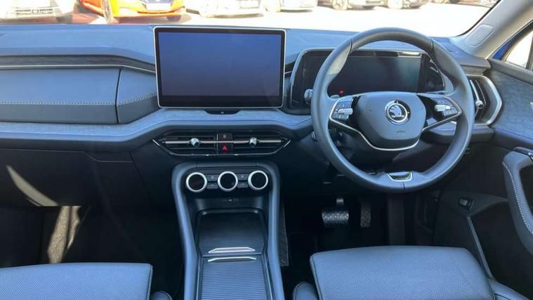 13" satellite navigation touchscreen display, Blind spot detection with door exit warning, Bluetooth system, ChatGPT functionality, Drive mode selector, Driver alert with fatigue sensor, Driver drowsiness alert system, Dry display cleaner, e call+, Front cross traffic assist, Lane assist, PAS, Rear traffic assist, Tailgate unlocking from outside, Traffic sign recognition, USB C Port x 2 in front centre console, Virtual Cockpit - 10.25" digital display, Voice control system, Wireless charging for two smartphones (15W) with cooling function, Wireless SmartLink for Apple CarPlay and Android Auto, Stop/start function, 2x USB-C in the rear, DAB Digital radio, Aero front windscreen wipers with intermittent function, Auto dimming rear view mirror, AWL (all weather lighting) and all weather light with cornering function, Black wheel arch surrounds, Body colour bumpers, Body colour door mirrors and handles, Cornering light and poor weather light, Electric folding /adjustable/separted heated/folding door mirrors, auto dimming with boarding sports and memory function, Electric front and rear windows, Exterior black decorative trims, Heat insulating glass in windshield, Heated rear window, Ice scraper in fuel tank cap, Invisible tailpipe, LED daytime running lights, LED third brake light in rear spoiler, Light assistant with automatic headlight control and coming home feature, Logo projection in door mirrors, Privacy glass, Rear side wing doors, Rear spoiler, Rear window wiper, Red decorative strip between rear LED lights, Safety reflectors on front and rear doors, Unique dark chrome design logo on alloy wheels, Window control switches with black trim, Windscreen wipers with rain sensor, Without engine designation, 1.5l bottle holder points in all door, 12V socket in boot, 1x centre rear reading light, 2 seat bench in 3rd row, 3 configurable smart dials with 32mm coloured display, 3 seat bench in 2nd row, 4 foldable roof handles with rear coat hooks, Ambient interior lighting - Dashboard, front-door stowage compartments, front and rear door panels and footwell lighting, Automatic gear selector on steering wheel, Chrome interior door handles, Driver/front passenger reading lights, Fabric headlining, Fixed bench 40:60:40 split folding backrests, Front and rear floor mats, Front centre armrest with jumbo box storage compartment, cup holder and 12V socket, Front courtesy lights, Height adjustable front headrests, Isofix child seat fittings in outer middle row rear seats and front passenger with top tether, Manually adjustable steering column, Pollen filter, Rear centre armrest with cupholders, Rear seat boot backrest release, Retractable luggage compartment cover, Single front passenger seat, Skoda lettering on steering wheel, Sliding trunk cover, Small Bags on the inner sides of the front backrests, Storage pocket including mobile phone pockets on the backs of the front seats, Sunvisors with illuminated vanity mirrors, Three rear height adjustable headrests, Ticket holder on A Pillar, Tri zone climate control, Umbrella in door panel x1 made from sustainable materials, Upper and lower glovebox with card holder and coin compartment, USB C port by rear view mirror for charging only (15W), Exterior styling pack - Kodiaq, Auto door release and activation of warning lights in the event of an accident, Driver and front passenger airbag with knee airbag and front passenger airbag deactivation, Electric child locks, Electronic parking brake, ESC (incl. ABS+EMD+MSR+ASR+EDL+HBA+DSR+RBS+ESBS+MCB+TSA+XDS), Front assist with braking reaction to vehicles, pedestrians and cyclists, Front disc brakes, Fuel cut off safety device, Height adjustable front 3 point seatbelts + pretensioners, Hill hold control, Junction assist with automatic emergency braking, Rear disc brakes, Safety vest holder in door, Seat belt reminder for all seats, Three point rear seat belts, Two tone horn, Tyre pressure monitor, Anti-theft wheel bolts, Immobiliser, Remote central locking with 2 keys, Breakdown kit,