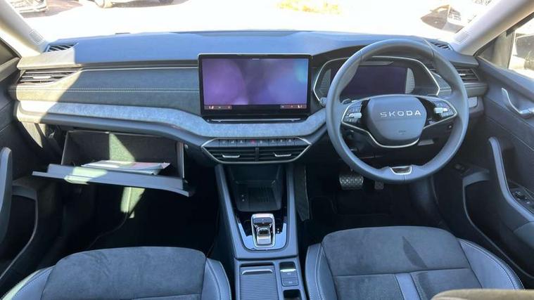 1x USB Typc C port in rear view mirror, 4x USB Type C ports - 2x in front centre console and 2x in rear (45W), Drive mode selection, Driver fatigue sensor, eCall emergency system, Electro-mechanical power steering, Front assist system, Traffic jam assist, Traffic sign recognition, Turn Assist, Virtual Cockpit - 10.25" digital display, Voice control system, Wireless charging (15W) with cooling function, Wireless SmartLink for Apple CarPlay and Android Auto, 13" touchscreen display with navigation, DAB Digital radio, Aero front windscreen wipers with intermittent function, Auto dimming rear view mirror, Body colour bumpers, Body colour door mirrors and handles, Chrome grille surround, Chrome roof rails, Chrome strip in lower front bumper, Chrome window surrounds, Electric front and rear windows, Heated rear windscreen, High level third brake light, Ice scraper in fuel cap, LED daytime running lights, LED Headlights, Logo projection in front doors, Rain and light sensors, Rear fog light on one side, Rear privacy glass, Rear side wing doors, Rear spoiler, Rear window wiper, 12 volt socket in boot, 3 rear headrests, 3 seat bench in 2nd row, 4 foldable roof handles, Front head restraints, Heated front seats, Illuminated glovebox, Interior door handles in dark chrome, Jumbo Box storage, Luggage compartment lighting x2 lights, Mechanical rear seat release from boot, Single front passenger seat, Steering wheel in black leather with black stitching, Storage compartments in left and right of boot, Sun visors with mirrors, Sunglasses storage, Ticket holder, Umbrella in door panel, Unsplit rear bench seat, split folding backrest with centre armrest with cupholder, Comfort package - Octavia Estate, Simply clever package premium - Octavia, 3x3 point rear seat belts, Alarm with interior monitoring, tilt sensor and back up horn, Curtain airbags and front side airbags, Driver and front passenger airbags, Drivers knee airbag, Electronic parking brake, ESC including ABS, EBV, MSR, ASR, EDS, HBA, DSR, Front central airbag, Hill hold assist, ISOFIX on front passenger seat and outer rear seats, Passenger airbag deactivate switch, Three point seat belts in front and rear, Two tone horn, Tyre pressure monitor, Visual and acoustic seat belt reminder, Warning reflectors in front door, Anti-theft wheel bolts, Keyless start/stop, Remote central locking, Chrome air vent surrounds,