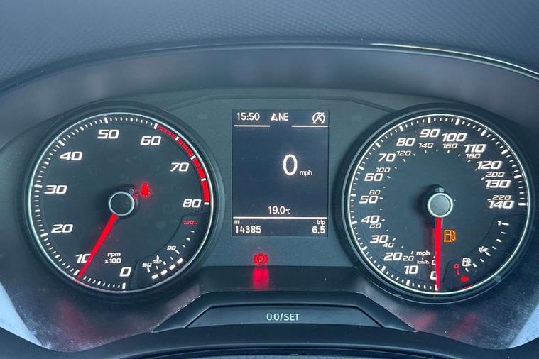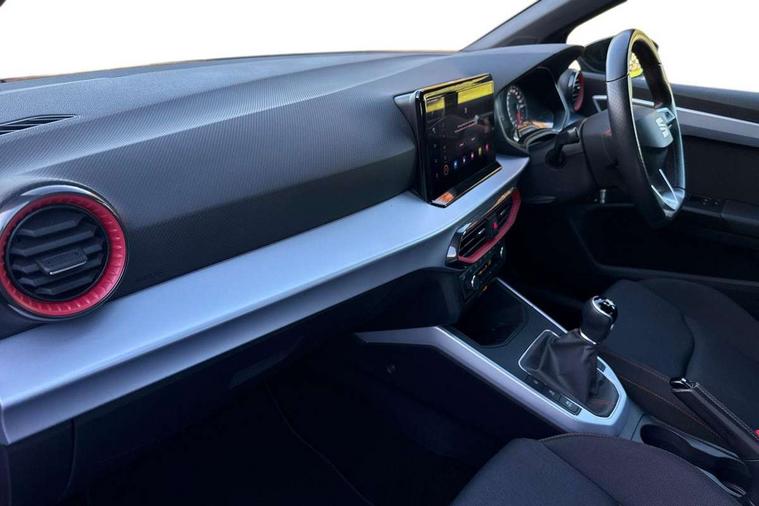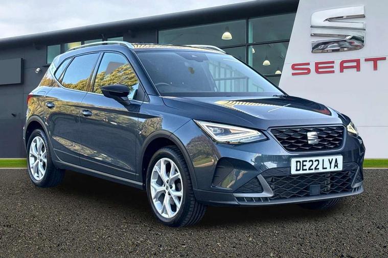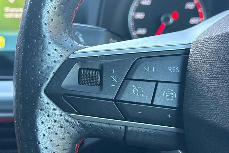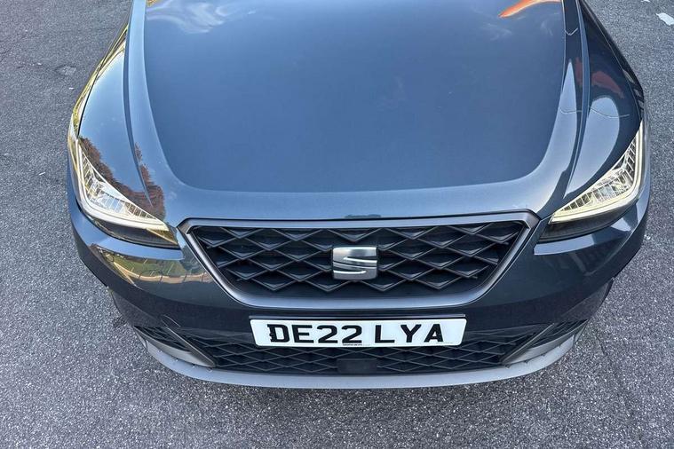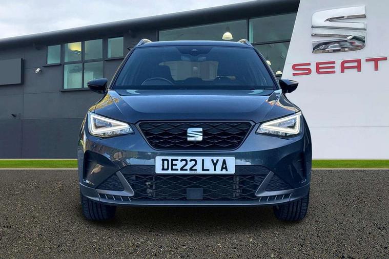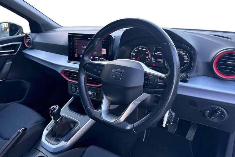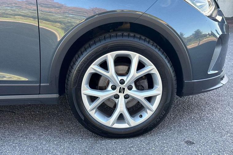 'Lights On' Reminder warning buzzer, 8" Digital cockpit, Digital clock, E-call, Electric speed sensitive power steering, Full Link Smartphone Integration with Mirror Link, Apple Car Play, Google Android Auto with USB Type C cable for Apple and Android compatibility, Lane keeping system, Low fuel warning light, Outside temperature display, Rear parking sensor, RPM counter, Seat connect with safety, service, remote and online, SEAT Drive profile - Four different models normal-sport-eco-individual, steering response, throttle response, Trip computer, Bluetooth interface for hands free and audio streaming, DAB digital radio and AM/FM radio, Steering wheel mounted audio controls, Anti theft roof antenna, Auto dimming interior rear view mirror, Automatic activation of hazard warning lights, Body coloured bumpers, Body coloured door handle inserts, Chrome roof rails and window surrounds, Dark tinted rear windows, Electric front/rear windows, Electrically adjustable, heated and folding door mirrors, Front fog lights with cornering function and rear fog light, FULL LED automatic headlights with dynamic headlight range control, coming and leaving home, LED daytime running lights, LED rear tail lights and licence plate lights, Protective side mouldings, Rain sensing wipers, Rear side wing doors, Rear spoiler, Rear window wash/wipe, Roof colour door mirrors, Third brake light, Twin exhaust pipe styling hidden exhaust pipe, Visible VIN plate, Windshield wiper with intermittent control and potentiometer, 2 cupholders, 3 seat bench in 2nd row, 60/40 split folding rear seat, Aircare filter, Black interior roof, Cloth upholstery, Double boot floor, Driver sunvisor with covered mirror + card holder, Dual zone climate control, Front courtesy light with 2x front and 2x rear reading lights, Front sport seats, Gear shift indicator, Height adjustable front seats, Height/reach adjustable steering column, Illuminated boot, Instrument lighting with brightness control, Interior ambient lighting, Interior light in footwell, central console and door panel, ISOFIX points in outer rear seats with top tether anchorage points, Passenger sunvisor with vanity mirror, Perforated flat bottomed leather steering wheel/gear knob/handbrake with red stitching and FR logo, Single front passenger seat, Two front and three rear height adjustable headrests, Connectivity pack plus - Arona, Interior chrome pack - Arona, 3 point seatbelts on all rear seats, ABS, Active front headrests, Child locks on rear doors, Driver and front passenger airbags with front passenger airbag de activation, front side and curtain airbags, Electronic stability control, Emergency Brake Assist (EBA) and front assist, Front and rear seatbelt reminder, Hill hold control, Multi-Collision braking, Tiredness recognition system, Traction control, Tyre pressure monitoring system, Alarm with back-up horn, Electronic engine immobiliser, Locking wheel bolts, Remote central locking + deadlocks, Tow away protection, Titan black dashboard, 17" Dynamic alloy wheels,