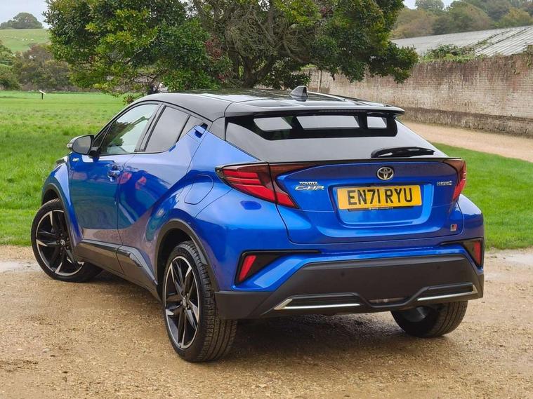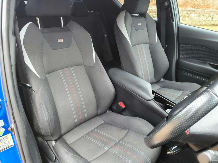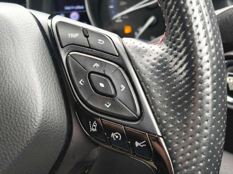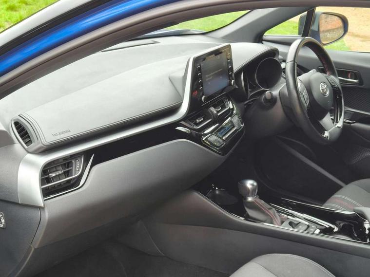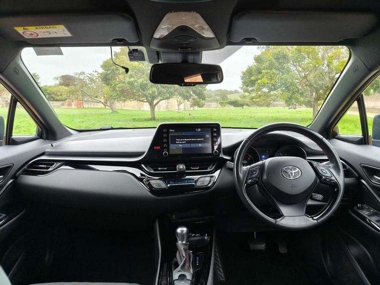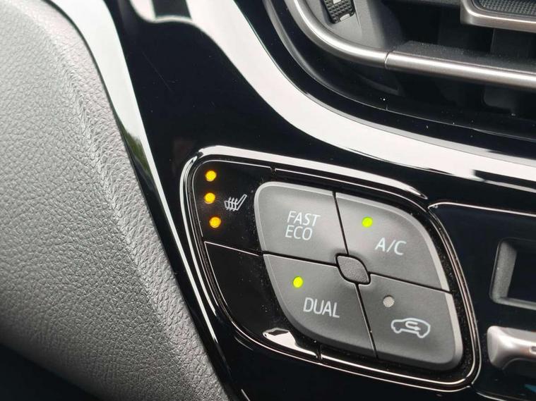 4.2" coloured TFT screen for multi-information display, Adaptive cruise control, Bluetooth connectivity, Electric power steering, Hybrid system indicator, Lane departure alert with steering control, Remote boot door release in cabin, Remote boot door release in key, Reversing camera, Road sign assist - RSA, Simple Intelligent parking assist, Touch 2 Go navigation system, Trip computer, Voice recognition, Vehicle Stability Control (VSC), 6 speakers, AM/FM radio, DAB Radio (Digital Audio Broadcasting), Toyota touch 2 multimedia system with 8" display, USB connector, Wi-fi connectivity, Adaptive front light system, Adaptive LED Headlights, Anti-jam protection on power windows, Auto high beam, Auto up and down function on all power windows, Automatic headlight levelling, Automatic headlights, Automatic headlights cut-off, Black and body coloured rear bumper, Black upper front grille, Body colour door handles, Body colour door mirrors, Body coloured front bumper, Boot door release with push button, Chrome front lower bumper, Electric heated door mirrors, Follow me home headlights, Front and rear power windows, Front spoiler lip in black, Honeycomb lower front grille, LED daytime running lights, LED fog lights, LED front light guide, LED High mounted stop light, LED rear brake lights, LED rear combination lights, Noise reduction layer on front windows and windscreen, Power adjustable door mirrors, Privacy glass, Rear sequential indicators, Rear spoiler, Rear tailgate, Rear window defogger, Rear window wiper, Shark fin antenna, UV-filter on driver and passenger windows, UV-filter on rear windows, 12v power outlet - front, 3 rear headrests, 3 spoke perforated leather steering wheel, 60/40 split folding rear seat, Adjustable rear headrests, Adjustable speed limiter switch on steering wheel, Assist grips front and centre pillar, Audio and telephone switches on steering wheel, Black front door assist grips, Blue ambient lighting on front cup holders, Blue ambient lighting on front doors, Boot light, Chrome interior door handles, Driver and front passenger personal light, Driver and front passenger Whiplash Injury Lessening seats, Driver and passenger seatback pockets, Dual zone automatic air conditioning, Fabric upholstery, Floor mats, Front cupholders, Front head restraints, Front sports seats, Glovebox with internal light, Hard tonneau cover, Heated driver and front passenger seats, Hooks for luggage holding net, Humidifying Nanoe air purifier, Illuminated entry system, Isofix attachments on rear seats, Leather gearshift, Light on driver sun visor, Light on passenger sun visor, Manual telescopic steering wheel, Manual tilt steering wheel, Manually height adjustable driver seat, Manually height adjustable front passenger seat, Manually reclining driver seat, Manually reclining front passenger seat, Manually sliding driver seat, Manually sliding front passenger seat, Microphone on front personal light, Mirror on driver sun visor, Mirror on passenger sun visor, Multimedia switches on steering wheel, Pollen filter, Power adjustable lumbar support on driver seat, Shopping bag hooks, Slow opening on lower glovebox, Voice recognition switch on steering wheel, Tech with parking sensor pack - C-HR, 16 Disk front wheel brake, 3x3 point rear seatbelts, ABS+EBD+Brake assist, Electronic parking brake, Front and rear seatbelt reminder, Front passenger airbag on/off switch, Hill start assist control (HAC), Pre collision system with pedestrian detection, Pre-tensioners and force limiters, Rear door child safety locks, SRS Airbags - Driver + Front passenger, front side, front and rear curtain and driver's knee airbags, Toyota safety sense, Tyre pressure monitoring system, Acoustic vehicle alert system (AVAS), Glass-breaking alarm sensors, Immobiliser, Intrusion alarm, Intrusion sensor, Motion sensor alarm, Power door locks, Power passenger window lock, Remote central locking, Black lower dashboard, Black upper dashboard, Piano black console, Silver deco line on upper dashboard, 19" Black machined alloy wheels, Tyre repair kit,