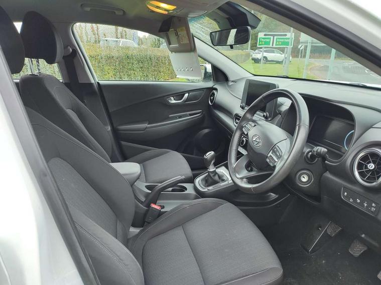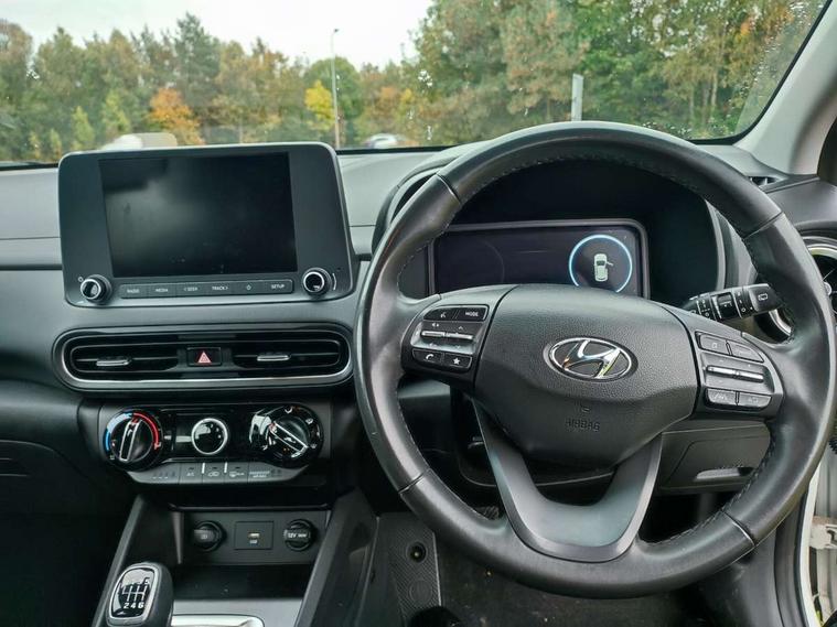 8" Touchscreen display audio + smart device integration, Bluetooth connectivity, Cruise control + speed limiter, Digital clock, Driver attention warning, Driver supervision instrument cluster with 10.25" LCD display, eCall emergency call system, Forward collision avoidance assist with pedestrian detection, Lane follow assist, Lane keep assist, Leading vehicle departure alert (LVDA), Parking system with rear camera and guidance system, PAS, Phone connection with apple carPlay and android auto, Rear parking sensor, Roadside assistance, Windscreen washer fluid sensor and warning indicator, 6 speed intelligent manual transmission, 6 speakers (2 front, 2 tweeters, 2 rear), Front USB ports, RDS and Digital DAB, Steering wheel mounted audio/phone controls, Automatic headlights with dusk sensor, Body colour door mirrors and handles, Door mirror integrated indicators, Electric front/rear windows with drivers one touch/anti-trap, Electrically adjustable and heated door mirrors, Halogen headlights, Halogen rear lights, LED daytime running lights, Positioning Lights - LED, Rain sensor, Rear roof spoiler with integrated LED brake light, Rear side wing doors, Rear wiper, Roof rails, Tinted glass with front door glass and windscreen with shade band, 12V power outlet in front console, 3 seat bench in 2nd row, 60/40 split folding rear seat, Adjustable head restraints, Air conditioning, Centre interior light, Cloth upholstery, Door scuff plate, Driver's seat height adjustment, Driver/passenger sunvisors and illuminated vanity mirrors, Front interior light, Front passenger seat manual adjustments, Height/reach adjustable steering column, Isofix rear child seat fastenings, Leather wrapped steering wheel and gear knob, Luggage compartment lighting, Luggage hooks, Metal paint effect interior door handles, Parcel shelf, Rear centre console with air vents, Single front passenger seat, Sunglasses holder, Vertical adjustment rear head restraints, Trailer wiring package - Kona, Airbags - front, front side and curtain airbags, Anti-lock brake system (ABS), Childproof rear door locks, Downhill brake control, EBD + Brake Assist, Electronic stability control, Fasten seatbelt reminder, Fixed 3 point for second row centre passenger seatbelt, Front seatbelt pretensioners, Height adjustable front seatbelts, Hill start assist control (HAC), Manual parking brake, Passenger airbag deactivate switch, Rear seat alert, Traction control, Tyre pressure monitoring system, Alarm/immobiliser, Deadlocks, Folding key, Locking wheel nuts, Remote central locking, 17" Alloy wheels,