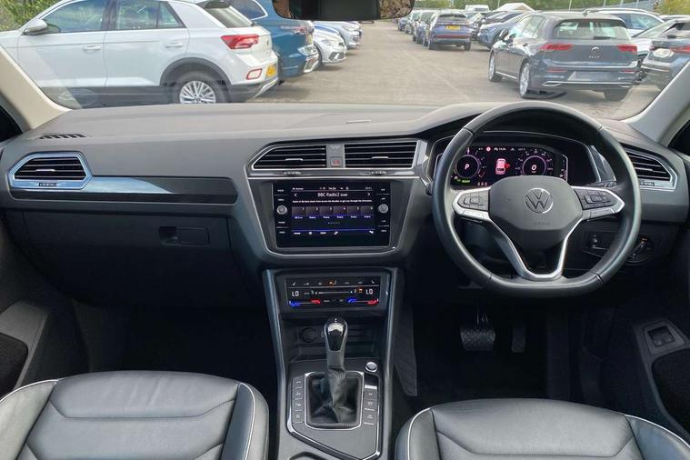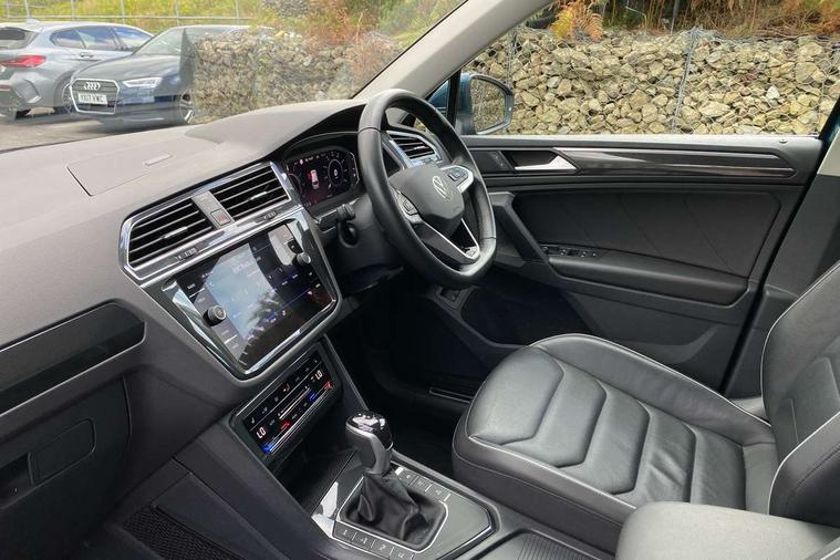 Adaptive cruise control ACC stop and go including speed limiter, App-Connect incl. App-Connect Wireless for Apple CarPlay and Android Auto, Bluetooth phone integration system, Distance control assist, Driver alert system, Driver profile selection, Dynamic road sign display, eCall emergency call system, Electromechanical speed sensitive power steering, Engine start/stop button, Lane keeping system Lane Assist, Lights on warning, Motorised electric tailgate operated via key fob, drivers door and foot movement under tailgate, Multifunction front facing camera, Outside temperature display, Premium multifunction display with multi colour display, Remote control boot opening, Rev counter, Revision / skills operating concept travel assistant, Service interval indicator, Speed limit display, Start/stop system with regenerative braking, Tailgate/trunk lid unlocking from outside, Trip computer, Warning sound and light for doors and tailgate open, Battery regeneration during braking, Charging cable Mode 3 Type 2 / 3 (16A), XDS electronic differential lock for improved traction and handling, 4 X 20 watt output, 8 Speakers, Diversity antenna for FM reception, Radio, SD card slot, Simultaneous pairing of 2 compatible mobile devices, SMS functionality - read, compose and send SMS messages using touch-screen display, Title and cover art display, USB C ports, Aluminium door sill protectors, Auto dimming interior rear view mirror, Automatic headlight control system, Body colour door handles, Body coloured bumpers, Body coloured door mirrors with integrated indicators, Coming/leaving home lighting function, Dynamic headlight range control, Front and rear electric windows, Heated rear window, High level 3rd brake light, IQ light-Adv high beam, Dynamic light assist for LED matrix headlamp+LED separate DRL+DCL, dark red rear LED tech, Poor weather light+ cornering light, Laminated safety glass windshield, heat and sound insulating, LED rear number plate lights, Privacy glass for rear side windows and rear window, Rain sensor windscreen wipers, Rear exhaust tailpipe, Rear fog lamp, Rear side wing doors, Rear windscreen washer and wiper with interval delay, Side and rear windows in heat insulating glass, Tilting and sliding panoramic sunroof with rear panoramic sunroof, Trailer Stability Programme, Windscreen wipers/ intermittent wipe + 4 position delay, 12V outlet in center console rear and in luggage compartment, 12V outlet in front and tray, 2 cup holders in front, 2 LED front reading lights, 2 LED rear reading lights, 3 bench rear seats in 2nd row, 3 rear headrests, 4 load lashing points, 40:20:40 split folding rear seats, Air Care Climatronic 3 zone automatic climate control with enhanced air filter and controls in the rear, Backrest release for left front seat, Climate control unit rear with touch function, Door and side trim panel in foam film and woven fabric, Front centre armrest, Front footwell illumination, Front seats head restraints (x-adjustment), Height adjustable front seats, Height/reach adjust steering wheel, Instrument lighting white adjustable panel illumination, Interior light with delay, Isofix Preparation 2 Rear child seats, Leather gear knob, Lockable cooled glovebox, Luggage compartment lighting, Luggage net, Rear bench seat asymetrically split folding, longitudinally movable and folding with load-through hatch and center armrest, Remote unlocking for rear seat backrest, Removable luggage cover, Removable rear headrests, Safety optimised front head restraints, Single front passenger seat, Sliding/reclining rear seats, Standard rear seat release, Storage compartment in driver's door, Storage compartment in passenger's door, Storage compartment in rear doors, Storage compartments in luggage area left and right, Storage tray on dashboard, Sun visors with illuminated vanity mirrors, Top front comfort seats, Variable boot floor, height adjustable and removable, Easy open and close pack with safelock - Tiguan, Park assist pack - Tiguan, 3 point seat belt for centre rear seats, 3 point seat belts with seat belt pretensioners for the outer rear seats, Active bonnet, Curtain airbags for front and rear passengers, Driver/Front Passenger airbags, Drivers knee airbag, Electronic parking brake with auto hold, Electronic Stability Control with driver steering recommendation, ABS, ASR, EDL, EDTC and trailer stabilization, Front assist with autonomous emergency braking (for Adaptive Cruise Control ACC up to 130 mph), Front disc brakes, Front passenger airbag deactivation, Front side airbags, Height adjustable front 3 point seatbelts + pretensioners, Hill hold control, Manual child proof rear door locks, Pedestrian monitoring system, Power assisted brakes, Proactive passenger protection system in combination with front assist, Rear disc brakes, Rigid safety cell with front and rear crumple zones, Two tone horn, Tyre pressure loss indicator, Warning sound and light for front seat belts if unfastened, Anti theft alarm system with interior monitoring, backup horn and towing protection, Anti theft wheel bolts, Central locking system with safelock radio remote control and 2 remote control folding keys, Electronic engine immobiliser, Tool kit, Tyre mobility kit Includes 12V compressor and tyre sealant,