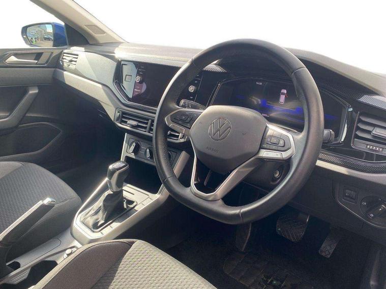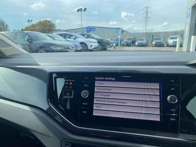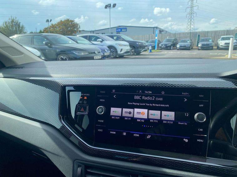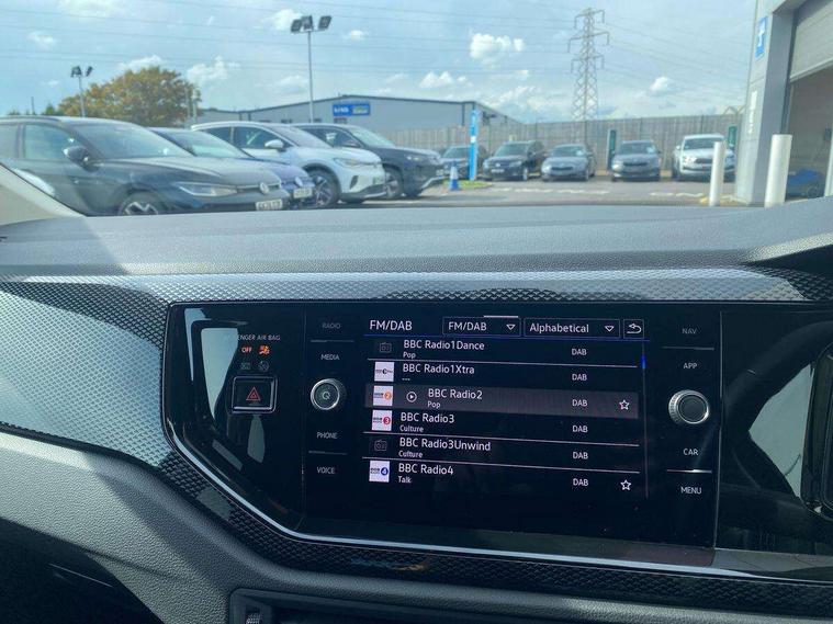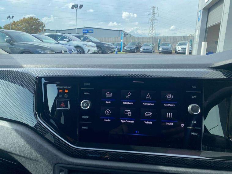 Advanced driver attention and drowsiness monitor, Bluetooth mobile phone interface, Dynamic road sign display, Emergency call service, Multifunction front facing camera for distance control, Park distance control, Power assisted speed sensitive steering, Predictive adaptive cruise control without follow-to-stop and speed limiter, Preparation for navigation system with media and internet package, Preparation for We connect and We connect plus, Rear view camera, Speedo and rev counter, electronic odometer, trip, service interval display and exterior temperature gauge, Standard rear axle, Travel Assist - Lane keeping system and traffic jam assist, Travel assist including emergency assist, Trip computer, Warning signal and warning light for front and rear seatbelts not fastened, Washer fluid level indicator, Wireless app connect, Front wheel drive, Rear shock absorpion, Start-stop system with battery regeneration (recuperation - energy recovery during braking), DAB Digital radio, Diversity antenna for FM reception, Front and rear 6 speakers, Automatic dimming interior rear view mirror, Automatic headlight control with LED separate daytime running lights with coming/leaving home function, Body colour bumpers with chrome inserts, Body colour door handles, Body colour door mirrors, Electric front windows, Engine badge deletion, Headlight range adjustment, Heat insulating and laminated safety glass windshield, LED Headlights, LED rear combination lamps, Power folding adjustable/heated exterior mirrors and front passenger exterior mirror lowering function, Rain sensor, Rear electric windows, Rear fog light, Rear side wing doors, Rear tinted glass from B-pillar backwards approx 65% tinted, Rear windscreen washer and wiper with interval delay, Third brake light, 12V power socket in centre console, 2 front and 2 rear reading lights with switch off delay and dimmer, 2 USB-C ports in the front, 2 USB-C charging sockets on the center console in the rear, 3 rear head restraints, 60/40 split folding rear seat and rear seat bench not split, Ceramique roof lining, Chrome plated radiator grille inserts, air vent surrounds and light switch surrounds, Door and side trim panel, Driver and front passenger seat height adjustment, Driver/passenger sunvisors with illuminated vanity mirrors, Front centre armrest, Front seat backrest storage pockets, Front standard seats, Handbrake lever handle in leather, Hartley/Thomas cloth upholstery, Headliner in recycled material, Isofix child seat preparation easy-fit (for two outer rear seats, and front passenger seat) compatible with I-size, Leather trimmed gear knob, Luggage compartment cover, Luggage compartment lighting, Removable luggage compartment floor, Single front passenger seat, Standard climatic zones, Standard pedal cluster, Three spoke leather wrapped multifunction steering wheel with shifting paddles, Light and vision pack - Polo, 3 point height adj front seatbelts + pretensioners, 3 point seat belt for centre rear seat, 3 point seatbelts, outer rear with ECE lable, ABS, Driver and front passenger airbag with front passenger airbag deactivation, Drivers and front passengers safety optimised head restraints, ESC (Electronic stability control) + EDL (Electronic Differntial lock) and ASR (Traction control), Extended and predictive pedestrian/ cyclist protection, Front assist with autonomous emergency braking (for Adaptive Cruise Control ACC up to 130 mph), Front curtain and side airbags with center airbag, Front disc brakes, Hill hold control, Manual child lock in rear doors, Rear drum brakes, Single tone horn, Tyre pressure loss indicator, Alarm with interior protection, Anti-theft alarm system with interior monitoring, backup horn, and towing protection, Anti-theft wheel bolts, Electronic engine immobiliser, Lava stone black gloss/matt decorative inserts in dash and front door panels, 16" Torsby alloy wheels, Low rolling resistance tyres,