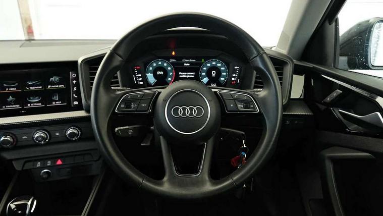 10.25" Digital instrument cluster display classis style instrument dials + speed, odometer, time, outside temperature, telephone menu + fuel level warning, Audi smartphone interface with connect compatible smartphone via USB directly MMI display + Nav, music, third party apps controlled via MMI controller, Automatic start/stop system, Bluetooth interface, Driver's information system, Electromechanical power steering, Emergency e-call, Emergency services call system, Lane departure warning system, Service interval indicator, Speed limiter, Voice control system, Washer fluid level indicator, Dynamic suspension, 1 x SDXC card reader, 2 x USB type C connection points, 6 passive loudspeakers, DAB Digital radio, MMI radio plus with 8.8" colour MMI display screen and MMI touch, Auto dimming rear view mirror, Body coloured bumpers, Body coloured door mirrors, Electric front and rear windows, Electrically adjustable, heated, folding door mirrors with integrated LED side indicator, Front side air inlets with front spoiler lip and rear diffuser in matt black grained, Heat insulating glass windscreen and side windows, Heated rear windscreen, High level LED brake light, LED headlights with LED rear lights + dynamic rear indicators + headlight adjustment and high beam, turning light + LED daytime running lights, Radiator grille in matt black, Rain and light sensors, Rear fog lights, Rear side wing doors, Rear wing door, Rear wiper, 12V socket in centre console with two cup holders, 3 rear seats with headrests, 3 seat bench in 2nd row, 3 spoke leather multifunction plus steering wheel, 40:60 Split folding rear seat or folded fully, Air vents, door handle recesses and centre console in black, Delta cloth upholstery, Driver and passenger seat with manual height adjust with forward and backwards adjustment, Front head restraints, Front passenger seat, Front/rear floor mats, Height and reach adjustable steering wheel, ISOFIX child seat mounting for front passenger and outer rear seats including top tether attachment point of outer rear seats, Leather gear knob with aluminium trim, Leatherette handbrake grip, Luggage compartment light with front and rear reading lights, Manual air conditioning, Titanium grey cloth headlining, Luggage compartment pack - A1, 3x3 point rear seatbelts, Audi pre-sense front with pedestrain and cyclist recognition, Brake assist function, Driver and front passenger airbag with front side and head airbags, Electronic Stability Control including ABS, EBD, ASR and EDL, Front passenger airbag deactivation switch, Hill hold assist, Manual rear child locks, Seatbelt height adjustment for front seats, Seatbelt monitoring, Tyre pressure warning light, Warning triangle and first aid kit, Anti theft alarm, Anti theft wheel bolts and loose wheel warning, Immobiliser, Remote central locking with 2 foldaway keys, Black inlays polygon structure, 15" 5 arm design alloy wheels,