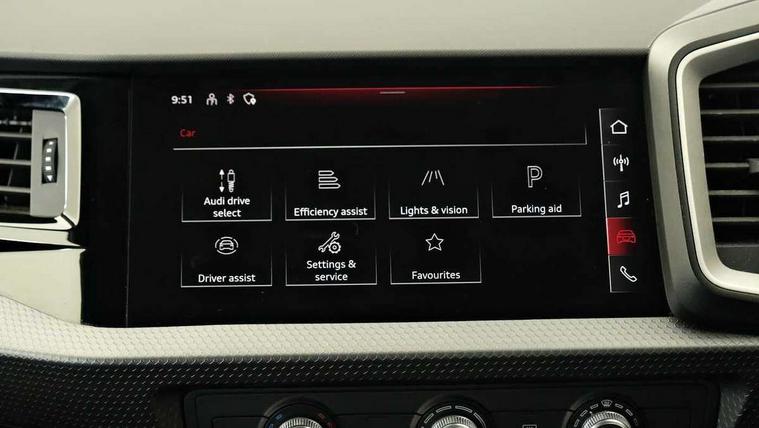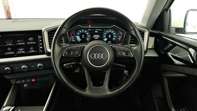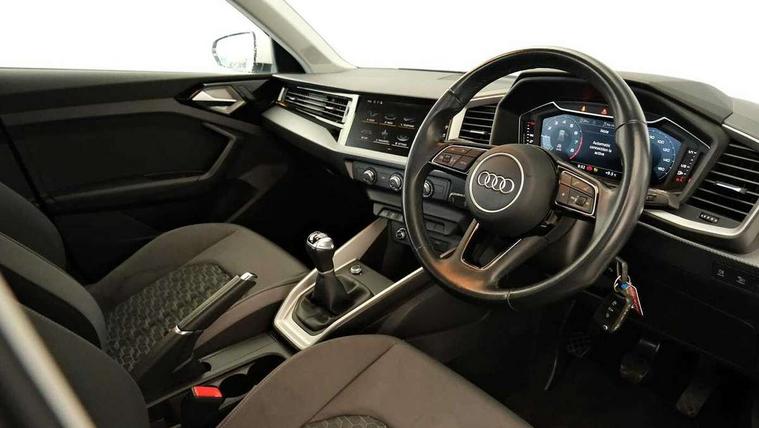 Audi drive select - power steering assistance + engine, Audi smartphone interface, Automatic start/stop system, Cruise control, Driver's information system, Electromechanical power steering, Emergency e-call, Lane departure warning system, Service interval indicator, Speed limiter, Voice control system, Washer fluid level indicator, Dynamic suspension, 2 x USB type C connection points, DAB Digital radio, Auto dimming rear view mirror, Body coloured bumpers, Body coloured door mirrors, Electric front and rear windows, Electrically adjustable, heated, folding door mirrors with integrated LED side indicator, Front side air inlets in grained matt black and C frame in anthracite black, Heat insulating glass windscreen and side windows, Heated rear windscreen, High level LED brake light, LED headlights with LED rear lights + dynamic rear indicators + headlight adjustment and high beam, turning light + LED daytime running lights, Radiator grille and rear diffuser in matt anthracite black, Radiator protective grille frame in matt aluminium silver, Rain and light sensors, Rear fog lights, Rear side wing doors, Rear wiper, Side front spoiler lips in grained matt black, 12V socket in centre console with two cup holders, 3 rear seats with headrests, 3 seat bench in 2nd row, 3 spoke leather multifunction plus steering wheel, 40:60 Split folding rear seat or folded fully, Black front and rear floor mats, Door sill trims with aluminium inlay, Driver and passenger seat with manual height adjust with forward and backwards adjustment, Front head restraints, Front passenger seat, Grey cloth headlining, Height and reach adjustable steering wheel, ISOFIX child seat mounting for front passenger and outer rear seats including top tether attachment point of outer rear seats, Leather gear knob with aluminium trim, Leatherette handbrake grip, Luggage compartment light with front and rear reading lights, Manually adjustable lumbar support in front seats, Novum cloth upholstery with front sport seats, Luggage compartment pack - A1, Technology pro pack - A1, 3x3 point rear seatbelts, Audi pre-sense front with pedestrain and cyclist recognition, Brake assist function, Driver and front passenger airbag with front side and head airbags, Electronic Stability Control including ABS, EBD, ASR and EDL, Front passenger airbag deactivation switch, Hill hold assist, Manual rear child locks, Seatbelt height adjustment for front seats, Seatbelt monitoring, Tyre pressure warning light, Warning triangle and first aid kit, Anti theft alarm, Anti theft wheel bolts and loose wheel warning, Immobiliser, Aluminium trim for control switches, air vents and digital instrument cluster, Black dashboard, Silver grey accent areas including air vents, door handle recesses and centre console in diamond paint finish, Slate grey inlays polygon structure in fine paint finish,