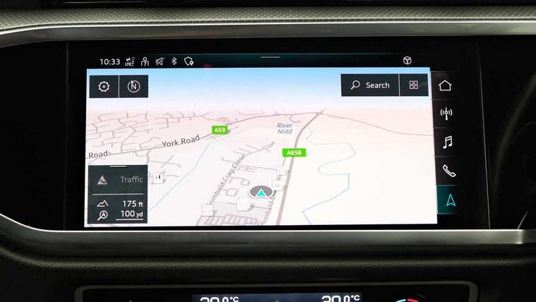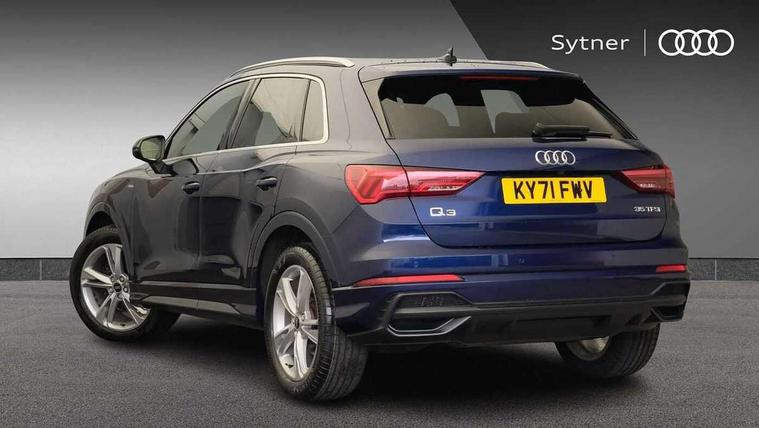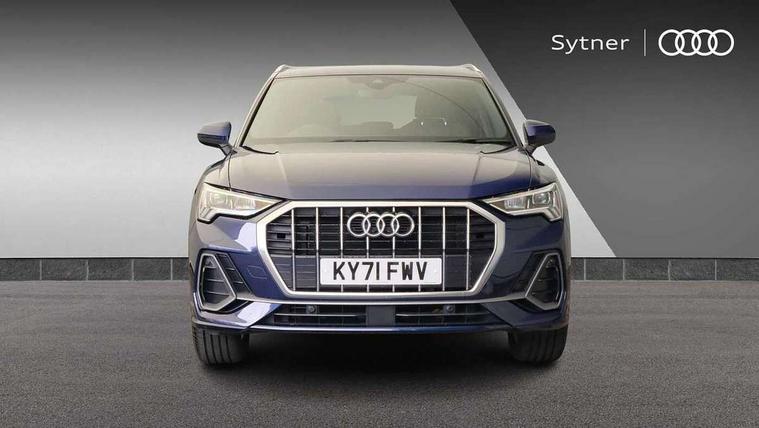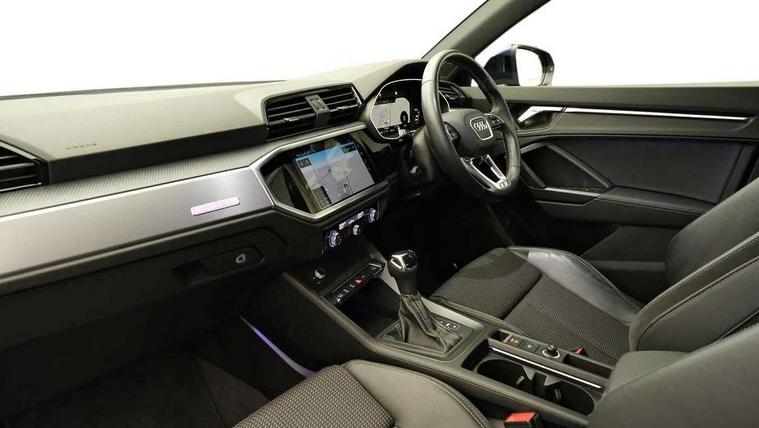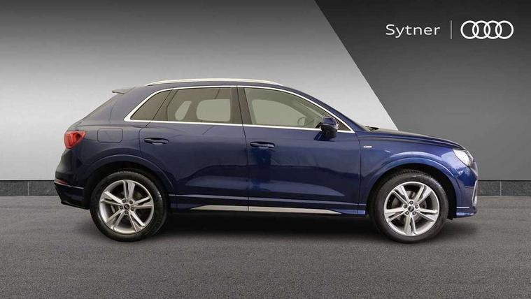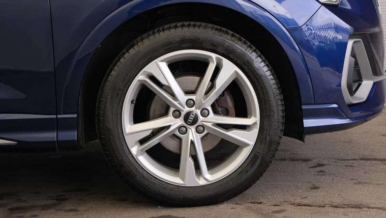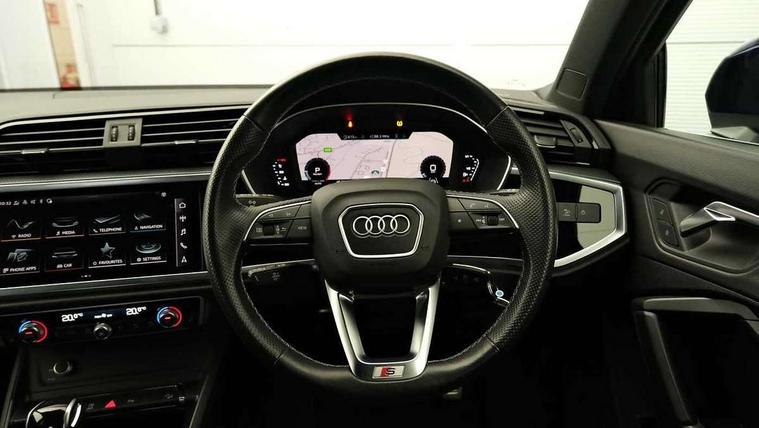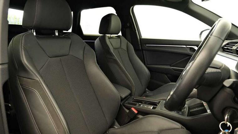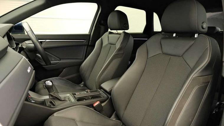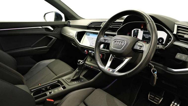 Amazon alexa Integration, Audi connect safety and service (e-call), Audi drive select, Audi lane departure warning, Audi smartphone interface includes wireless Apple carplay/Android Auto, Audi Virtual Cockpit - 10.25" display, Bluetooth interface, Camera based traffic sign recognition, MMI Navigation Plus with high resolution 10.1 inch touchscreen colour display, Power operated tailgate, Progressive steering, Service interval indicator, Start stop system with recuperation, Voice control system with natural language interaction, 48V Mild hybrid technology, Sports suspension, 2 USB-C ports with charge and data functions, 6 passive loudspeakers, DAB digital radio module, Acoustic windscreen, Aluminium roof rails, Aluminium window trim, Auto dimming frameless rear view mirror, Body coloured bumpers, Electrically folding, adjustable and heated door mirrors with integrated LED side indicators and kerb view function for passenger side, Front and rear electric windows, Front fog lights, Front side air inlets in matt platinum grey, Front spoiler blade in matt platinum grey, Grille vertical bars in aluminium silver/Matt, High gloss black finish B and C pillars, LED headlights with LED daytime running lights and dynamic rear indicator, LED rear lights, Privacy glass dark tinted rear and rear-side windows (from B-pillar backwards), Rain and light sensors, Rear diffuser strip in matt titanium black, S line badges on front wings, S Line front and rear bumpers, Side skirt insert in matt Platinium grey, Silver chrome grille surround, Titanium black radiator grille, 12V socket in rear centre console, 40:20:40 folding with manual adjustment for 60:40 forwards/backwards position and backrest angle, Adjustable rear seat bench/backrest with centre armrest and cupholder, Black cloth headlining, Dual zone electronic climate control, Front and rear black floor mats with contrast stitching in rock grey, Front and rear headrests, Front and rear roof module including reading lights, Front centre armrest, Glove compartment lighting, Height and reach adjustable steering wheel, Illuminated door sill trims with S logo, ISOFIX child seat mounting for front passenger with airbag deactivation and outer rear seat including top tether attachment point for outer rear seats, Luggage compartment light, Manual front seats with height adjustment, Perforated leather gearknob, Stainless steel luggage compartment sill finisher, Stainless steel pedals, Tool kit, Non smoking pack - Q3, 3x3 point rear seatbelts, 6 airbags - Driver, front passenger, curtain and side windows, Electrically operated child locks on rear doors, Electromechanical parking brake, Electronic stabilisation control including ABS, ASR and EDL, Hill descent control, Hill hold assist, Pre sense basic, Seatbelt monitoring, Tyre pressure warning, Warning triangle and first aid kit, Anti theft alarm, Anti theft wheel bolts, Audi pre-sense front with pedestrain and cyclist recognition, Remote central locking, Dark matt brushed aluminium inlay, Leatherette door armrest, MMI touch colour display in glass look, black with surround in aluminium look, Tyre repair kit,