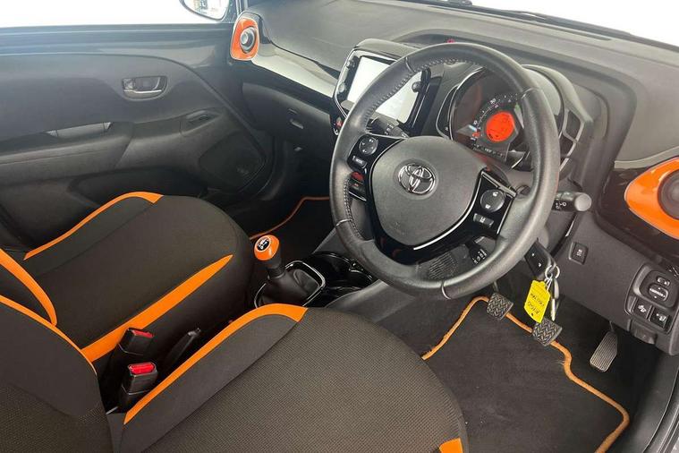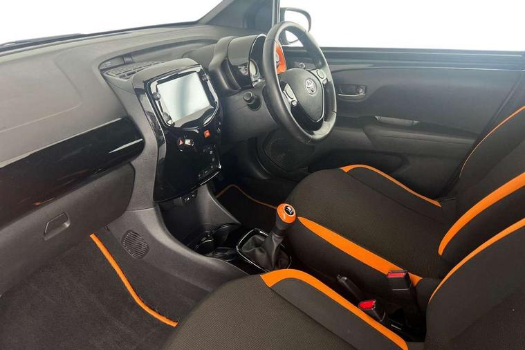 7" touch screen, Bluetooth system, DCM - Data Communication modules, Digital clock, Electric power steering, Fuel indicator with low level warning, Lane departure warning system, Lights on warning, Rear view camera, Smartphone integration powered by pioneer compatible with Apple CarPlay and Android Auto, Speed limiter, Tachometer, Vehicle Stability Control (VSC), Auxiliary input socket, DAB Digital radio, iPod connection, JBL premium sound system with 160mm subwoofer, MP3 connection, Multimedia System, Stereo radio, USB connection, 2 speed wipers/variable intermittent/mist function, Auto headlight levelling, Automatic headlights, Body colour bumpers, Body colour door handles, Carbon rear diffuser, Electric adjustable door mirrors, Electric front windows, Electric headlamp adjustment, Green tinted glass, Heated door mirrors, Heated rear windscreen, LED daytime running lights, LED rear lights, Manually dimming rear view mirror, Metallic Bi-tone paint, Orange door mirrors, Projector headlamps, Rear privacy glass, Rear spoiler, Rear window demister, Rear wiper, Roof mounted aerial, 12V Accessory socket, 3 spoke leather steering wheel, 50/50 split folding rear seat, Air recirculation system, Auto air conditioning, Centre console storage, Chrome insert to gearknob, Chrome interior door handles, Cloth upholstery, Driver and passenger sunvisors, Driver's seat height adjuster, Driver/passenger seat recline/slide adjust, Driver/passenger vanity mirrors with covers, Front and rear door pockets, Front cupholder, Front map reading lights, Glovebox, Height adjustable front head restraints, Isofix system on outer rear seats, Leather gear knob, Pollen filter, Rear cupholders, Rear headrests, Steering wheel mounted radio/phone controls, Stepless tilt adjustable steering column, Storage bins on all doors, Storage pockets in centre console, Tonneau cover, ABS, Collision mitigation braking system, Driver and passenger airbags, Emergency brake assist, ESP, Fasten seatbelt reminder, Force limiting rear seatbelts, Front side airbags, Height adjustable front seatbelts with pre-tensioners and load limiters, Hill start assist, Passenger airbag deactivate switch, Rear child proof door locks, Side curtain airbags, Tyre pressure warning, Engine immobiliser, Lockable fuel cap, Remote central locking, Air vent surround in body colour, 15" 10 spoke black alloy wheels, Tyre repair kit,