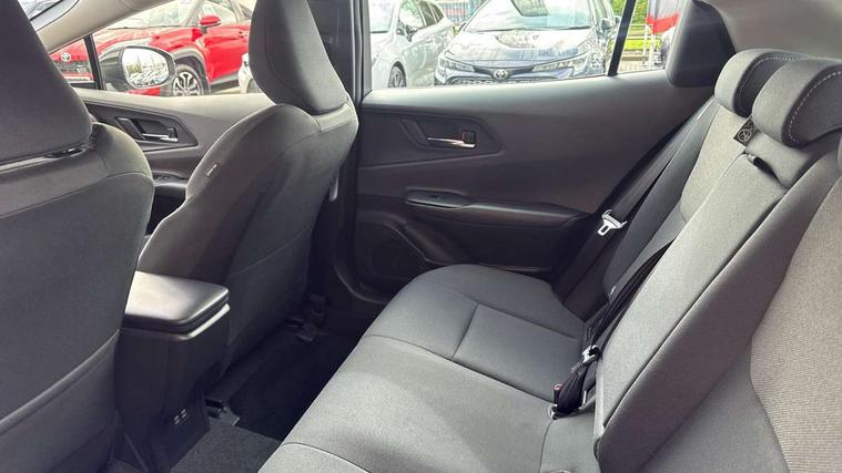 12.3" multimedia display screen, 7" Multi information screen, Acceleration suppression at low speed, Adaptive cruise control [ACC] switch on steering wheel, Blind spot monitor and safe exit assist, Bluetooth connectivity, Digital speedometer, Driver monitoring camera, Dynamic guide lines on reversing camera, eCall emergency call system, Emergency driving stop system, Emergency steering assist with active support and pre collision system, Front Cross Traffic Alert, Hybrid system indicator, Intelligent adaptive cruise control, Intelligent parking sensors front and rear with rear pedestrians, Lane change assist, Lane trace assist, Multi information display switches on steering wheel, MyT connected services, PAS, Pre collision system with intersection detection, Precaution Illumination on dashboard ambient light, Proactive driving assist (PDA), Rear cross traffic alert with brake assist, Remote boot door release in cabin, Reversing camera, Road sign assist - RSA, Safe exit assist, Smart entry and push button start, Smart voice assist, Speed limiter switch on steering wheel, Speed limiter with road sign assist, Telephone switches on steering wheel, Touch 2 Go navigation system, Toyota smart connect multimedia system, Voice recognition, Wireless charger, Wireless Smartphone integration incl Apple CarPlay, 3.3 kW Standard charger, Fast charger 32A Mennekes cable, Vehicle Stability Control (VSC), 2 USB-C connectors front, 2 USB-C connectors rear, 2x USB sockets in front armrest, 6 speakers, DAB Radio (Digital Audio Broadcasting), Road events, Anti-jam protection on power windows, Auto headlights, Auto up and down function on power windows, Auto wipers, Automatic high beam, Automatic rear flashing hazard lights, Black door moulding, Black rear bumper, Black surround on lower front grill, Black wheel arch mouldings, Boot door release with push button, E-switch operated rear door handles, Electric heated door mirrors, Follow me home headlights, Grille shutter, Indicators integrated on door mirrors, Infrared filter on windshield, LED daytime running lights, LED Headlights, LED High mounted stop lamp, LED Indicators, LED rear combination lights, Manual day/night rear view mirror, Manual front door handles, Manual headlight levelling, Noise reduction layer on windscreen, Power adjustable door mirrors, Power retractable door mirrors, Privacy glass for rear window, Rear fog lights, Rear side wing doors, Rear spoiler, Rear window wiper, Rear windscreen defogger, Shark fin antenna, Silver lower front grille, UV-filter on driver and front passenger windows, 12v power outlet - front, 2 cup holders in front, 2nd row rear passenger room LED light, 3 seat bench in 2nd row, 3 spoke premium animal friendly leather steering wheel, 60/40 split folding 2nd row rear seats, Adjustable rear headrests, Ambient lighting on dashboard, Assist grips front, Assist grips rear, Boot 230V power outlet, Boot light, Boot underfloor storage, Charge cable bag, Driver and front passenger personal LED lights, Driver and front passenger Whiplash Injury Lessening seats, Foldable tonneau cover, Front and rear door pockets, Front head restraints, Front passenger seatback pockets, Gear shift indicator, Gloss black insert on centre pillar, Glovebox with light, Heat pump system with humidifier, ISOFIX child restraint system, LED front room light, Luggage floor board with protection mat, Manual telescopic steering wheel, Manual tilt steering wheel, Manually height adjustable driver seat, Manually reclining driver seat, Manually reclining front passenger seat, Manually sliding driver seat, Manually sliding front passenger seat, Microphone on front personal light, Mirror on driver sun visor, Mirror on passenger sun visor, Multimedia switches on steering wheel, Nanoe-X air purifier, Pollen air filter with deodorising odour eliminator, Power adjustable lumbar support on driver seat, Power window switches with satin chrome inserts, PVC gear shift knob, Rear cup holders, Rear headrests, Remote dual zone automatic air conditioning, Satin chrome interior door handles, Single front passenger seat, Soft-touch front door armrests, Soft-touch rear door armrests, Sports fabric upholstery, White ambient lighting in footwell, 3 point seatbelts on all seats, Acoustic vehicle alerting system, Anti lock braking system + Electronic brake force distribution, Child safety door lock, Driver and passenger central airbags, Driver and passenger front airbags, Driver and passenger side airbag, Driver knee airbag, Electronic parking brake, Front to front oncoming car and motorbike daytime detection, Passenger airbag on/off switch, Pre collision system with pedestrian, cyclist and motorbike detection, Pre-tensioners and force limiters, Rear seat reminder alert, Toyota safety sense with over the air updates, Tyre pressure warning system, Driver power door lock, Glass-breaking alarm sensors, Immobiliser, Intrusion alarm, Intrusion sensor, Motion sensor alarm, Remote door lock, Smartphone remote door lock, Smartphone remote hazard lights system, Wheel Nuts, Metallic effect insert on dashboard, Soft-touch front door trim, 17" 5 spoke dark grey aerodynamic alloy wheels with full wheel caps, Tyre repair kit,