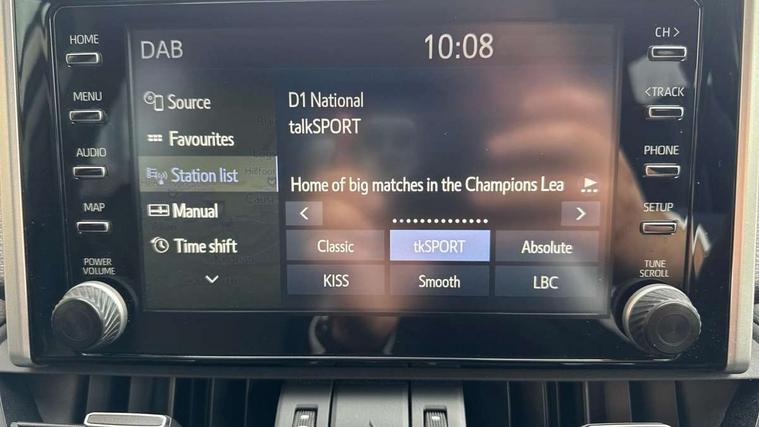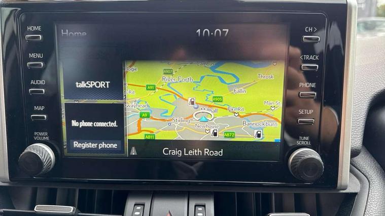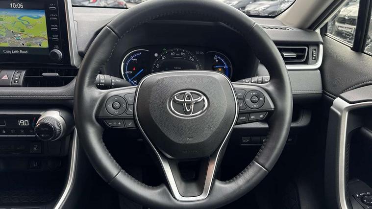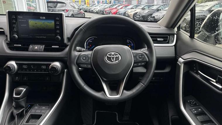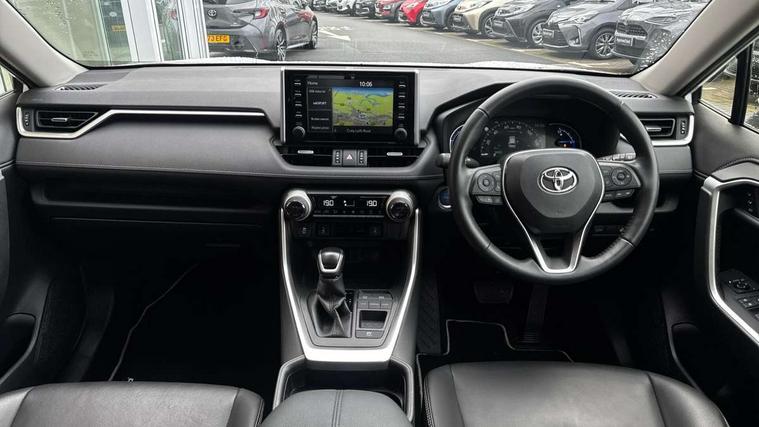 7" colour TFT display, Adaptive cruise control with lane trace assist, Adjustable speed limiter, Apple car play and Android auto, Blind spot monitoring with rear cross traffic alert, Bluetooth system, Cyclist Detection, Drive mode selector, eCall emergency call system, ECO-driving indicator, Electric power steering, EV audible alert, Hybrid system indicator, Lane departure warning system, Lights on warning, Low screen washer fluid warning, Night Time Pedestrian Detection, Pedestrial detection, Power boot opening and closing, Rear parking camera, Rear parking sensors, Remote boot door release in cabin, Tachometer, Touch 2 Go navigation system including 3D maps and voice control, Traffic sign recognition, Trip computer, Voice control system, Vehicle Stability Control (VSC), 6 speakers, 8" Multimedia display touch screen, Auxiliary socket for external MP3 player, DAB audio, Steering wheel mounted audio controls, Toyota touch media system, USB connection, Auto dimming interior mirror, Auto high beam, Automatic headlamp levelling, Automatic headlights, Automatically retractable door mirrors, Black roof rails, Body colour door handles, Body colour door mirrors, Body colour rear spoiler, Body coloured bumpers, Body coloured Shark-fin antenna, Door mirror puddle lights, Electric adjustable door mirrors, Emergency brake-light signal (EBS), Follow me home headlights, Front fog lights, Headlight cleaners, Heated door mirrors, LED daytime running lights, LED High mounted stop lamp, LED rear lights, Meshed upper front grille, Power front windows, Power rear windows, Privacy glass, Projector LED headlights, Rear screen wiper - intermittent, Rear windscreen defogger, Silver front under-run, Silver rear under-run, Trailer sway control, Turning signal integrated indicators in door mirrors, Windscreen wiper de-icer, 3 rear headrests, 60/40 split fold rear seat back, Boot light, Clean air filter, Driver and front passenger personal light, Driver and front passenger Whiplash Injury Lessening seats, Driver and passenger sunvisors with illuminated vanity mirrors, Driver seat memory function, Dual sided deck board in boot, Dual zone automatic air conditioning, Floor mats, Folding rear centre armrest, Front and rear bottle holders, Front centre armrest, Front footwell lights, Front headrests, Front seat and rear pockets, Front/rear roof mounted assist grips, Grey roof lining, Heated driver and front passenger seats, Heated steering wheel, Isofix child seat preparation, Leather gear shift with chrome surround, Leather upholstery, Light blue ambient lighting on front cupholders and open tray, Manual telescopic and tilt 3-spoke leather steering wheel with Chrome insert, Manually reclining and sliding front passenger seat, Pollen filter, Power height-adjustable sliding reclining and lumbar support for driver seat, Rear coat hooks, Rear door armrests, Rear passenger air vents, Reclining rear seats, Satin chrome interior door handles, Sunglasses holder, 3x3 point rear seatbelts, ABS/EBD, Adjustable front driver and passenger seat belt extender, Brake assist function, Child proof door locks, Collision mitigation braking system, Driver/Front Passenger airbags, Driver/front passenger side airbags, Drivers knee airbag, Electronic parking brake, Electronic Stability Programme (ESP), Emergency brake light system (EBS), Front and rear curtain airbags, Front and rear seatbelt reminder, Hill start assist, Passenger airbag cut-off device, Seatbelt pretensioners with load limiters, Traction control, Tyre pressure warning, Alarm/immobiliser, Glass-breaking alarm sensors, Light - on and Key in reminder, Remote central locking, Smart entry + Smart start, Speed sensitive auto door locking, Tilt detection sensors, Piano black centre console with silver insert, Soft-touch black lower dashboard, Soft-touch black upper dashboard with silver insert, Full size spare wheel,
