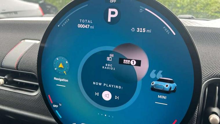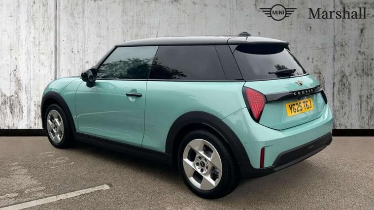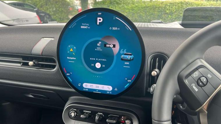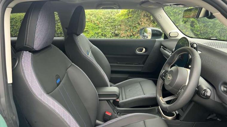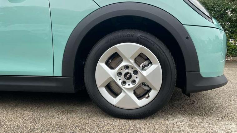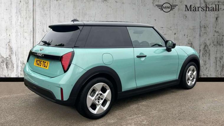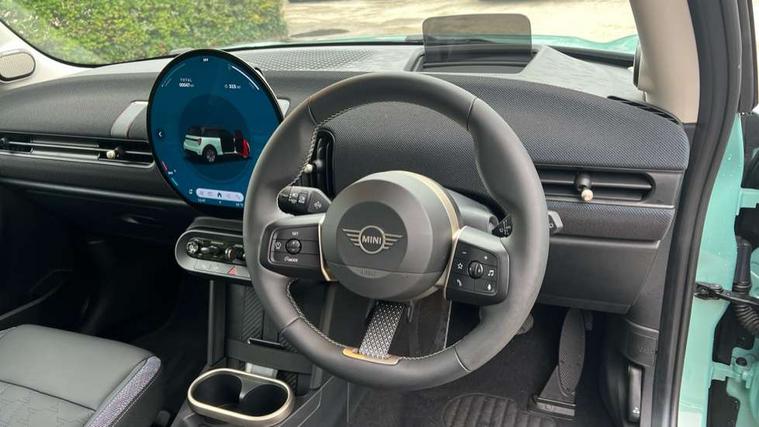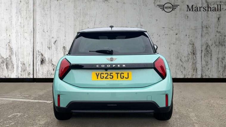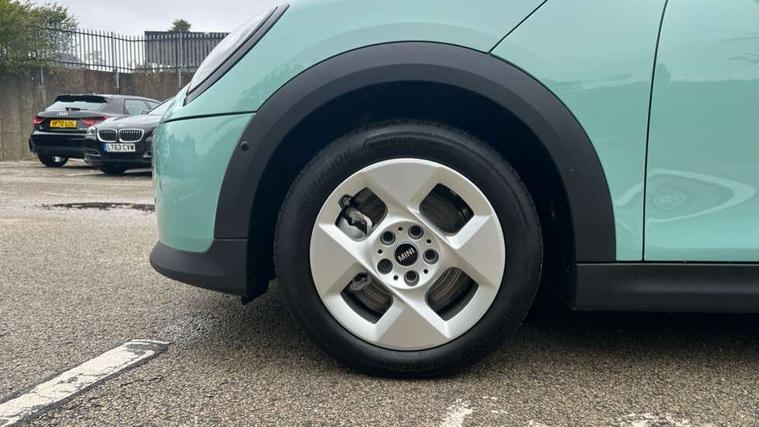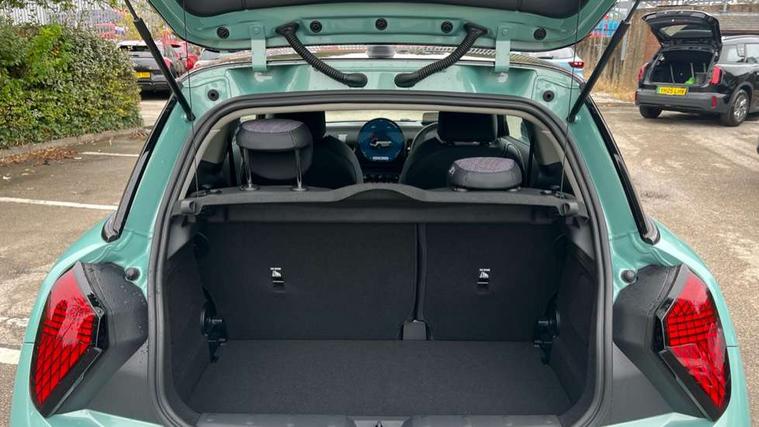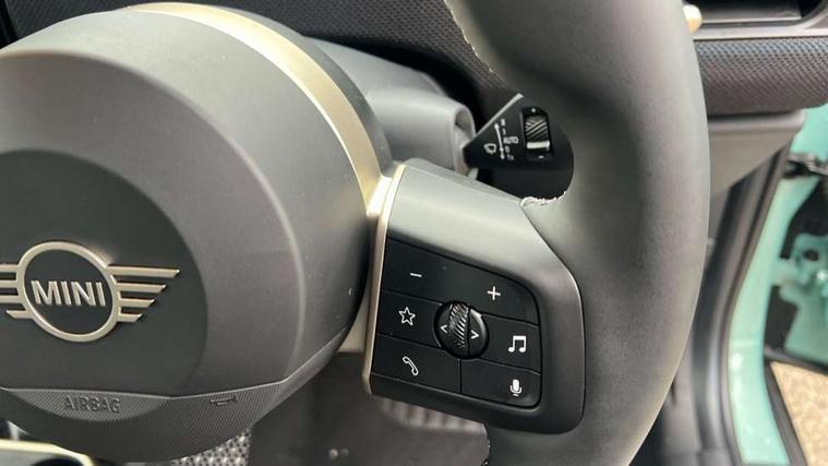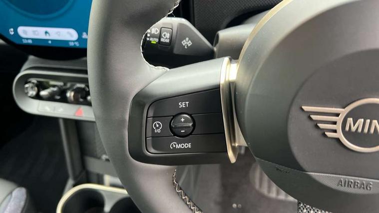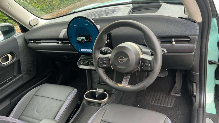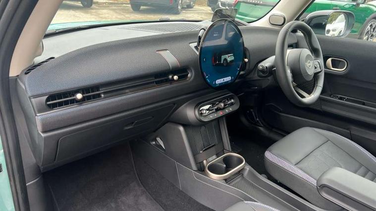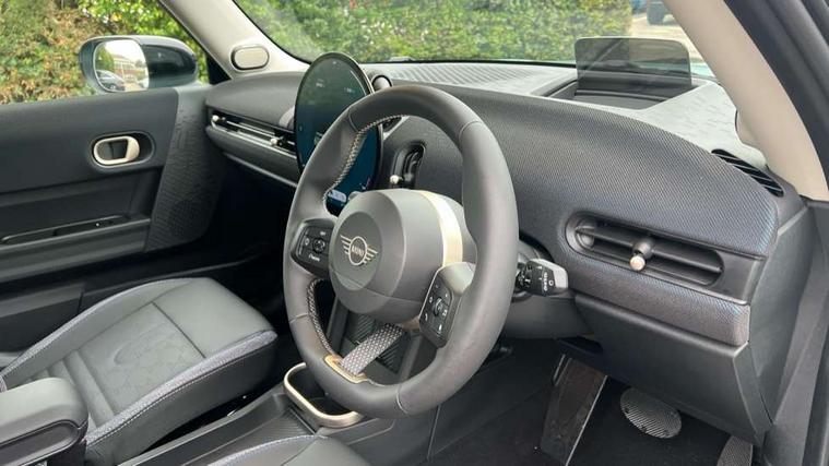Central toggle bar, Circular OLED Screen, Compatible mobile phone bluetooth with audio streaming, Cruise control, Digital instrument cluster, Electro-mechanical speed dependant steering assistance, Emergency call service, MINI Experience Modes, Mini navigation system, On board computer, Service interval indicator, Tailgate, 7 speed steptronic transmission with double clutch, DAB Digital radio, Personal eSim, Auto headlights, Black grille surround, Electric adjustable heated door mirrors, Electric front windows, Heated rear window, Heated windscreen washer jets, LED 3rd brake light, LED daytime running lights, LED Headlights, LED indicator lights, LED rear lights, Rain sensor window wipers, Rear fog lights, Rear window wiper, 2 seat bench in second row, 2 zone automatic air conditioning, 60/40 rear seat bench, Ambient lighting, Cupholders, Front and rear head restraints, Front compact armrest, Front floor mats, Heated steering wheel, Height adjustable passenger seat, Light headliner, Luggage compartment lighting, Single front passenger seat, Sport Vescin Steering Wheel black with vibrant silver accents, Sunvisors with vanity mirrors, Vescin/Cloth upholstery includes dash knit in black with blue accents, Driving assistant pack - Cooper Hatchback, Park assistant pack - Cooper Hatchback, 3 point seatbelts on all four seats, 6 Airbags - front, side, head and seat belt tensioners, Anti-lock braking system (ABS), DSC - Dynamic Stability Control, Electronic parking brake, Front and rear disc brakes, Front ISOFIX (iSize), Front passenger airbag deactivation, Traction control, Tyre pressure monitoring system, Alarm, Immobiliser, Remote central locking, Tyre repair kit,