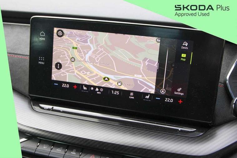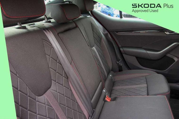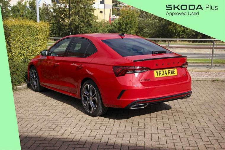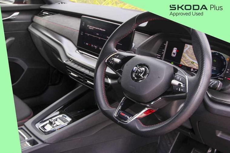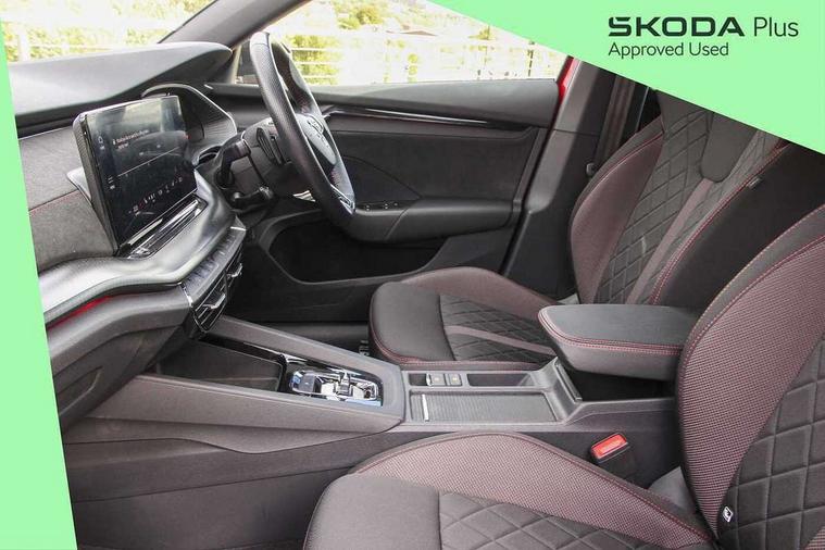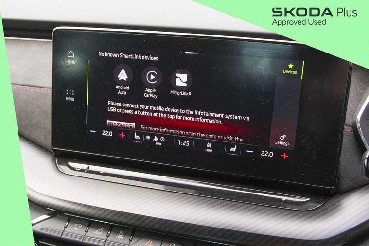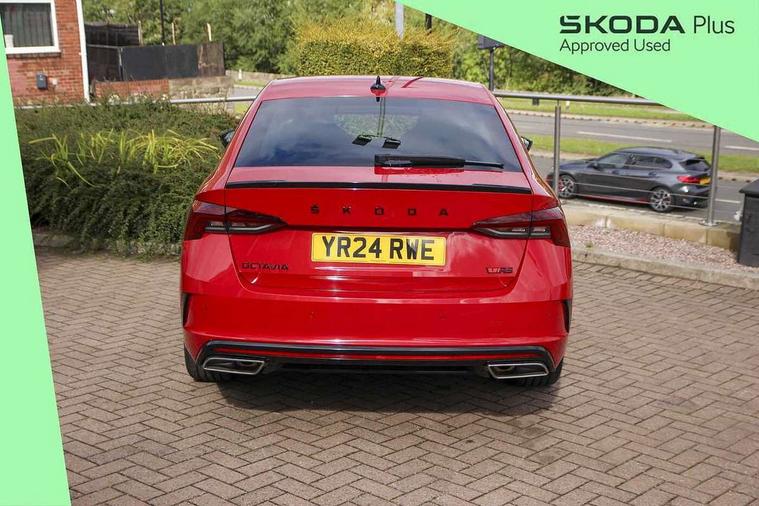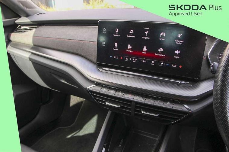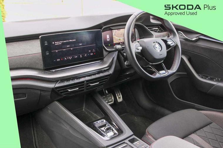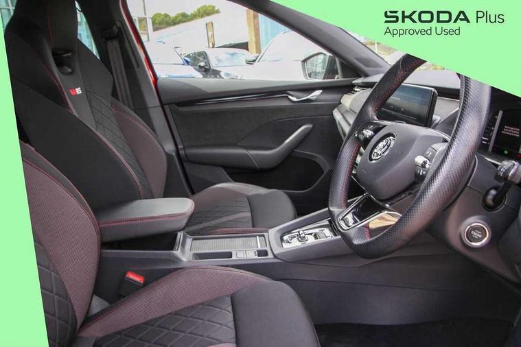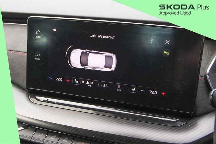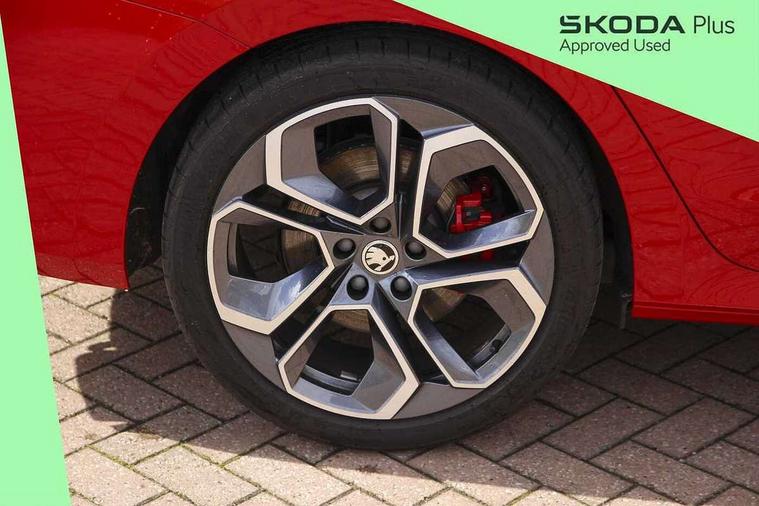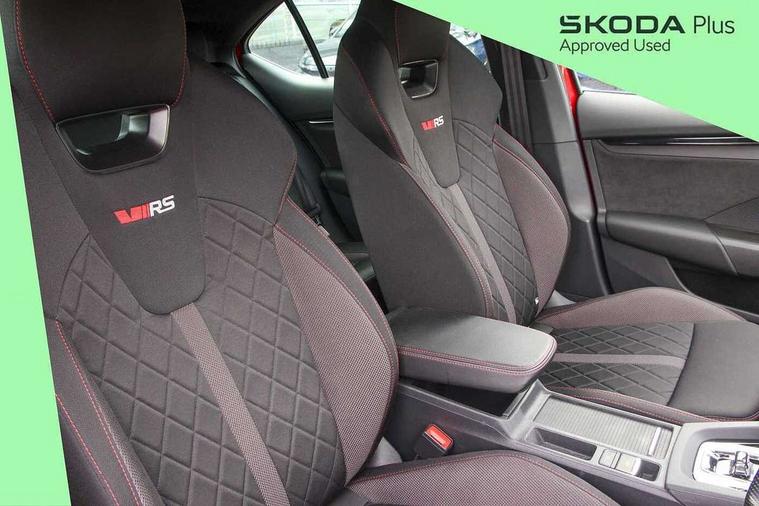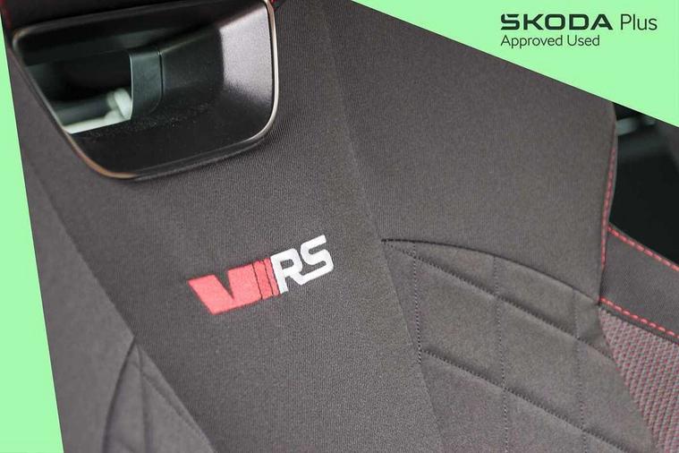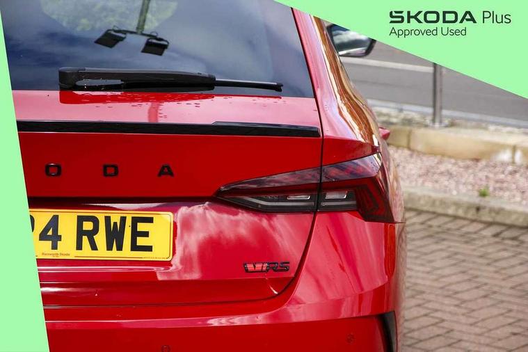 1x USB Type C port in rear view mirror (charging only), 2x USB Type C ports in rear of front centre armrest (charging only), Bluetooth system, Columbus satellite navigation with 10" touchscreen display, Driver fatigue sensor, eCall emergency system, Front and rear parking sensors with manoeuvre assist, Front assist system, Progressive dynamic steering, Speed limiter, Turn Assist, Virtual Cockpit - 10.25" digital display, Virtual pedal with electrically operated boot door (Rear LED lights (high functionality), dynamic indicators, Voice control system, Wireless SmartLink for Apple Car Play, Electronically controlled limited slip differential, Front and rear stabilizers, 2x USB Type C ports (for charging and data transfer), 8 Speakers, DAB Digital radio, Aero front windscreen wipers with intermittent function, Auto dimming rear view mirror, Body colour door handles, Chrome exhaust tailpipes, Door sills with vRS logo, Electric front and rear windows, Exterior gloss black sports styling including front grille, side strip, window surrounds, door mirror and badging, Full LED Matrix headlights with AFS, rear LED lights (high functionality) and dynamic indicators and cornering front fog lights, Headlight washers, Heated rear windscreen, High level third brake light, Ice scraper in fuel cap, LED daytime running lights, Rain and light sensors, Rear fog light on one side, Rear privacy glass, Rear side wing doors, vRS bumpers and lip spoiler, 3 rear headrests, 3 seat bench in 2nd row, 4 foldable roof handles, Aluminium pedals, Black headlining, Black microsuede padded dash panel with red contrast stitching, Chrome inner door handles, Front centre armrest, Front head restraints, Heated front seats, Illuminated glovebox, Leather trimmed gearshift lever, Luggage compartment lighting x1 light, Mechanical rear seat release, Parcel shelf - folding, Single front passenger seat, Sunglasses storage, Textile floor mat set, Three spoke leather sports multifunction steering wheel with paddles, Ticket holder, Umbrella in door panel, Unsplit rear bench seat and split folding backrest, LED interior light pack - Octavia, 3 point front/outer rear seatbelts+pre-tensioners, Alarm with interior monitoring, tilt sensor and back up horn, Automatic door unlocking in case of crash, Automatic fuel cut off in case of crash, Automatic warning lights in case of emergency braking, Curtain airbags and front side airbags, Driver and front passenger airbags, Drivers knee airbag, Electronic parking brake, ESC including ABS, EBV, MSR, ASR, EDS, HBA, DSR, Front and rear disc brakes, Front central airbag, Hill hold control, Hill start assist, ISOFIX on front passenger seat and outer rear seats, Manual rear child locks, Passenger airbag deactivate switch, Pro active services, Red brake calipers, Two tone horn, Tyre pressure monitor, Visual and acoustic seat belt reminder, Warning reflectors in front door, Door locks with immobiliser, Keyless entry and start/stop including rear doors, Remote central locking, Carbon optic decorative inserts, Gloss black air vent surrounds, 19" Altair anthracite alloy wheels,