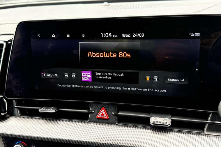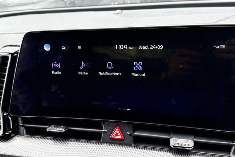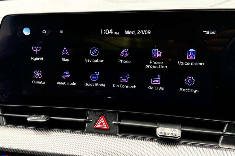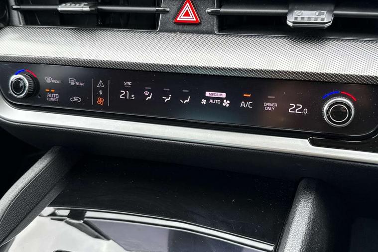 12.3" Display with navigation, 12.3" supervision colour cluster display, 360 degree around view monitor, Apple car play/Android Auto with voice control, Blind spot collision avoidance assist, Blind spot view monitor, Drive mode selector, E-call, Forward collision avoidance assist (FCA) - city/pedestrian/cyclist/junction covering, Front and rear parking sensors, Highway Driving Assist (HDA), Intelligent speed limit assist, Kia Connect (UVO), Lane Following Assist (LFA), Lane keep assist, Low washer fluid warning, Parking collision avoidance assist (PCA), Remote smart parking assist, Reversing camera system integrated into centre fascia screen, Smart cruise control with stop and go functionality, Smart power tailgate, Speed sensitive power steering, Trip computer, Windscreen washer level indicator, Wireless Smartphone charger, Intelligent Stop and Go, Bluetooth audio streaming, DAB Radio with MP3, Harman Kardon premium sound system, Rear USB port, Steering wheel mounted audio controls, USB C type charging ports on centre console, USB C type charging ports on side of front seats, USB port for connection of a media device, All round electric windows with drivers and front passenger auto up/down function, Automatic headlight control system, Automatic window defogger, Backlite glass heated with timer, Body colour and black bumper with silver accents, Body colour exterior door handles, Body colour radiator upper garnish and door garnish, Dual LED adaptive headlamps, Electric panoramic glass sunroof (Electric one touch with safety function), Electrically adjustable/heated/folding door mirrors with LED indicators, Front and rear chrome skid plates, Gloss black door mirrors, Gloss black radiator grille, Gloss black side sill and wheel arch body mouldings, Glossy black roof rack, High beam assist, Interior electrochromic mirror, LED daytime running lights, LED front fog lamps, LED High mounted stop light, LED rear combination lamp, Rain sensing wipers with aero blades, Rear fog lamp, Rear privacy glass, Rear side wing doors, Rear spoiler, Rear wiper, Satin finished beltline, Silver coloured inserts to bumpers, Tinted rear glass, Trailer stability assist, 10 way driver/8 way passenger electrically power adjustable seats, 12V power socket in front centre fascia and luggage compartment, 3 seat bench in 2nd row, 3 x passenger assist grips, 40/20/40 split folding rear seat, All-round height adjustable headrests, Ambient lighting, Black headlining, Centre console storage box, Cupholders in rear armrest, D-Shaped sports leather steering wheel and perforated inserts with GT-Line logo, Door courtesy lamps, Drink holder at centre armrest, Driver and front passenger side sunvisors with illuminated vanity mirrors, Driver seat memory function, Drivers seat power lumbar support, Front and rear door storage, Front seat and rear pockets, Front/rear centre armrests, Gear shift indicator, Glovebox illumination, Heated front and outer rear seats, Heated steering wheel, Interior door lock/unlock function, ISOFIX Child seat top tethers and anchor fixings outer rear seats, LED interior personal lamp, LED lighting in overhead console, Luggage area LED light, Luggage area load cover, Luggage net with hooks, Metal paint interior door handles, Paddle shift controls, Rear cabin light, Rear coat hooks, Single front passenger seat, Sports pedals, Suede leather upholstery, Three zone climate control, Tilt/telescopic adjustable steering wheel, Ventilated front seats, Ventilation ducts to rear compartment, Active front headrests, All round 3-point seatbelts, Anti-lock braking system (ABS), Dual front side airbags, Dual horn, Electronic parking brake, Electronic stability control with downhill brake control, Front passenger airbag cut-off switch, Front seatbelt pretensioners + load limiters, Height adjustable front seatbelts, Hill start assist control (HAC), Impact sensing auto door unlocking, Multi collision brake assist, Rear door child safety locks, Rear seat alert system, Traction control, Twin curtain airbags, Twin front airbags, Tyre pressure monitoring system, Advanced anti-theft system including immobiliser and alarm, Door deadlocks, Engine Start/Stop Button with Smart Entry System, Locking wheel nuts, Speed sensitive auto door locking, Visible vehicle identification number, Aluminium pattern finish centre fascia and door garnish, 18" GT-Line alloy wheels, Michelin tyres, Tyre mobility kit,