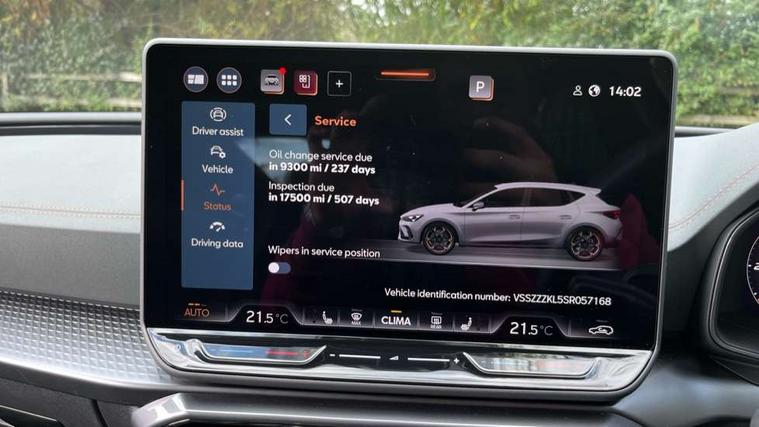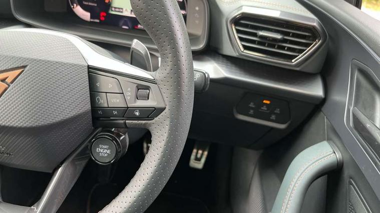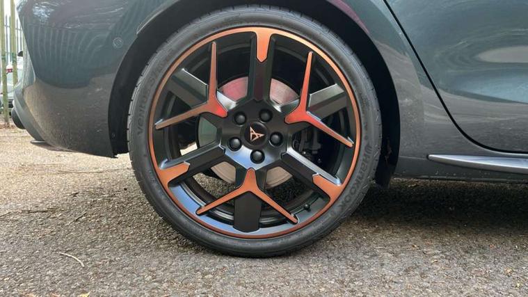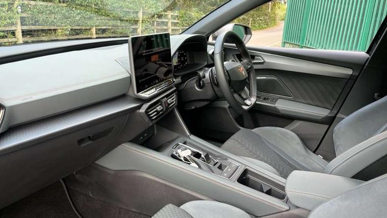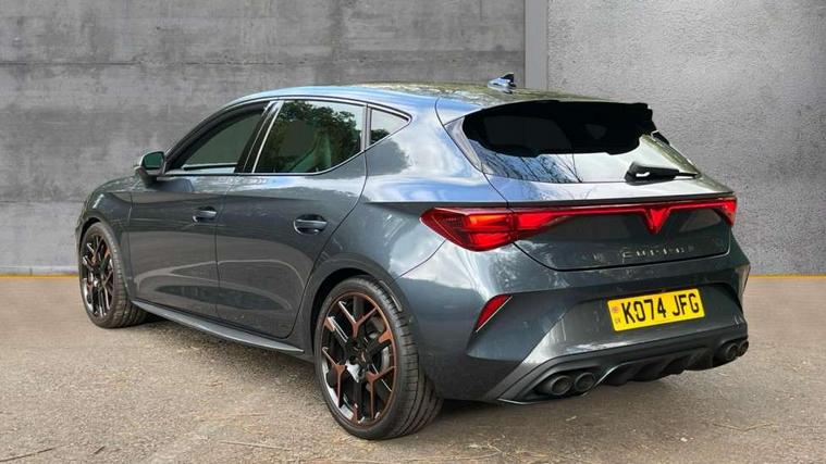 Adaptive cruise control with follow-to-stop and speed limiter, CUPRA drive profile selection with (Comfort/Sport/Individual), throttle response and gearshift mode, Digital cockpit, Dynamic road sign display, E-call, Four x USB Type C ports (2 in front and 2 in rear), Front and rear parking sensors, Front assist with forward collision warning braking reaction to vehicles, pedestrians and cyclists, Full link smartphone integration with Mirror Link, wireless Apple CarPlay and wired Google Android Auto, Intelligent park assist, Lane change assist with emergency assist, Lockable tailgate, Rear view camera, RPM, trip computer, outside temp gauge, instrument light brightness, low fuel warning light, lights on reminder, gearshift indicator, Service interval indicator, Side and exit assist, Start/stop system with regenerative braking, Wireless phone charger, Auxiliary input socket, Immersive by Sennheiser TM - 10 speakers, 1 central speaker, 1 subwoofer, Auto dimming rear view mirror, Body colour door handles, Body coloured bumpers, Cupra sports bumpers, Dark tinted rear windows, Electric front/rear windows, Electrically adjustable, heated and folding door mirrors, High beam assist, LED front fog lamps with cornering function, LED rear fog lamp, Matrix LED Headlights with variable light distribution, Matrix Beam and Dynamic headlight range control, Rain sensing wipers, Rear side wing doors, Rear wash/wipe, Separate daytime running light with automatic headlight control and coming home feature, Third brake light, Welcome light with logo projector in door mirrors, 12v power supply in centre console, 3 seat bench in 2nd row, 5 headrests, 60/40 split rear bench seat with armrest, Ambient lighting (glovebox, footwell, ambient lighting multicoloured), Black headlining, Cupra sports pedals, CUPRA Supersports, heated steering wheel with satellite buttons, Electrically adjustable driver seat and lumbar support with memory function + manually adjustable passenger seat, Folding boot cover, Front and rear reading lights X 4, Front centre armrest, Heated front seats, Height/reach adjust steering wheel, Illuminated interior front door sills, Interior wraparound lighting, ISOFIX points in outer rear seats with top tether anchorage points, Single front passenger seat, Sunvisors with illuminated mirror, Textile cloth upholstery, Three zone climate control, Dynamic and comfort pack - Leon Cupra, Media system plus with 12.9" display + navigation pack - Leon Cupra, 3 point seatbelts on all rear seats, ABS, Akebono performance brake calipers, Brake control system - ESC and brake booster, Child proof door locks, Driver and front passenger airbags with front passenger airbag de-activation, front side and curtain airbags, Electronic parking brake, Hill hold control, Pre-crash front and rear seat belt tensioner, window closure and hazard lights, Rear disc brakes, Seat belt reminder for front and rear seats, Tiredness recognition system, Tyre pressure monitoring system, Anti theft alarm system with interior monitoring in cab, backup horn and towing protection, KESSY Advanced - Keyless start, keyless entry, Locking wheel bolts, Chrome and copper interior detailing, 19" Hailstorm forged machined R black and copper alloy wheel with 91Y tyres, Breakdown kit, Tool kit,