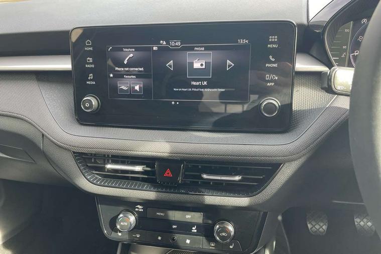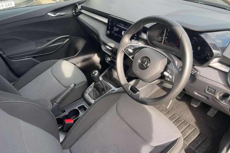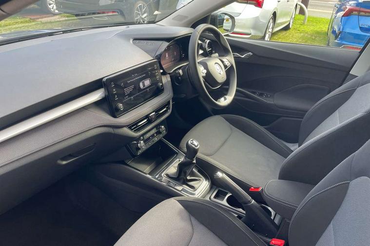 Advanced driver attention and drowsiness monitor, Bluetooth connection, Electromechanical power steering, Exterior temperature gauge, Service interval indicator, Traffic sign recognition, Virtual cockpit with 10.25" colour display, Wireless SmartLink for Apple CarPlay and Android Auto, 6 Speakers (4 in front and 2 in rear), Auxiliary socket for external MP3 player, DAB digital radio reception, Body coloured bumpers, Dimming rear view mirror with black frame, Door mirror integrated indicators, Front and rear electric windows, Front window wiper intermittent control, Headlight range control - Automatic, Ice scraper in fuel cap, LED daytime running lights with coming and leaving home feature, LED rear lights, Privacy glass, Rear LED fog light, Rear side wing doors, Rear window wiper with washing nozzles, Roof mounted spoiler, SKODA tailgate lettering in chrome, Third brake light, 2 reading lights in front and 2 reading lights in rear, 3 rear headrests, Backrest split and folding, Central console with removable cup holder and storage box, Chrome handbrake release button, Fabric upholstery, Front centre armrest, Gearshift knob/handle in leather, Grain satin black interior door handles, Hand brake lever handle in leather, Height adjustable front headrests, Height adjustable steering wheel, ISOFIX and TopTether anchorage points to the outer rear seats, ISOFIX and TopTether on the front passenger seat, Luggage compartment lighting, Manually adjustable lumbar support in front seats, Pollen filter, Rear seat bench unsplit, Single front passenger seat, Storm grey headlining, Sun visors with mirror and airbag label on passenger side, Textile floor mats, Ticket holder, Umbrella in drivers door, 3-point height adjustable front seats belts with pretensioner and force limiter, Automatic warning lights in case of crash, Driver and passengers airbag with switch off function, e-Call+, ESC including ABS, MSR, ASR, EDS, HBA and XDS, Front and rear seat belt warning, FRONT ASSIST (AEB City and AEB Inter Urban), Front side airbags, Head airbags, Hill hold control, One tone horn, Pedestrian protection, Three rear 3-points safety seat belts with pretensioner and force limiter including stop function for outer rear seat belts, Tyre pressure monitoring system, Anti-theft alarm system including immobiliser, interior monitoring, backup horn, and towing protection, Central locking with radio remote control, interior controls, SAFE function and 2 foldable keys, Colour Edition air vents, Grain satin black central console cover, Metallic grey upper decorative trim, Satin black door and side trim panel in front, Textile Kota grey lower decorative inserts, Anti-theft wheel bolts protection, Super-low rolling resistance tyres,