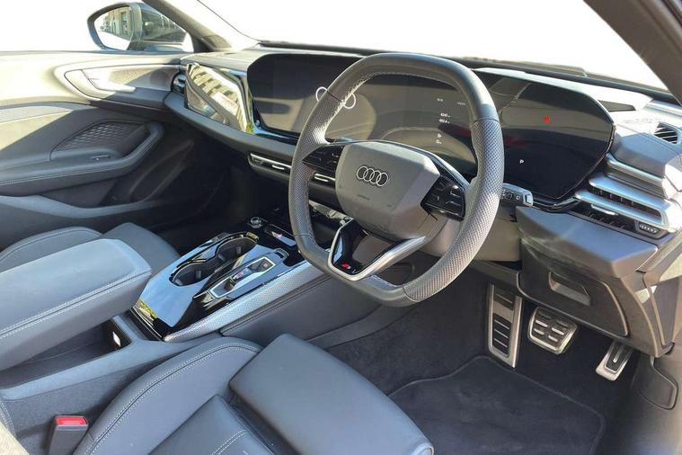 Adaptive cruise control, Advanced driver attention and fatigue montior, Audi application store, Audi assistant, Audi connect emergency call and service, Audi drive select, Audi smartphone interface, Audi virtual cockpit plus with 11.9" OLED colour display, Automatic start/stop system with coasting functionality, Camera based traffic sign recognition, Intersection assist, Lane departure warning, MMI navigation plus with high resolution 14.5" OLED touchscreen colour display, Park assist plus, Parking system plus with 360 display, Progressive steering with servotronic, Rear view camera, Swerve assist and turn assist, Traffic sign based speed limiter, Sports suspension lowered by 20mm, 2 USB-C ports in both the front and rear, Audi sound system impressive sound with 10 loudspeakers including centre speaker and subwoofer, 6-channel amplifier with a total output of 180 watts, DAB digital radio reception, Smartphone compartment with wireless charging, Aluminium roof rails, Aluminium window trims, Auto dimming rear view mirror, Body colour door mirrors, Door mirrors - electrically adjustable, heated, folding and auto dimming on both sides, Front and rear electric windows, Front door sill trims with aluminium inlays, illuminated with 'S' logo, High beam assist, LED headlights Plus incl. digital daytime running lights, turning light, all-weather light, motorway light, manouevring light and intersection light, LED rear lights pro incl. dynamic rear indicators and illuminated light strip with animated coming and leaving home function, LED third brake light, Privacy glass, Rear and side windows with heat insulating glass, Rear side wing doors, Rear wash/wipe, S Line badges on the front wings, S line bumpers, radiator grille and diffuser in phantom black and diffuser insert in matt anthracite, White rhombus logo projection light in exterior mirrors, Windscreen with acoustic glazing, 3 rear headrests, 3 seat rear bench, 3 spoke leather steering wheel with multi-function buttons with touch control, flattened on top and bottom, with S badging and contrast stitching, 3-zone automatic climate control, 40:20:40 split folding rear seat bench with centre armrest and cup holders, Comfort front centre armrest, Front and rear floor mats, Front seats with manual adjustment for position and 4-way electric lumbar support, Front sport seats with integrated headrest and S embossed logo, Headlining in black cloth, Heated front seats, i-Size child seat mounting on the front passenger side and i-Size and top tether on the outer rear seats, Luggage compartment lid, electrically opening and closing, Manual steering column height and depth adjustment, Single front passenger seat, Stainless steel pedals and footrest, Steering wheel grips in perforated leather and shift paddles, Ambient lighting package plus - A5, 3x3 point rear seat belts, Driver airbag, Electric child safety locks, First aid kit with warning triangle and vests, Front emergency brake assist, Front passenger airbag, Front passenger airbag deactivation, Front side airbags with head airbag system and front interaction airbag, Hill hold assist, Seat belt monitoring with rear seat occupant reminder, Tyre pressure loss indicator, Anti theft alarm, Anti-theft wheel bolts, Keyless Go, Accent surfaces and control buttons in gloss black, Black dashboard with contrast stitching, Inlays in matt brushed aluminium with linear embossing, anthracite, Softwrap in leatherette with contrast stitching, Upper and lower interior elements in leatherette, Tyre repair kit,