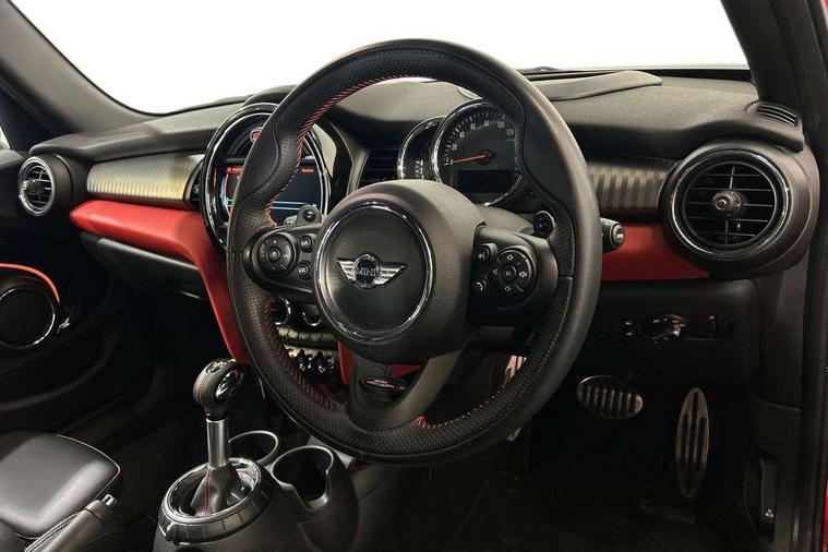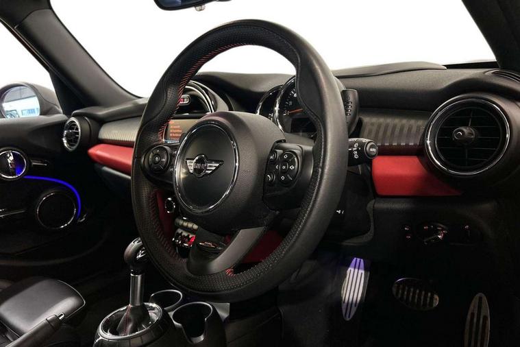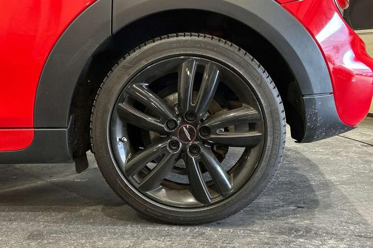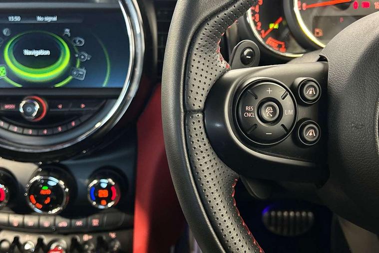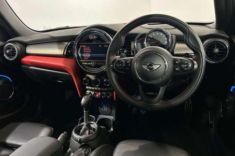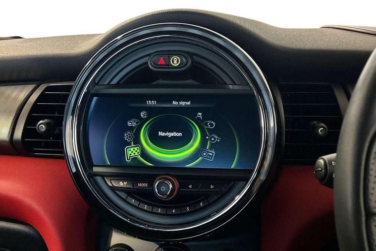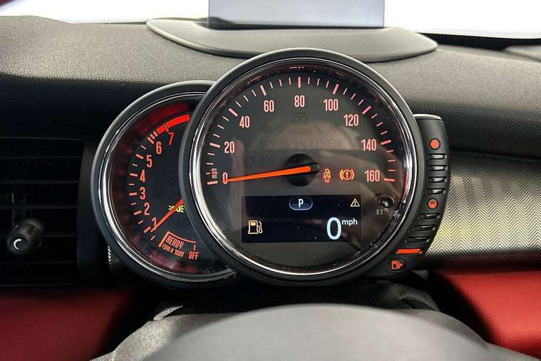 Acoustic seat-belt warning, Brake fluid level warning light, Brake pad wear indicator warning light, DTC - Dynamic traction control, Exterior temperature gauge, Intelligent emergency call, MINI TeleServices, Oil level indicator, On board computer, Push button starter, Service interval indicator, Servotronic PAS, Electronic differential lock, Performance Control, Auxiliary input socket, DAB digital radio module, 2 speed wipers+intermittent wipe, Anti dazzle mirror, Anti trapping/one touch open close front windows, Body colour scoop integrated into engine- compartment lid, Body coloured bumpers, Chrome bezels around rear lights and headlights, Chrome door handles, Chrome plated fuel cap, Chrome plated trim on bottom edge of window, Chrome strip on lower grille, Electric front windows, Electrically adjustable door mirrors, Flared wheel arches, Follow me home headlights, Green tinted heat insulating glass, Heated door mirrors/heated windscreen washers, Heated rear window with auto timer, High gloss black tailgate, Honeycomb radiator grille, Metal look door sill finishers, Rear wiper, Roof spoiler in roof colour, Twin chromed exhaust pipes, White indicator lights, 2 rear head restraints, 4 boot load lashing points, 4 way manually adjustable passenger seat with height, reach, tilt, backrest and headrest, 6-way manually adjustable driver's seat, Active carbon filter, Air recirculation system, Auxiliary socket in centre console storage compartment, Centre console storage, Driver's seat height adjuster, Driver/passenger sunvisors, Front and rear cupholders, Front head restraints, Front interior light, Front passenger grab handle, Front seat backrest storage nets, Front sports seats, Gear/selector and handbrake in artificial leather, Internal chrome door handles, Isofix child seat preparation, Luggage compartment lighting, Multifunction steering wheel, Reach + rake adjustable steering column, Rear grab handles, Rear storage trays, Split folding rear seats, Storage compartments in doors, Toolkit in luggage compartment, Vanity mirrors, 3 point seatbelts, ABS/EBD, ASC+T, Cornering brake control (CBC), Crash Sensor - activates hazard/interior lighting + unlocks doors, Driver and passenger airbags, Driver/front passenger side airbags, DSC - Dynamic Stability Control, Fuel cut off safety device, Head airbags, Hill start assist, Passenger airbag deactivation system, Seatbelt pretensioners, Tyre pressure warning, Ventilated front disc brakes, Drive away door locking, Locking wheel bolts, Remote central locking/doors+fuel cap+tailgate, Second remote key, Thatcham category 1 alarm + immobiliser,