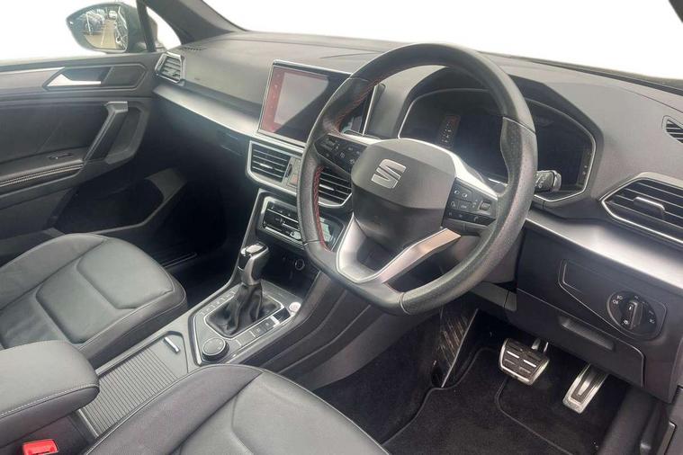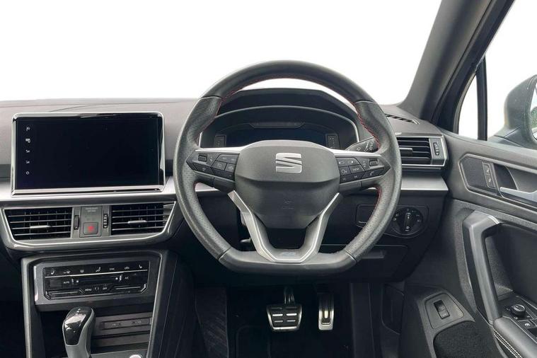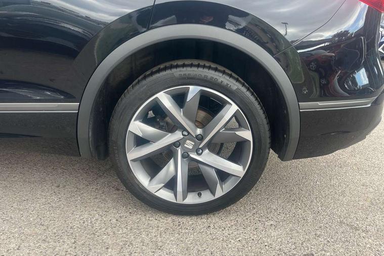 'Lights On' Reminder warning buzzer, 10.25" digital cockpit with multi function display, Adaptive cruise control with speed limiter, Bluetooth audio streaming with handsfree system, Digital clock, e-Call (emergency call), Front assist city emergency braking and pedestrian protection, Full Link Wireless Smartphone Integration with Mirror Link, Apple Car Play, Lane assist, Low fuel warning light, Outside temperature gauge, Power assist steering, RPM counter, Seat connect with safety, service, remote and online, SEAT Drive profile-4 different modes, progressive steering, 4Drive versions with off-road/snow, steering response, throttle response, gear shifts mode, Self parking functionality (includes front and rear parking sensors), Tailgate, Top view camera, Trip computer, Wash water level indicator, Comfort suspension, Sports rear shock absorption, XDS electronic differential lock, Navigation system with 9.2" colour touchscreen with proximity sensor, 3D Map display, DAB, AM/FM Radio, 3 USB (type C), Aux-in, 8 speakers, SD card, Steering wheel mounted audio/telephone controls, USB (type C) cable for Apple and Android compatibility, Auto dimming rear view mirror, Auto headlights with automatic coming and leaving home function, Automatic headlight adjustment, Black door mirrors, Black roof rails, Black window trims, Body coloured side skirts, Coast to coast lighting, Dark tinted rear windows, Dynamic rear indicators, Electric adjustable/heated/folding door mirrors with memory, Electric front/rear windows, Exterior black mouldings, Front grille frame in black, Front halogen fog lights with cornering function, Fuel door linked to central locking, Full LED headlights with LED rear lights, Illuminated aluminium front door sill with trim logo, LED daytime running lights, LED licence plate lighting, LED third brake light, Rain sensing wipers, Rear fog lights, Rear roof spoiler, Rear side wing doors, Rear wash/wipe, Sports bumpers, Twin exhaust pipes, Welcome lighting, 2 individual 3rd row seats, 3 seat bench in 2nd row, 3 zone climate control, Ambient spot lighting and front footwell illumination, Black interior roof, Centre armrest in front with air outlet in rear, Driver and passenger sunvisor with covered and illuminated mirror, Driver's electric lumbar adjustment, Easy fold rear seat system - second and third row, Electric driver's seat with memory, Forward and backward adjustable seats 2nd row, Four cargo rings in the boot, Front bucket seats, Front cupholders, Front integrated headrests, Front passenger seat lumbar adjustment, Front seat back storage pockets, Gear shift indicator, Heated front and outer rear seats, Height adjustable passenger seat, Illuminated boot, Illuminated glovebox, Instrument lighting with brightness control, ISOFIX points in outer 2nd row seats and front passenger seat with top tether anchorage points, Leather gear knob, Leather upholstery, Leather wrapped multifunction steering wheel, Luggage compartment floor with split function, Multicolour ambient lighting in front and rear door panels + LED lights in interior door handles, Rear armrest and easy back seat release mechanism from boot, Rear head restraints, Red stitching on front armrest, Single front passenger seat, Sliding boot cover, Sports front seats, Sports steering wheel, Three 12V sockets, 3x3 point rear seatbelts, ABS, Driver/front passenger airbag, Drivers knee airbag, Electronic parking brake with auto hold, Electronic stability control, Front passenger airbag deactivation, Front side airbags, Hill hold control, Manual rear child locks, Seatbelt reminders for all seats, Tiredness recognition system, Traction control, Two curtain airbags, Tyre pressure monitoring system, Alarm, Keyless enter and go with electric tailgate with virtual pedal, Locking wheel bolts, Power locking and remote control with two foldable keys and opening boot selector, Chrome interior detailing - door and dashboard decorative inserts, 20" 'Cosmo' Grey machined alloys wheels, Tool kit,