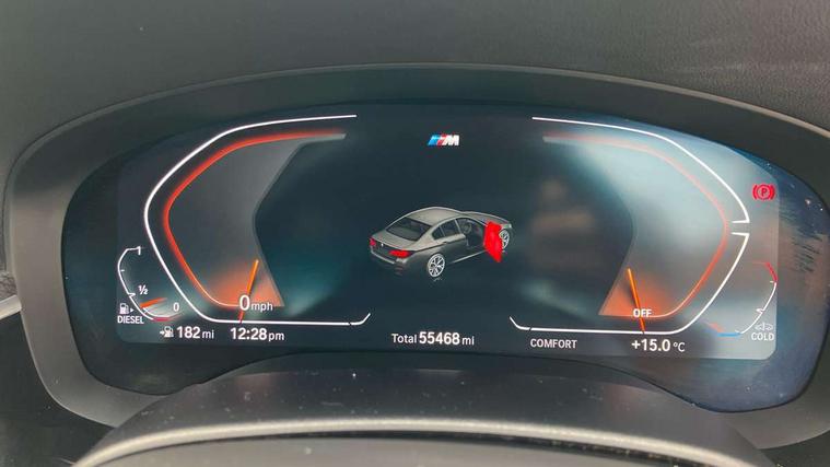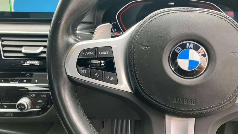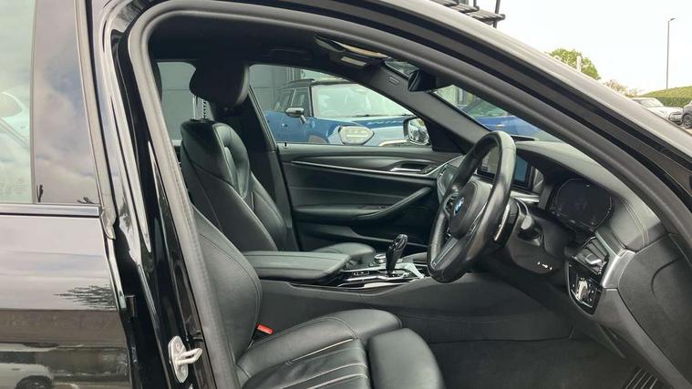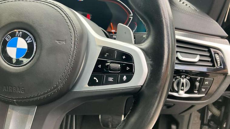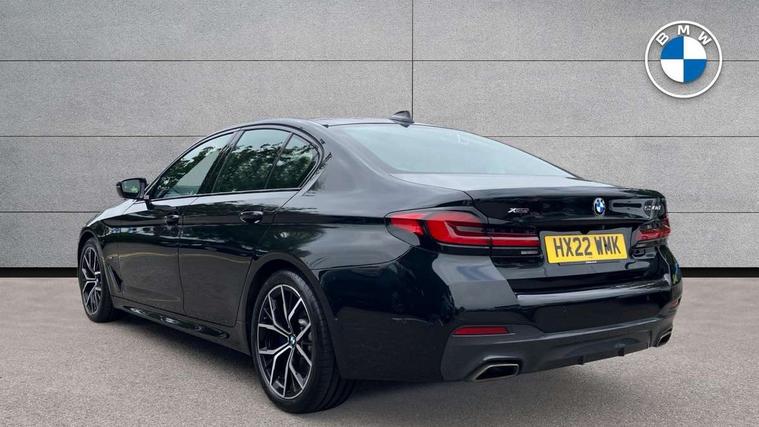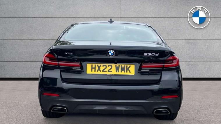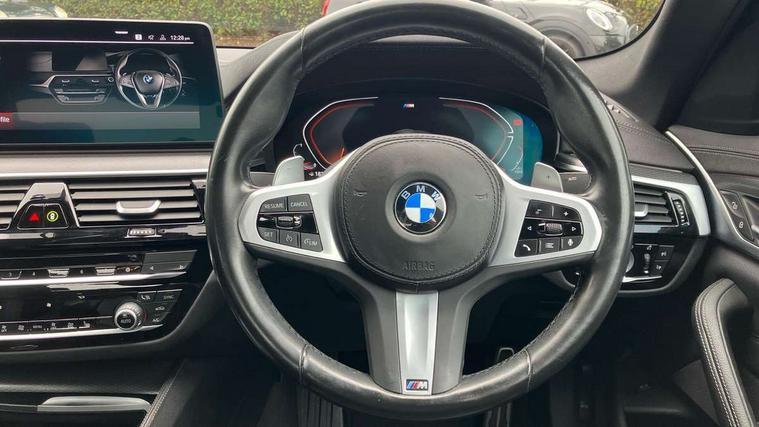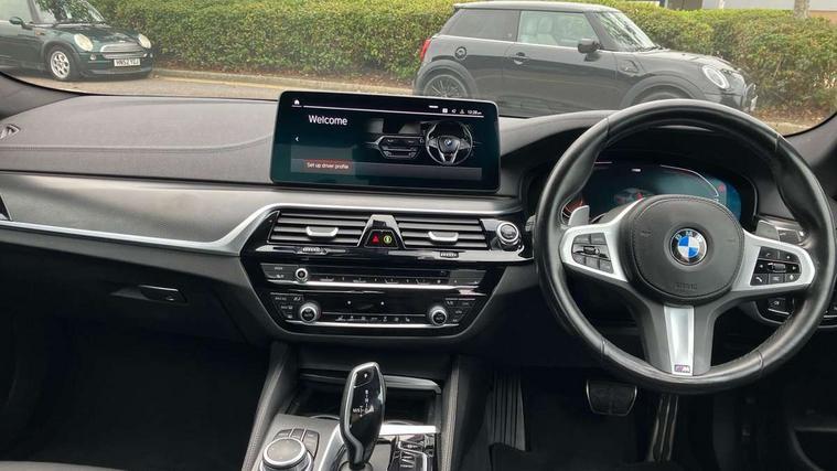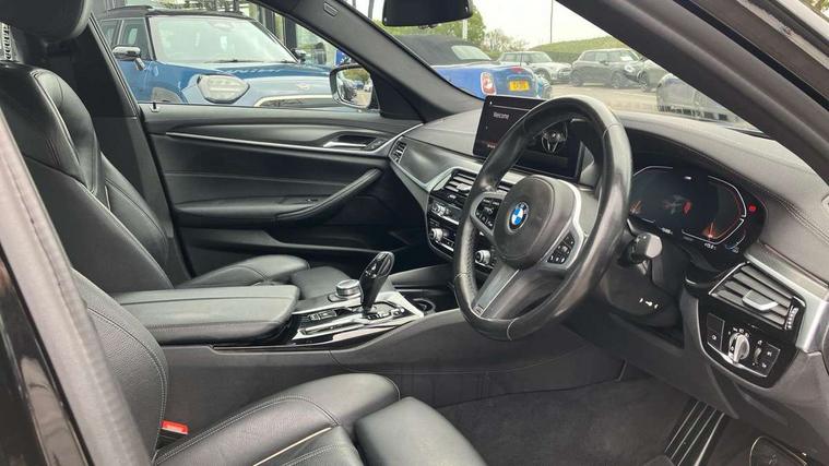 32GB hard disc drive (HDD) memory, Active Guard, BMW Live Cockpit Professional sat nav system with 12.3" instrument display and high resolution control display, BMW Teleservices, Brake pad wear indicator, Cruise control with brake assist, Driving experience switch, eCall emergency call system, Electric Power Steering (EPS) with Servotronic, iDrive controller with shortcut buttons, Intelligent emergency call, Multifunctional instrument panel, Oil sensor for level and grade, On board computer inc. average speed, fuel consumption, liquid crystal Info display, journey computer, outside temperature display, personal profile, On-board diagnosis - OBD, Powered by Operating System 7.0, Service interval indicator, Speed limiting function, Stop/start button, 48V Mild hybrid technology, Diesel particulate filter, Drive performance control with ECO PRO comfort + sport mode, Engine cover with twin turbo designation, M sport suspension, Steptronic transmission with gearshift paddles on steering wheel, DAB Digital radio, Favourite buttons, Acoustic glazing, All round anti-corrosion system, Automatic windscreen wipers and automatic headlight, Automatically dimming rear view mirror, BMW Individual high gloss shadow line includes exterior mirror frame, window frame surround, B pillar finish, air breather in high gloss black, Body colour door handles, Body coloured bumpers, Door handle illumination, Dynamic brake lights with LED technology, Electric front and rear windows with fingertip open/close + anti-trap facility and comfort closing function, Electrically adjustable and heated exterior mirrors includes integrated direction indicators and automatic parking function, Folding exterior side mirror with auto- dimming, Follow me home headlight function, Heated windscreen washer jets, High gloss black active air stream kidney grille, LED daytime running lights, LED third brake light, M designation on front side panels, left and right in chrome, Rear boot, Rear side wing doors, Trapezoidal visible exhaust tailpipes, xDrive designation on tailgate, 12V power socket in front and rear, 2 cup holders in front, 3 seat bench in 2nd row, Armrest - front and rear integrated door trim, centre console includes storage compartment, rear centre includes 2 cupholders, Child seat ISOFIX attachment with rear outer seats includes top tether, Front and rear footwell lights, Front reading lights, Height and length adjustable steering column and activation via lateral lever on the steering column, Lockable glove compartment with light, M door sill finishers, M specific pedals, M specific velour floor mats, Multifunction controls for leather steering wheel, Rear headrests, Single front passenger seat, Three spoke sport M leather steering wheel, Ambient lighting pack - 5 Series, Connected package professional - 5 Series, M Aerodynamic pack - 5 Series, Parking assistant pack - 5 Series, Airbags - driver/front passenger, rear and side, first and second row seats head airbags, front passenger seat airbag deactivation, Anti-lock braking system (ABS), Automatic Stability Control (ASC), Brake assist function, Brake energy regeneration, Cornering brake control (CBC), Crash sensor activating central locking release, hazard warning lights, fuel cut off and interior lighting, Deformation zones - front and rear with door reinforcements and bumpers up to 2.5 mph, DSC - Dynamic Stability Control, Dynamic brake control, Dynamic Traction Control - DTC, Electromechanical parking brake with automatic drive away release and auto hold function, Electronic brake force distribution, Engine drag torque control, Front and rear brake discs with interior ventilation, Front head restraints with anti-whiplash, Hill start assist, M Sport brakes in high gloss blue painted brake callipers with M designation, Mechanical child proof lock on rear doors, Passive protection for pedestrians, Rear door child safety locks, Side impact protection, Three point seat belts for all four seats, Two tone horn, Tyre pressure indicator, Warning triangle and first aid kit, Alarm system (Thatcham 1) with remote control and electronic engine immobiliser, Locking wheel bolts,