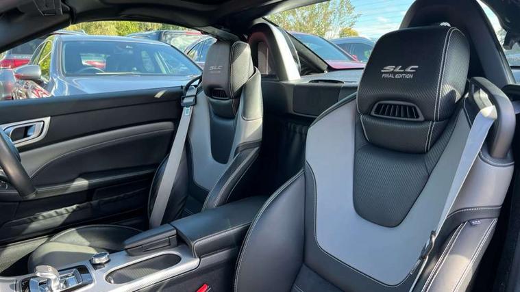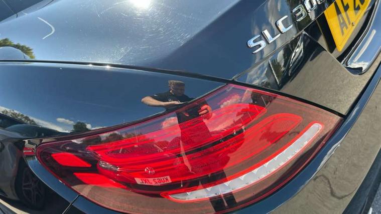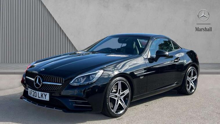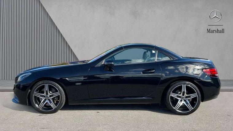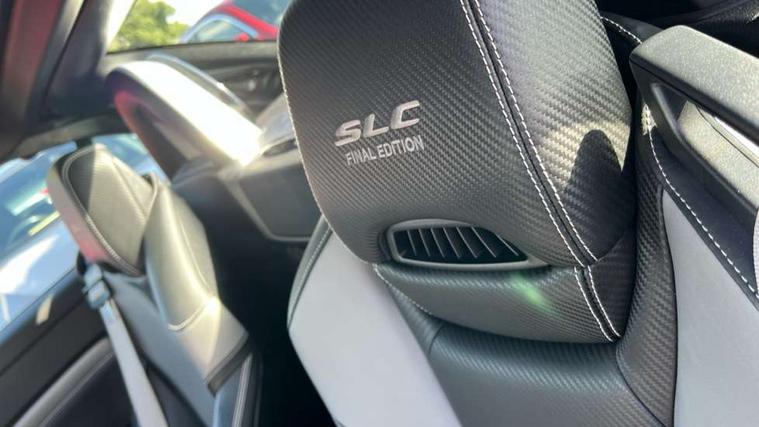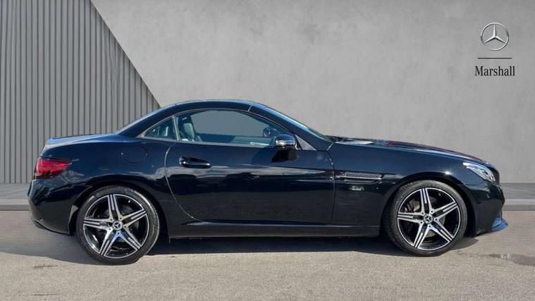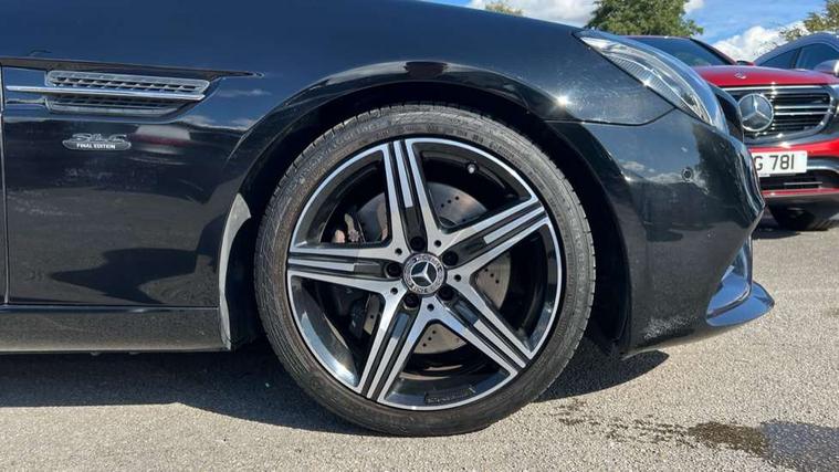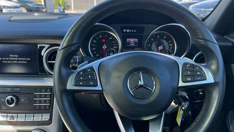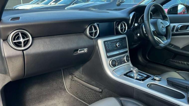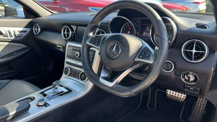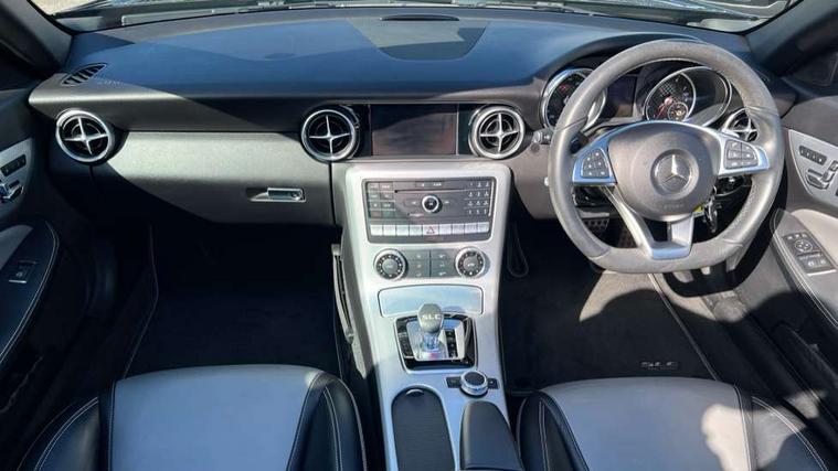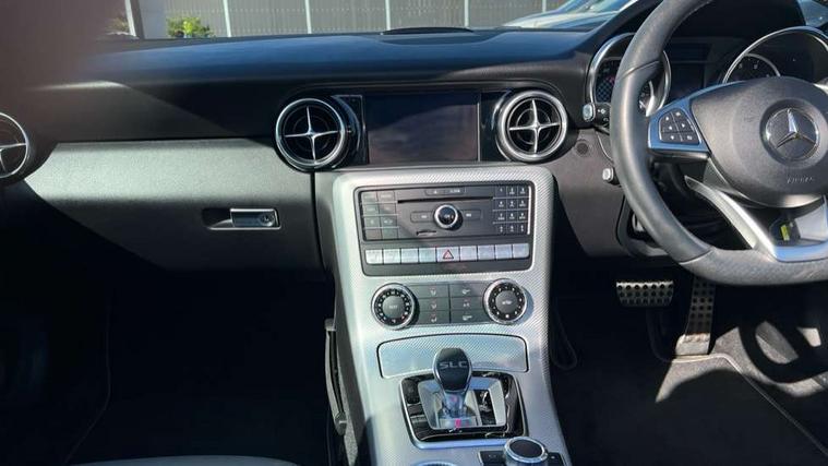 7-inch high-resolution TFT colour display, Attention assist, Bluetooth interface with HD voice capable hands free function and audio streaming for playing music files, Chequered flag design instrument cluster, COMAND online system, Cruise control with speedtronic variable speed limiter and steering wheel gearshift paddles, DYNAMIC SELECT with a choice of driving modes (ECO, Comfort, Sport, Sport+ and Individual), ECO start/stop function, Garmin Map Pilot navigation system with SD card, touchpad and voice control, Mercedes connect me with remote online services, Outside temperature display, Parktronic with parking guidance, Power assist steering, Remote boot release, Reversing camera, Service indicator (ASSYST), Smartphone integration with Apple CarPlay, Trip computer, Petrol Particulate Filter, Sports suspension tuned for improved handling and driving dynamics, lowered by 10 mm, Audio 20 radio/CD/MP3 player with 4 speakers and telephone keypad, Central controller dial to operate audio functions and telephone, DAB digital radio tuner, Media interface port for iPod or iPhone, Two USB ports in centre console, Adaptive brake lights, Airguide wind deflectors, AMG bodystyling front and rear aprons and side skirts, Automatic headlamp activation, Black door handles, Black door mirrors, Door sill panels with Mercedes Benz lettering, Electric windows, Electro hydraulic vario roof, Intelligent LED headlamps system with adaptive high beam assist, headlight washers, cornering function and daytime running lamps, LED tail lamps/brake lamps and indicators, Rain sensing windscreen wipers, Roll over bars with aluminium inserts, Tinted fixed panoramic glass sunroof, 3 spoke flat bottom multi-function nappa leather sport steering wheel with touch control buttons, Air conditioning, Airscarf - neck level heating, Automatic child seat recognition sensor, Brushed stainless steel sports pedals with rubber studs, Crash responsive head restraints, Cupholders in centre console and bottle holder in passenger footwell, Driver and front passenger sports seats, First Edition carpet mats, Front centre armrest, Heated front seats, Independently lockable glove compartment stowage, Manually height and reach adjustable steering column, Nappa leather/Dinamica upholstery, Seats with height adjusters, Memory pack - SLC, Mirror Pack - SLC, Acceleration skid control, Active bonnet pedestrian safety measure, Active brake assist, Adaptive brake system with hold function, Anti lock braking system (ABS) with brake assist, Brake pad wear warning indicator, Driver and passenger head and side airbags, Dual stage driver/passenger airbags, Electric parking brake, Electronic Stability Programme, Perforated front brake discs and brake calipers with Mercedes-Benz lettering, Roll over protection, Seatbelt pretensioners, Tyre pressure monitoring system, Warning triangle and first aid kit, Alarm system/interior protection/immobiliser, Remote central locking, Light carbon grain aluminium trim, 18" AMG 5 spoke alloy wheels in titanium grey with high sheen finish, Tyre sealant kit,
