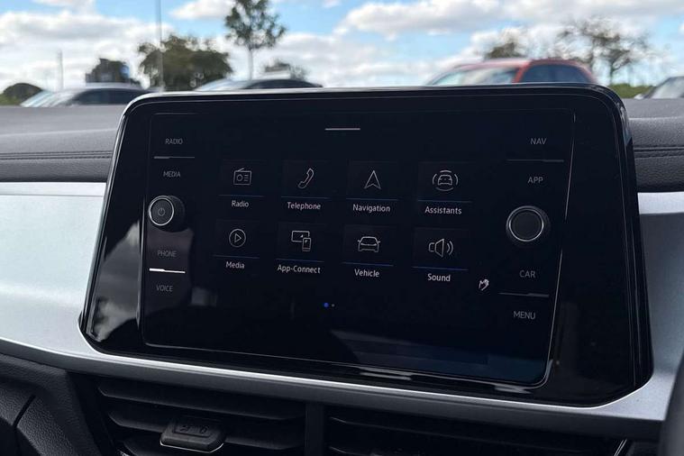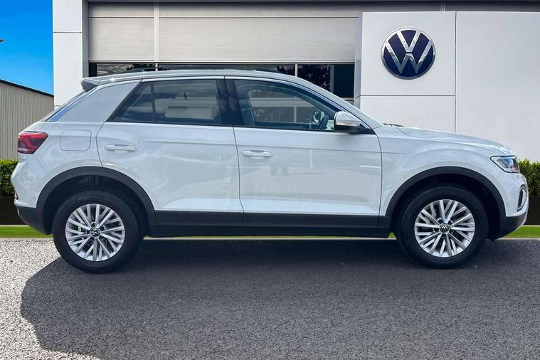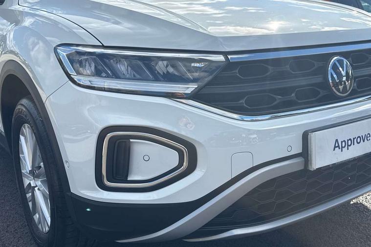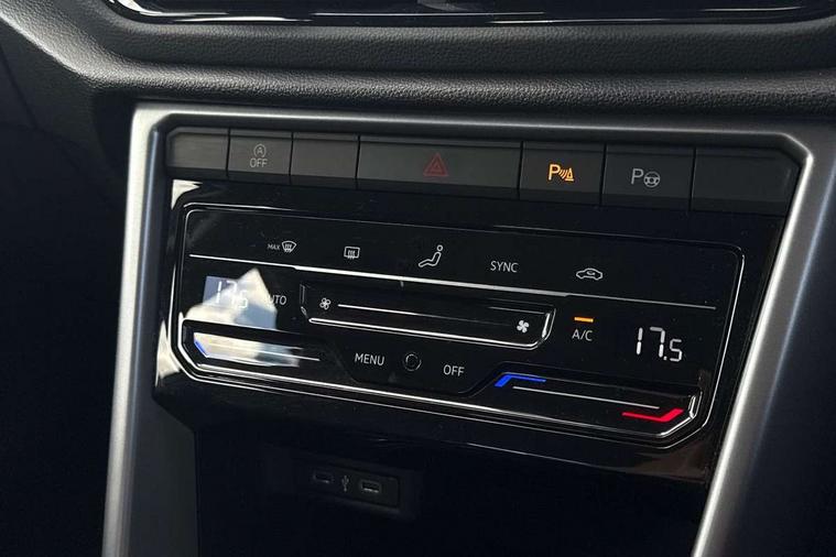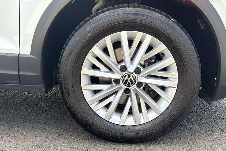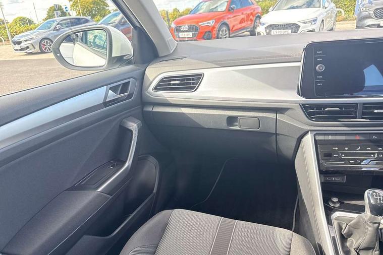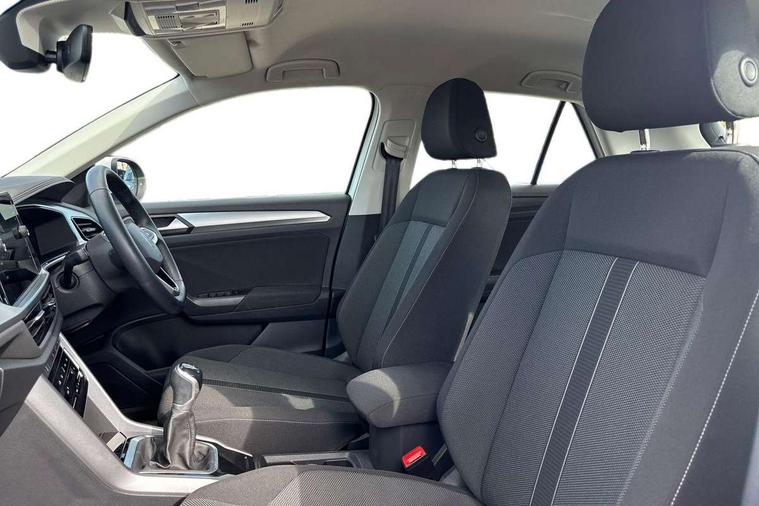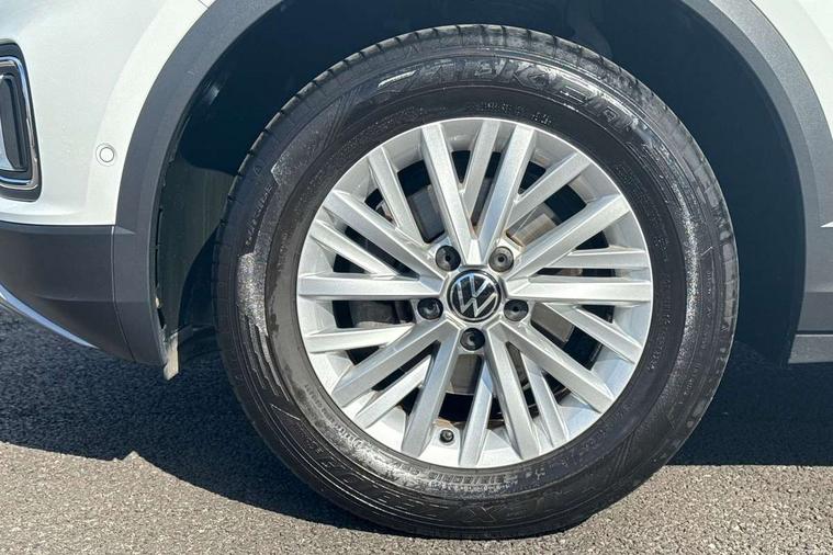 Bluetooth mobile phone interface, Driver alert system with fatigue detection, Driver tips and journey analysis, Emergency call service, Lane keeping system Lane Assist, Modified key software - reduce switch off time for key status change to Long no motion, Online services, Park assist including front and rear parking sensors, Power assisted speed sensitive steering, Service interval indicator, Tailgate/trunk lid release from outside, Think blue trainer driver tips and journey analysis, Warning sound and light for front seatbelts unfastened, Wireless app connect, Battery regeneration during braking, Front shock absorption, Rear shock absorption chassis with increased ride height, Start/stop function with battery regeneration, DAB Digital radio, Diversity antenna for FM reception, Music playback - MP3, WMA and AAC files, Premium USB cable in choice of either Apple or Android smartphone compatibility, SD card slot, Simultaneous pairing of 2 compatible mobile devices, Title and cover art display, We Connect and We Connect Plus functionality, 3rd brake light, Auto dimming interior rear view mirror, Automatic hazard lights activation under emergency braking, Automatic headlight control with LED separate daytime running lights with coming/leaving home function, Black roof rails, Body coloured bumpers and radiator grille with chrome trim and front fog lamps with chrome bezel, Body coloured exterior mirror housings and door handles, Extended roof spoiler, Exterior mirrors aspherical on driver side, convex on front passenger side, External USB type C socket and charging sockets, Front windscreen wiper with intermittent wipe and 4 position delay, Heated rear window, LED rear combination lamps, LED rear number plate lights, LED tail lamp rear comination lamps, Power windows with comfort operation and circuit breaker, Rain sensor, Rear exhaust tailpipe, Rear fog light on one side and reversing lights on both sides, Rear side wing doors, Rear wash/wipe with intermittent wipe setting, Remote electrically foldable door mirrors, puddle lights and reverse activated passenger's door mirror, 12V power socket in centre console, 3 rear head restraints, 3 seat bench in 2nd row, 4 load lashing points in luggage compartment, Air care climatronic air conditoning system with active combination filter and 2-zone temperature control, Ambient lighting with mirror logo projection, Cloth upholstery, Door and side trim panel in cloth, Drawer under drivers seat, Driver/front passenger seat height adjustment, Front centre armrest, Front comfort sports seats, Front cupholders x 2, Front reading light, Instrument lighting, white adjustable panel illumination, Interior light delay, Isofix child seat preparation, Leather gearshift handle, Load-through provision with cup holder when folded down ('Unsplit rear seat bench, split folding backrest, with centre armrest), Luggage compartment lighting, Lumbar support for driver's and front passengers seat, Non-folding front passenger seat backrest, Single front passenger seat, Storage compartment in left and right luggage area, Storage compartment in rear doors, Storage compartments in driver and front passenger doors, Sunvisors with illuminated vanity mirrors, Variable boot floor, height adjustable and removable, Driver assistance pack without proactive passenger protection - T-Roc, 3 point height adj front seatbelts + pretensioners, 3 point seatbelts in outer rear with ECE label, ABS, Child locks on rear doors, Driver and front passenger airbag with front passenger airbag deactivation, Driver and front passenger safety-optimised head restraints, Drivers seatbelt reminder, Electronic parking brake, Electronic Stability Control (ESC) inc EDL (Electronic Differential Lock) and ASR (Traction Control), Front and rear passengers curtain airbag system including front side airbags, Front assist with city emergency braking and pedestrian monitoring, Front disc brakes, Front seat side impact airbags, Hill start assist, Predictive pedestrian protection, Rear disc brakes, Single tone horn, Tyre pressure loss indicator, Volkswagen roadside assistance, Alarm with interior protection, Anti-theft alarm system with interior monitoring, backup horn, and towing protection, Remote central locking with SAFELOCK, radio remote control with 2 remote control folding keys, Pewter matt decorative inserts for intrument panel, centre console and door panels at the front, Trims for alloy wheels,