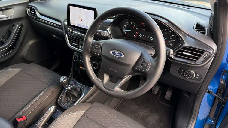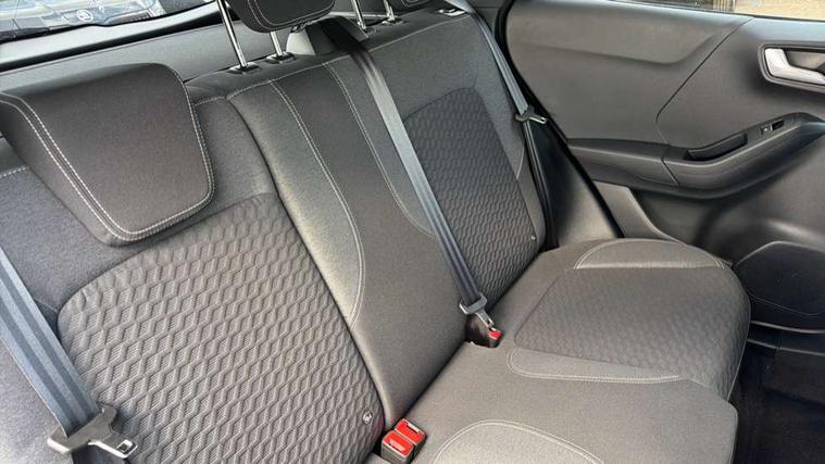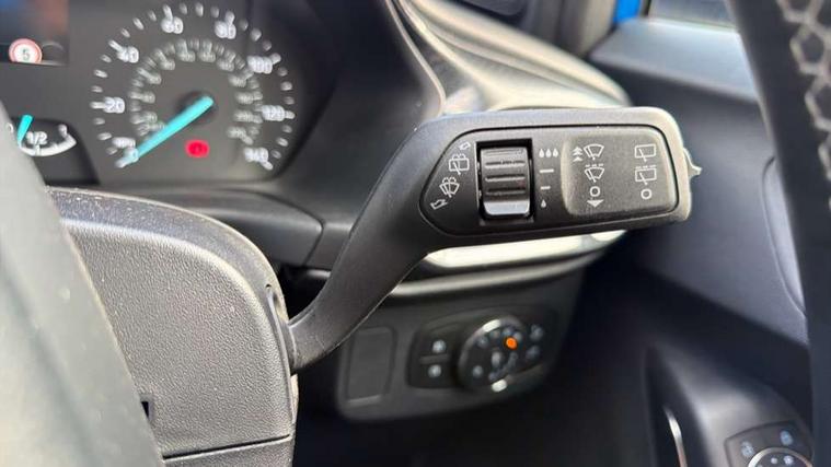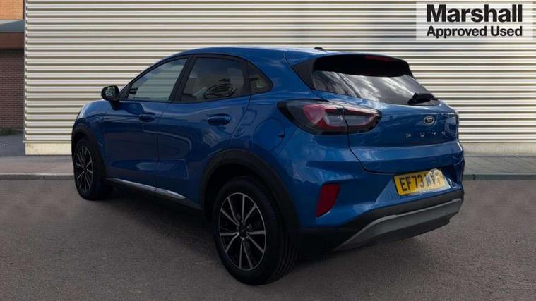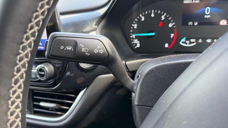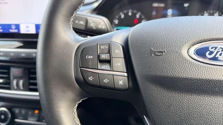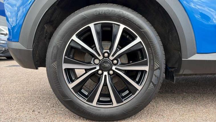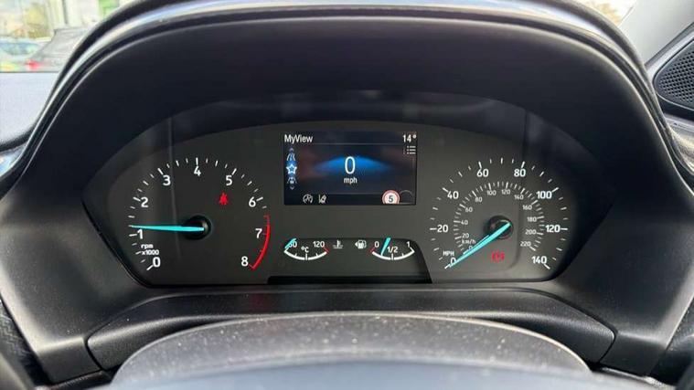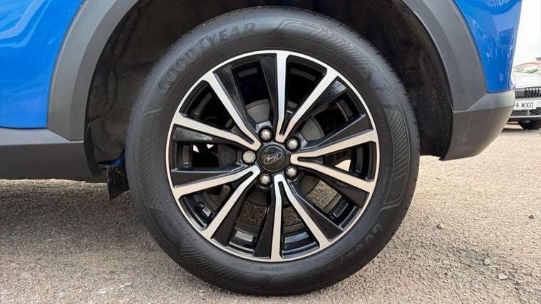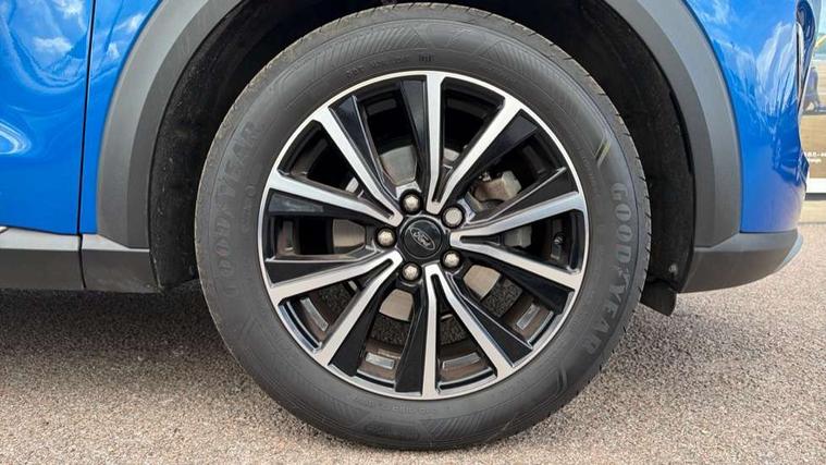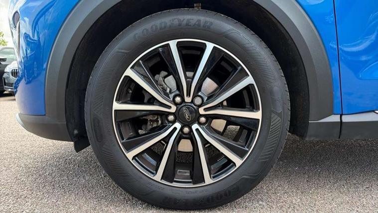 Driver impairment monitor, Emergency call service, Ford easy fuel, Lane keeping aid with lane departure warning, Power assist steering, Power start button, Rear parking sensor, Selectable drive modes(Normal, sport, Eco, trail, slippery), Speed sign recognition, Standard suspension, Automatic headlights with auto high beam, Automatic rain sensing wipers, LED rear lamps, Power foldable heated door mirrors with puddle lamps, Projector headlamps with LED day time running lights and front fog lamps, Quickclear heated windscreen, Rear side wing doors, Rear wiper, Third brake light, 3 seat bench in 2nd row, Centre console with armrest and stowage, Electronic automatic temperature control (EATC), Ford megabox extended bootspace, Front and rear head restraints, Front floor mats, Manual 2 way passenger seat adjustment, Manual 4 way driver seat adjust with lumbar adjustment, Sensico leather steering wheel/gear knob/handbrake, Single front passenger seat, Titanium cloth upholstery, Ford SYNC 3 navigation pack - Puma, 3 rear seatbelts, Child safety lock, Electronic stability control (ESC) and hill start assist, Pedestrian/cyclist detection & post-collision braking, Pre collision assist system, Tyre pressure monitoring system (TPMS), Thatcham alarm, 17" 10 spoke absolute black machined finish alloy wheel,