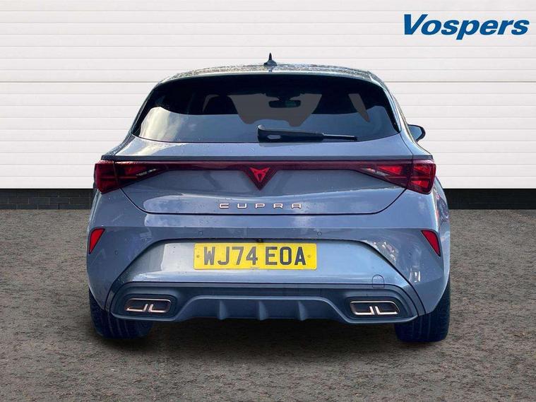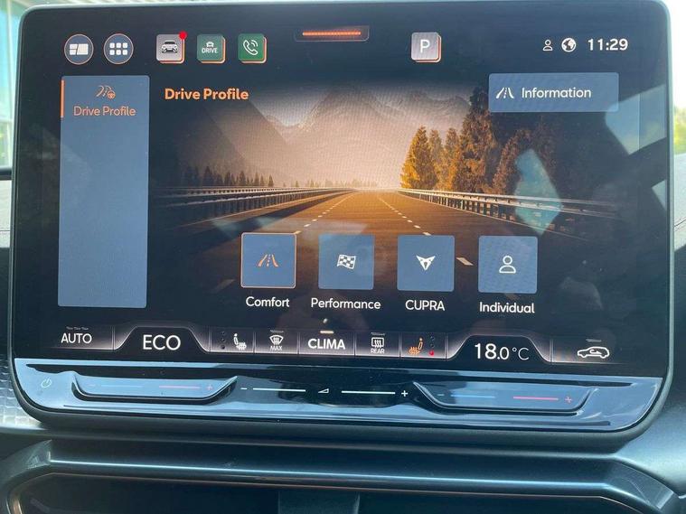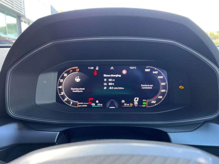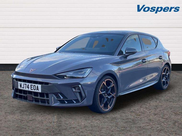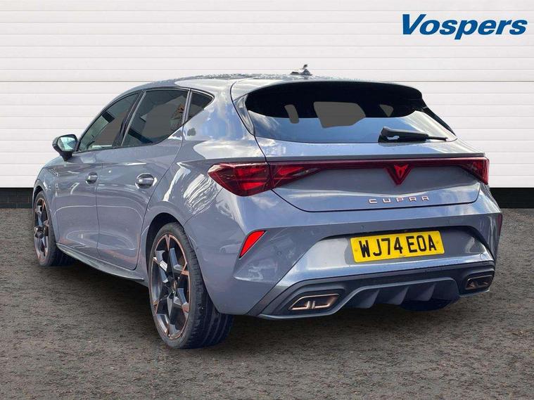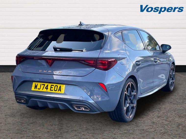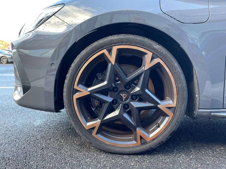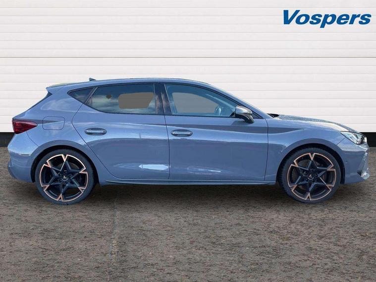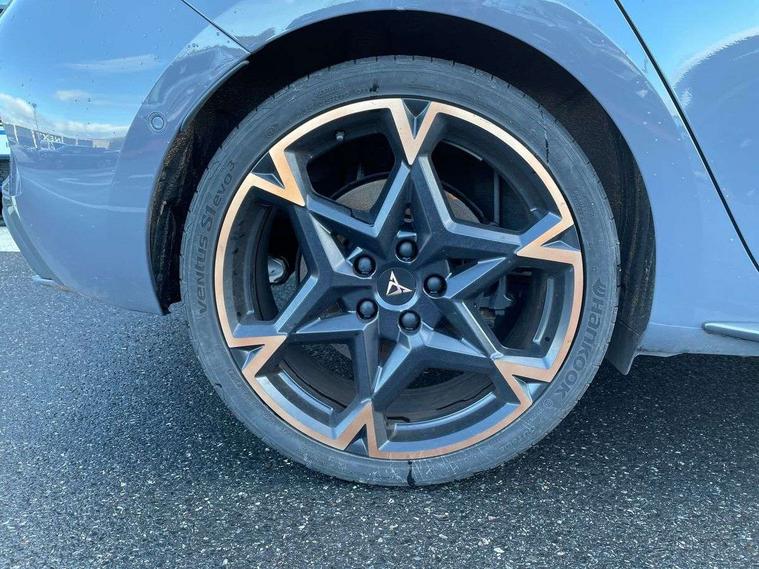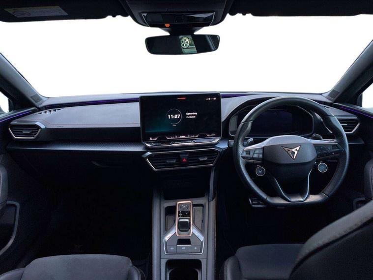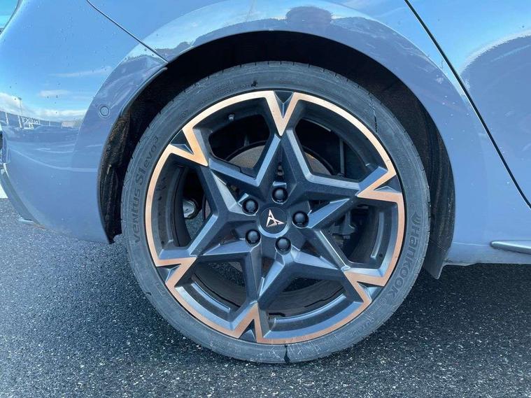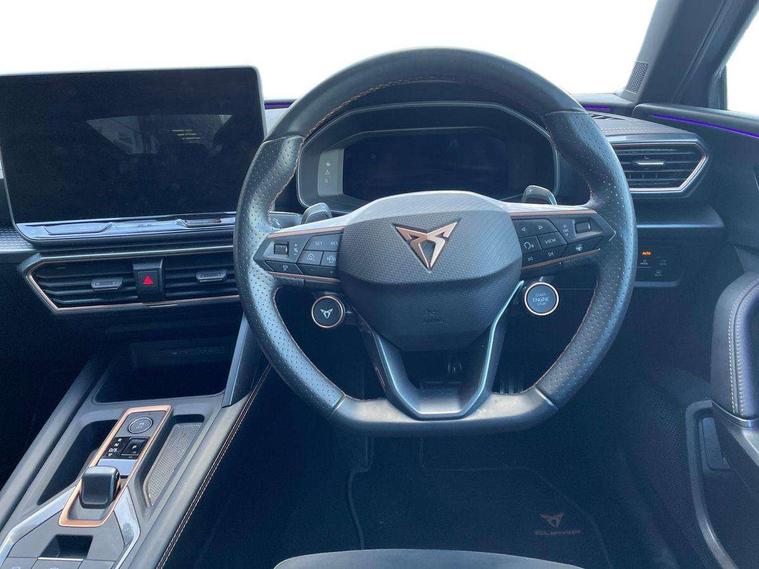 Adaptive cruise control with follow-to-stop and speed limiter, CUPRA drive profile selection with (Comfort/Sport/Individual), throttle response and gearshift mode, Digital cockpit, Dynamic road sign display, E-call, Four x USB Type C ports (2 in front and 2 in rear), Front and rear parking sensors, Front assist with forward collision warning braking reaction to vehicles, pedestrians and cyclists, Full link smartphone integration with Mirror Link, wireless Apple CarPlay and wired Google Android Auto, Intelligent park assist, Lane change assist with emergency assist, Lockable tailgate, Rear view camera, RPM, trip computer, outside temp gauge, instrument light brightness, low fuel warning light, lights on reminder, gearshift indicator, Service interval indicator, Side and exit assist, Start/stop system with regenerative braking, Wireless phone charger, 10 amp mode 2 charging cable, 16 amp mode 3 charging cable, Auxiliary input socket, Immersive by Sennheiser TM - 10 speakers, 1 central speaker, 1 subwoofer, Auto dimming rear view mirror, Body colour door handles, Body coloured bumpers, CUPRA side skirts - Painted in dark aluminium, Cupra sports bumpers, Dark tinted rear windows, Electric front/rear windows, Electrically adjustable, heated and folding door mirrors, High beam assist, LED front fog lamps with cornering function, LED rear fog lamp, Matrix LED Headlights with variable light distribution, Matrix Beam and Dynamic headlight range control, Panoramic sunroof, Rain sensing wipers, Rear side wing doors, Rear wash/wipe, Separate daytime running light with automatic headlight control and coming home feature, Third brake light, Welcome light with logo projector in door mirrors, 12v power supply in centre console, 3 seat bench in 2nd row, 5 headrests, 60/40 split rear bench seat with armrest, Ambient lighting (glovebox, footwell, ambient lighting multicoloured), Black headlining, Cupra sports pedals, CUPRA Supersports, heated steering wheel with satellite buttons, Dinamica cloth upholstery, Electrically adjustable driver seat and lumbar support with memory function + manually adjustable passenger seat, Folding boot cover, Front and rear reading lights X 4, Front centre armrest, Heated front seats, Height/reach adjust steering wheel, Illuminated interior front door sills, Interior wraparound lighting, ISOFIX points in outer rear seats with top tether anchorage points, Single front passenger seat, Storage pockets on rear of front seats, Sunvisors with illuminated mirror, Three zone climate control, Dynamic and comfort pack - Leon Cupra, Media system plus with 12.9" display + navigation pack - Leon Cupra, 3 point seatbelts on all rear seats, ABS, Brake control system - ESC and brake booster, Child proof door locks, Cupra black brake calipers, Driver and front passenger airbags with front passenger airbag de-activation, front side and curtain airbags, Electronic parking brake, Hill hold control, Pre-crash front and rear seat belt tensioner, window closure and hazard lights, Rear disc brakes, Seat belt reminder for front and rear seats, Tiredness recognition system, Tyre pressure monitoring system, Anti theft alarm system with interior monitoring in cab, backup horn and towing protection, KESSY Advanced - Keyless start, keyless entry, Locking wheel bolts, Chrome and copper interior detailing, 19" Polar machined R black and copper alloy wheel with 91Y tyres, Breakdown kit, Tool kit,
