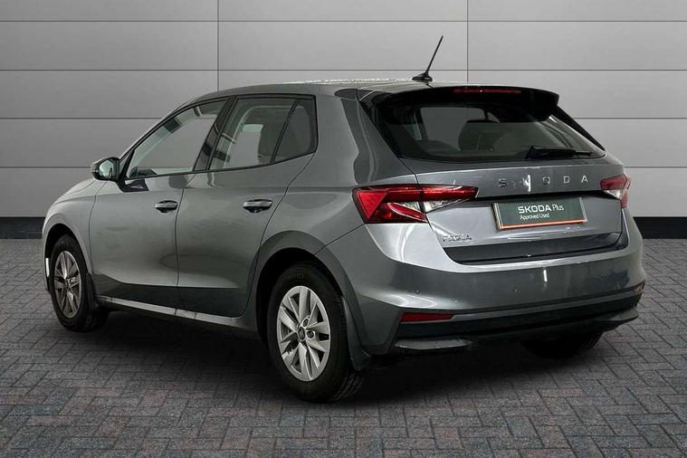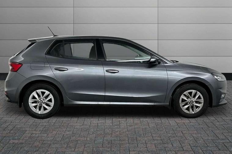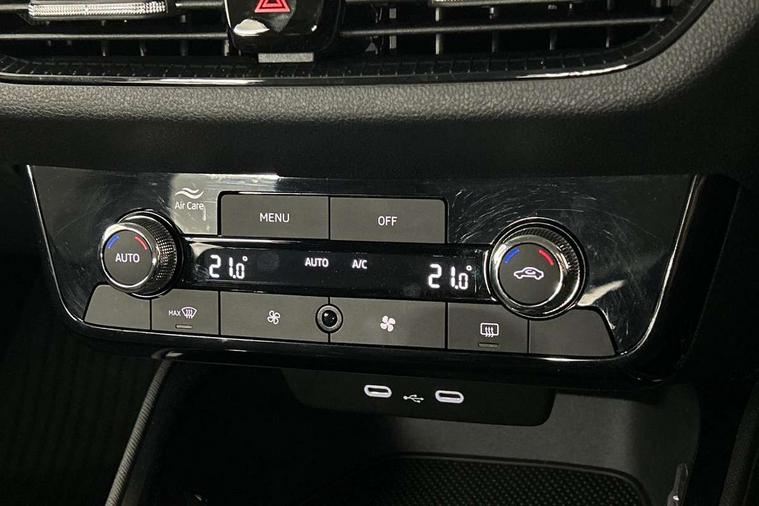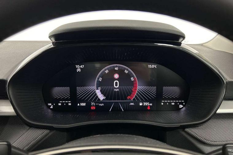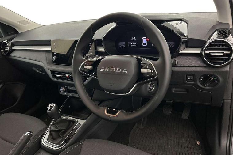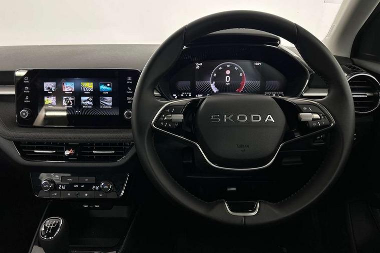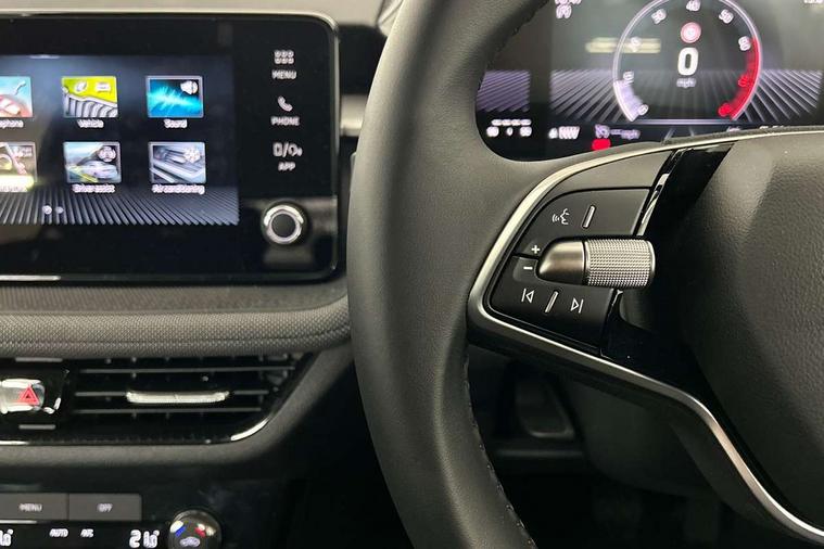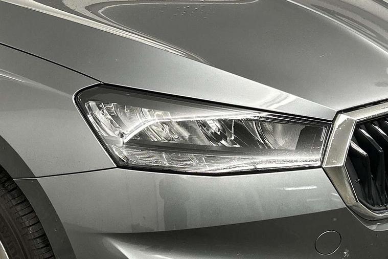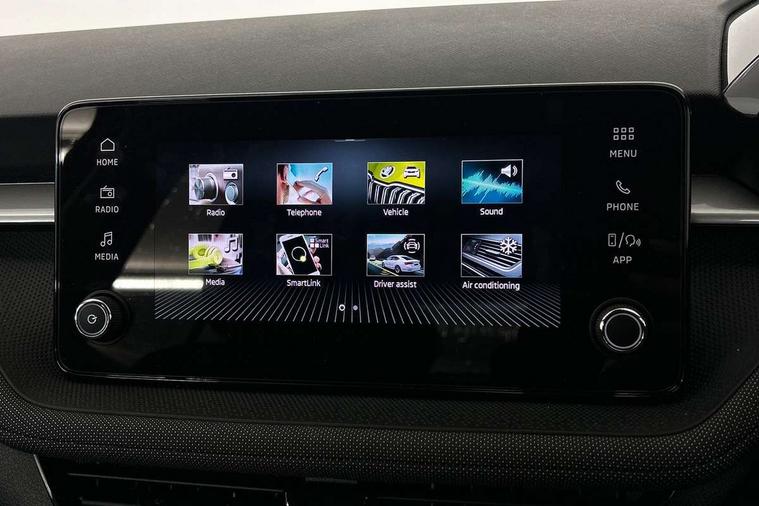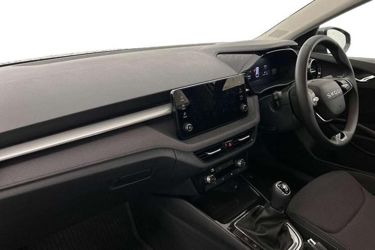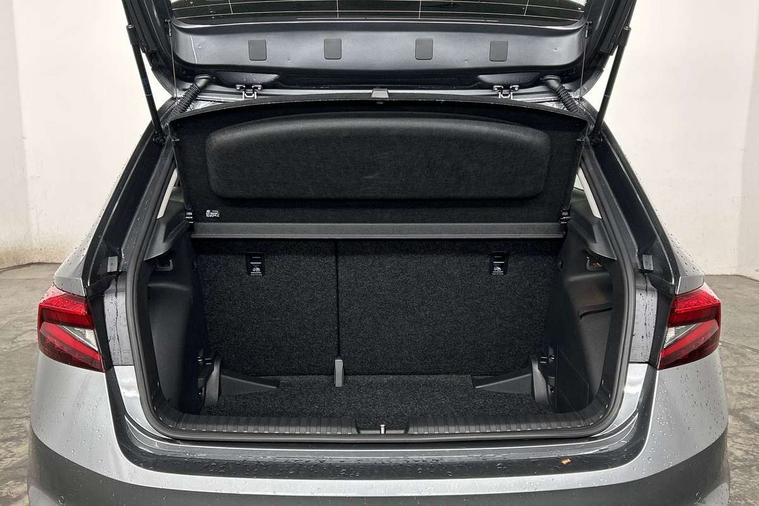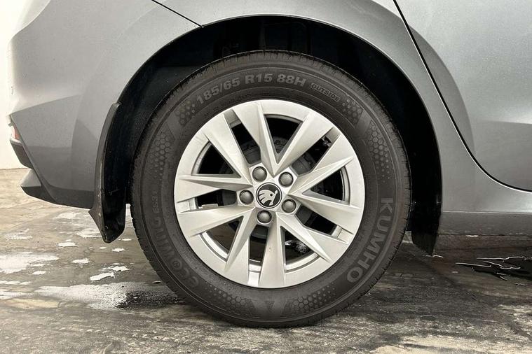 8" Digital instrument display, Advanced driver attention and drowsiness monitor, Bluetooth connection, Electromechanical power steering, Exterior temperature gauge, Rear parking sensors, Service interval indicator, Traffic sign recognition, Wireless SmartLink for Apple CarPlay and Android Auto, 6 Speakers (4 in front and 2 in rear), 8.25" Skoda infotainment touchscreen display, Auxiliary socket for external MP3 player, DAB digital radio reception, Auto dimming rear view mirror, Body colour door mirrors, Body coloured bumpers, Door mirror integrated indicators, Front and rear electric windows, Front window wiper intermittent control, Headlight range control - Automatic, Ice scraper in fuel cap, LED daytime running lights with coming and leaving home feature, LED rear lights, Rear LED fog light, Rear side wing doors, Rear window wiper with washing nozzles, Roof mounted spoiler, SKODA tailgate lettering in chrome, Third brake light, Unique dark chrome design logo on alloy wheels, 2 reading lights in front and 2 reading lights in rear, 3 rear headrests, Backrest split and folding, Central console with removable cup holder and storage box, Chrome handbrake release button, Dual zone air conditioning with climatronic electronic control, Fabric upholstery, Front centre armrest, Gearshift knob/handle in leather, Grain satin black interior door handles, Hand brake lever handle in leather, Height adjustable front headrests, Height adjustable front seats, Height adjustable steering wheel, ISOFIX and TopTether anchorage points to the outer rear seats, ISOFIX and TopTether on the front passenger seat, Luggage compartment lighting, Manually adjustable lumbar support in front seats, Pollen filter, Rear seat bench unsplit, Single front passenger seat, Skoda lettering on steering wheel, Storm grey headlining, Sun visors with mirror and airbag label on passenger side, Textile floor mats, Ticket holder, Umbrella in drivers door, 3-point height adjustable front seats belts with pretensioner and force limiter, Automatic warning lights in case of crash, Driver and passengers airbag with switch off function, e-Call+, ESC including ABS, MSR, ASR, EDS, HBA and XDS, Front and rear seat belt warning, FRONT ASSIST (AEB City and AEB Inter Urban), Front side airbags, Head airbags, One tone horn, Pedestrian protection, Three rear 3-points safety seat belts with pretensioner and force limiter including stop function for outer rear seat belts, Tyre pressure monitoring system, Anti-theft alarm system including immobiliser, interior monitoring, backup horn, and towing protection, Central locking with radio remote control, interior controls, SAFE function and 2 foldable keys, KESSY - Keyless engine start/stop, Black painted air vents, Grain satin black central console cover, Metallic grey upper decorative trim, Satin black door and side trim panel in front, Textile Kota grey lower decorative inserts, Anti-theft wheel bolts protection, Super-low rolling resistance tyres,