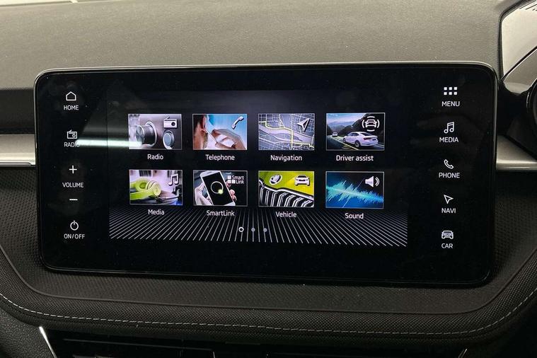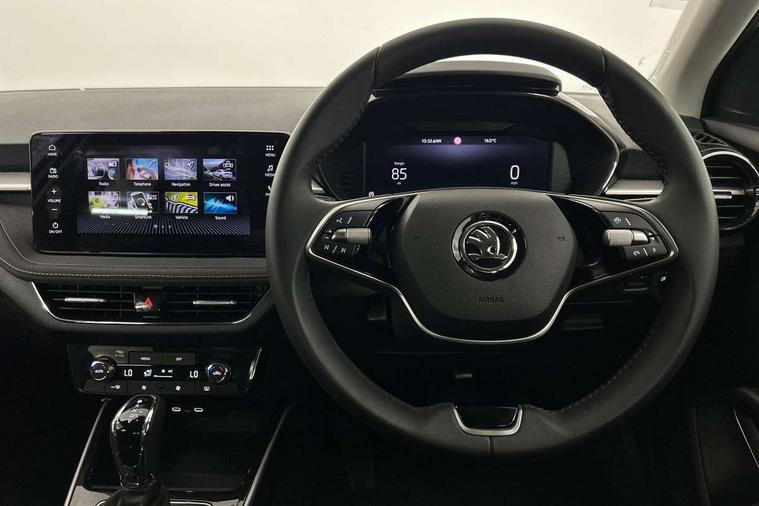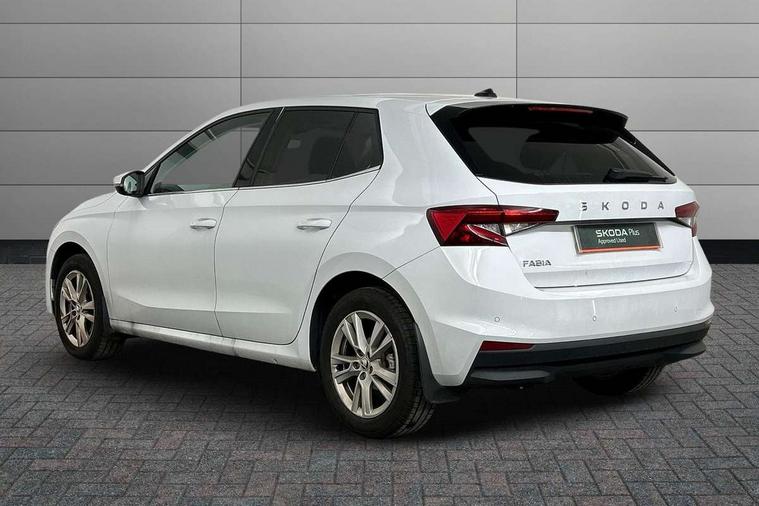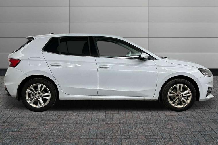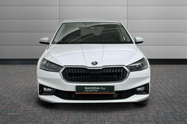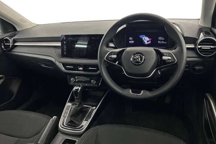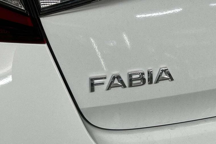 Advanced driver attention and drowsiness monitor, Bluetooth connection, Electromechanical power steering, Exterior temperature gauge, Service interval indicator, Traffic sign recognition, Virtual cockpit with 10.25" colour display, Wireless SmartLink for Apple CarPlay and Android Auto, 6 Speakers (4 in front and 2 in rear), 9.2" colour display skoda navigation system with voice control and web radio, Auxiliary socket for external MP3 player, DAB digital radio reception, Auto dimming rear view mirror, Body colour door mirrors, Body coloured bumpers, Chrome window surround, Door mirror integrated indicators, Front and rear electric windows, Front window wiper intermittent control, Headlight range control - Automatic, Ice scraper in fuel cap, LED daytime running lights with coming and leaving home feature, LED rear lights, Privacy glass, Rear LED fog light, Rear side wing doors, Rear window wiper with washing nozzles, Roof mounted spoiler, SKODA tailgate lettering in chrome, Third brake light, 2 reading lights in front and 2 reading lights in rear, 3 rear headrests, Backrest split and folding, Central console with removable cup holder and storage box, Chrome handbrake release button, Comfort seats, Door sills with fabia badging, Dual zone air conditioning with climatronic electronic control, Fabric upholstery, Front centre armrest, Gearshift knob/handle in leather, Hand brake lever handle in leather, Height adjustable front headrests, Height adjustable front seats, Height adjustable steering wheel, ISOFIX and TopTether anchorage points to the outer rear seats, ISOFIX and TopTether on the front passenger seat, Luggage compartment lighting, Manually adjustable lumbar support in front seats, Metallic grey interior door handles, Pollen filter, Rear seat bench unsplit, Single front passenger seat, Storm grey headlining, Sun visors with mirror and airbag label on passenger side, Textile floor mats, Ticket holder, Umbrella in drivers door, 3-point height adjustable front seats belts with pretensioner and force limiter, Automatic warning lights in case of crash, Driver and passengers airbag with switch off function, e-Call+, ESC including ABS, MSR, ASR, EDS, HBA and XDS, Front and rear seat belt warning, FRONT ASSIST (AEB City and AEB Inter Urban), Front side airbags, Head airbags, Hill hold control, One tone horn, Pedestrian protection, Three rear 3-points safety seat belts with pretensioner and force limiter including stop function for outer rear seat belts, Tyre pressure monitoring system, Anti-theft alarm system including immobiliser, interior monitoring, backup horn, and towing protection, Central locking with radio remote control, interior controls, SAFE function and 2 foldable keys, Chrome edged air vents, Metallic grey central console cover, Metallic grey upper decorative trim, Satin black door and side trim panel in front, Textile microsuede grey lower decorative trim with art grey stitching, Anti-theft wheel bolts protection, Super-low rolling resistance tyres,