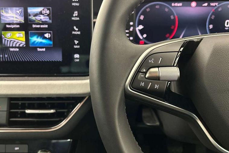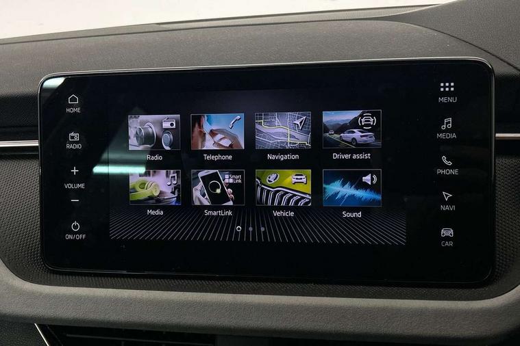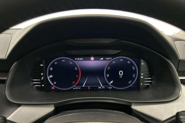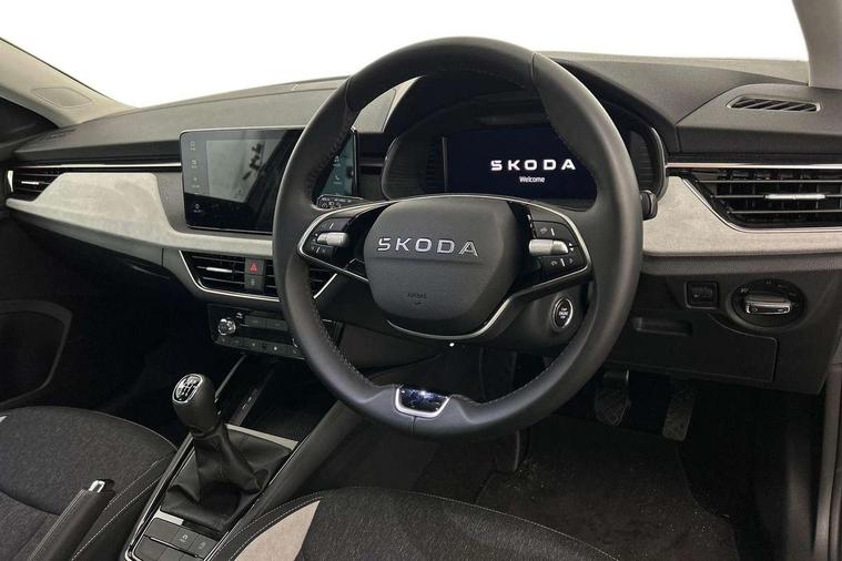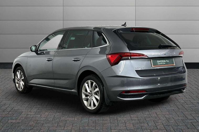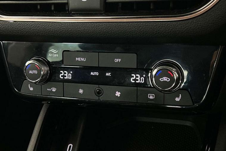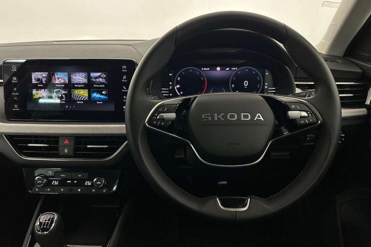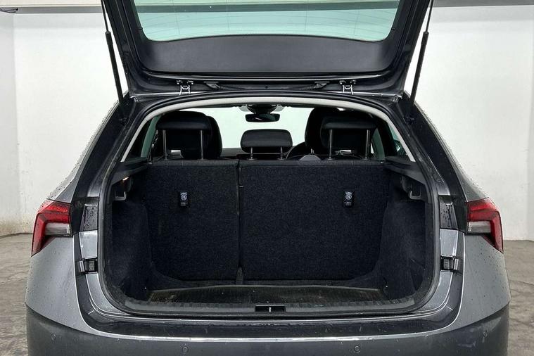 Advanced driver attention and drowsiness monitor, Bluetooth, e-Call (emergency call), Front assist system, PAS, Rear parking sensors, Rear view camera, Speed limiter, Tailgate, Traffic sign recognition, Virtual Cockpit - 10.25" digital display, Voice control system, Wireless smartlink, 4 USB C ports, 8 Speakers, 9.2" Skoda navigation display, DAB radio, Auto dimming rear view mirror, Automatic headlamp activation with Coming home and Leaving home feature, Automatic high/low beam, Automatic intermittent wipers, Body colour bumpers, Body colour door mirrors and handles, Chrome moulding around grille, Chrome window frames, Front and rear electric windows, Heated rear window, LED 3rd brake light, LED brake lights, LED daytime running lights, LED front turning lights, LED high beam, LED low beam, Light sensors, Privacy glass, Rear LED fog light, Rear side wing doors, Rear wiper, Tinted windows, Unique dark chrome design logo on alloy wheels, 12V socket in luggage compartment, 3 seat bench in 2nd row, Ambient lighting in white/red, Black / Copper armrest stitching, Cargo elements, Chrome inner door handles, Copper hotstamping, Door inserts in accent black, Driver and passenger sun visors with vanity mirror, Dual zone climate control, Front and rear roof lights, Front centre armrest, Front head restraints, Glasses storage in roof liner, Height adjustable driver seat, Height adjustable passenger seat, Ice scraper, Illuminated glove compartment, Inner circulation control with pollen filter, ISOFIX for front passenger seat, Isofix preparation for back seats, Leather gearknob and handbrake lever, Lodge cloth upholstery, Luggage net under rear parcel shelf, Manual lumbar support for front seats, Net package and top tether hooks in boot space, Pearl grey ceiling, Pocket on the back of both front seats, incl. mobile phone pockets, Rear centre armrest, Single front passenger seat, Skoda lettering on steering wheel, Textile floor mats, Third rear headrest, Ticket holder, Top tether for front passenger seat, Umbrella in driver's door, Convenience pack without rear camera - Scala, 3x3 point rear seatbelts, ABS, Child locks, Curtain airbags and front side airbags, Disc brakes, Driver and front passenger airbags, ESP, Hill hold control, Manual leather parking brake, One tone horn, Passenger airbag switch off function, Seatbelt reminder for driver and front passenger, Tyre pressure monitoring system, Anti theft alarm system with interior monitoring, backup horn and towing protection, Anti-theft wheel bolts, Remote central locking with 2 remote folding keys, SAFE function for remote central locking, Decorative inserts,