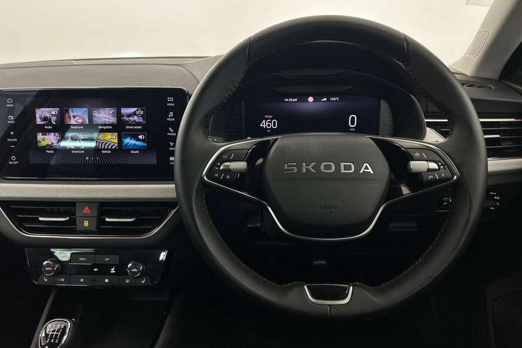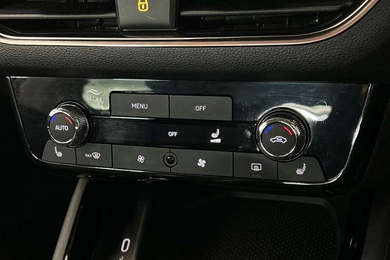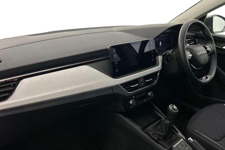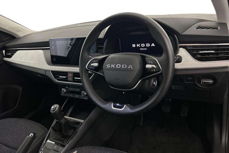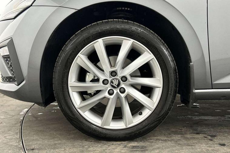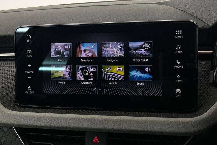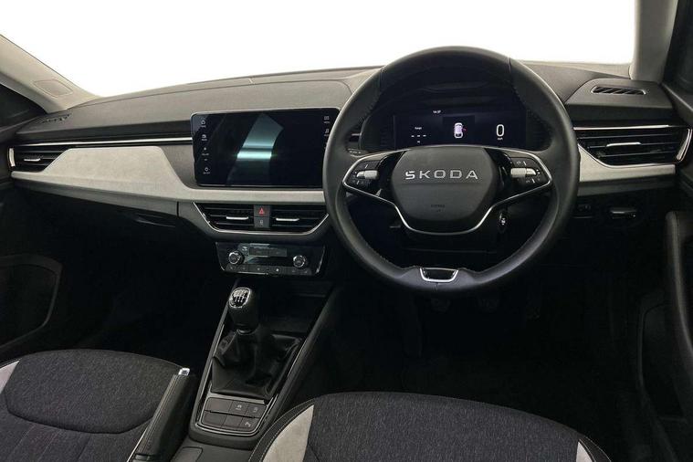 Advanced driver attention and drowsiness monitor, Bluetooth, e-Call (emergency call), Front assist system, PAS, Rear parking sensors, Rear view camera, Speed limiter, Tailgate, Traffic sign recognition, Virtual Cockpit - 10.25" digital display, Voice control system, Wireless smartlink, 4 USB C ports, 8 Speakers, 9.2" Skoda navigation display, DAB radio, Auto dimming rear view mirror, Automatic headlamp activation with Coming home and Leaving home feature, Automatic high/low beam, Automatic intermittent wipers, Body colour bumpers, Body colour door mirrors and handles, Chrome moulding around grille, Chrome window frames, Front and rear electric windows, Heated rear window, LED 3rd brake light, LED brake lights, LED daytime running lights, LED front turning lights, LED high beam, LED low beam, Light sensors, Privacy glass, Rear LED fog light, Rear side wing doors, Rear wiper, Tinted windows, Unique dark chrome design logo on alloy wheels, 12V socket in luggage compartment, 3 seat bench in 2nd row, Ambient lighting in white/red, Black / Copper armrest stitching, Cargo elements, Chrome inner door handles, Copper hotstamping, Door inserts in accent black, Driver and passenger sun visors with vanity mirror, Dual zone climate control, Front and rear roof lights, Front centre armrest, Front head restraints, Glasses storage in roof liner, Height adjustable driver seat, Height adjustable passenger seat, Ice scraper, Illuminated glove compartment, Inner circulation control with pollen filter, ISOFIX for front passenger seat, Isofix preparation for back seats, Leather gearknob and handbrake lever, Lodge cloth upholstery, Luggage net under rear parcel shelf, Manual lumbar support for front seats, Net package and top tether hooks in boot space, Pearl grey ceiling, Pocket on the back of both front seats, incl. mobile phone pockets, Rear centre armrest, Single front passenger seat, Skoda lettering on steering wheel, Textile floor mats, Third rear headrest, Ticket holder, Top tether for front passenger seat, Umbrella in driver's door, Convenience pack without rear camera - Scala, 3x3 point rear seatbelts, ABS, Child locks, Curtain airbags and front side airbags, Disc brakes, Driver and front passenger airbags, ESP, Hill hold control, Manual leather parking brake, One tone horn, Passenger airbag switch off function, Seatbelt reminder for driver and front passenger, Tyre pressure monitoring system, Anti theft alarm system with interior monitoring, backup horn and towing protection, Anti-theft wheel bolts, Remote central locking with 2 remote folding keys, SAFE function for remote central locking, Decorative inserts,