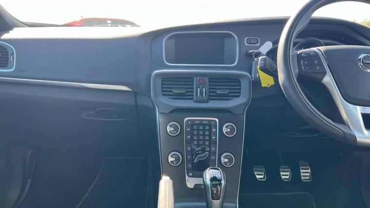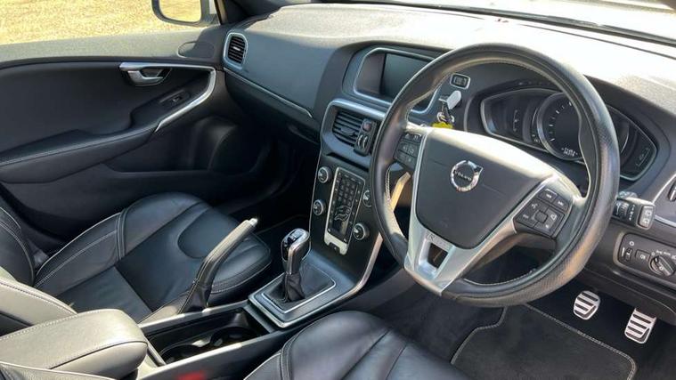 Active TFT crystal driver's instrument display, Front park assist, Information centre, Intelligent driver information system (IDIS), Rear park assist, Rear parking camera, Sensus navigation system, Service interval indicator, Speed limiter, Speed sensitive steering, Dynamic chassis, DAB Digital radio, Steering wheel audio controls, Active bending LED headlights, Adaptive brake lights, Auto dimming rear view mirror, Automatic folding door mirrors with ground lights, Automatic headlights, Body colour bumpers, Body colour door handles, Dark tinted rear side windows, Dual exhaust pipes, Electrically adjustable and heated door mirrors, Frameless rear view mirror, Front and rear electric windows, Headlamp levelling, Headlight cleaning system, High level LED brake light, Home safe and approach lighting, LED daytime running lights, LED Headlights, Matt silver finish door mirrors, R Design front grille, R Design lower front nose, Rain sensor windscreen wipers, Rear diffuser, Rear tailgate emblem, Rear wiper, Roof spoiler, Silk metal window trim surround, Visible VIN plate, 12V socket in front + rear tunnel console, 3 spoke leather steering wheel with chrome trim and R design logo, 5 headrests, 60/40 split folding rear seat, A-pillar parking ticket holder, Adjustable front centre armrest, Charcoal headlining, Door sill tread plates, Electronic climate control (ECC), Flexible load floor and grocery bag holder, Folding front passenger seat with height/lumbar adjust, Footwell lights, Front cupholders, Front door step lamp, Front reading lights, Front sports seats, Front storage box, Height adjustable drivers seat with lumbar support, Height/reach adjustable steering column, Illuminated driver/passenger vanity mirrors, Illuminated gear knob, Isofix attachments on outer rear seats, Load cover, Lockable glovebox, Pollen filter, R Design leather sports upholstery, Rear armrest with cupholder, Rear reading lights, Rear theatre lighting, Sports floor mats, Sports pedals, WHIPS - Whiplash Protection System, 5 x 3 point seatbelts, ABS+EBA, City safety braking system, Drivers knee airbag, DSTC-Dynamic Stability and Traction Control, Dual stage driver's airbag, Dual stage passenger airbag, Front/rear seatbelt pre-tensioners, Hill start assist, Inflatable curtain, Manual rear child locks, Passenger airbag cut-off device, Pedestrian airbag system, Side airbags, Side curtain airbags, Side impact protection, Tyre pressure monitor, Warning triangle, Anti-theft alarm including immobiliser/volume sensor + level sensor, Deadlocking system, Key integrated remote control central locking, Locking wheel nuts, Stealth aluminium trim,